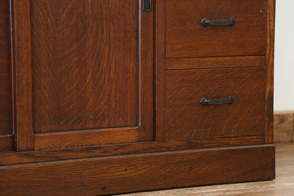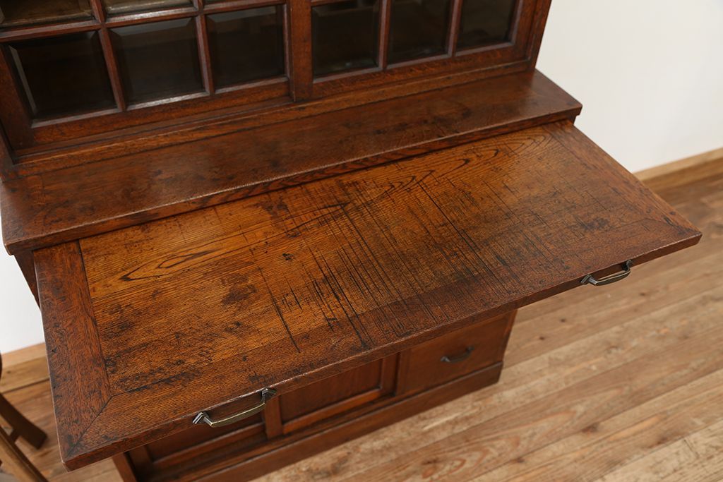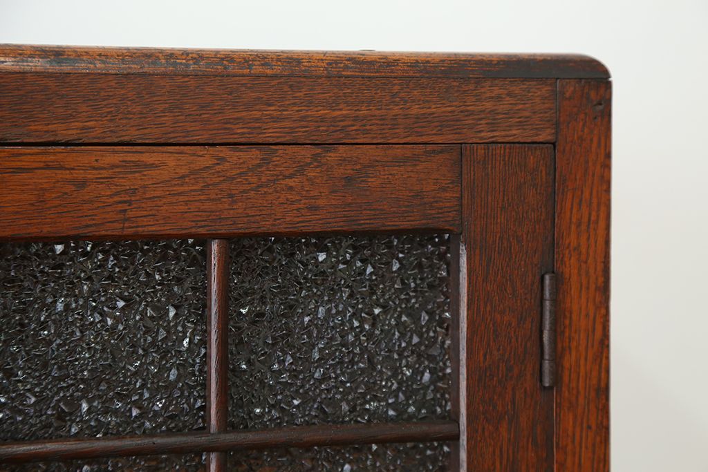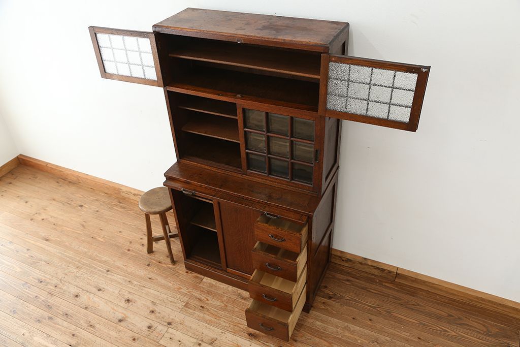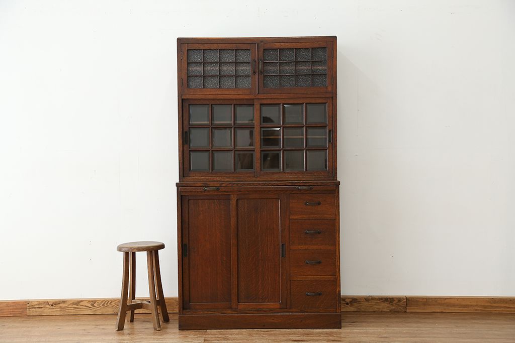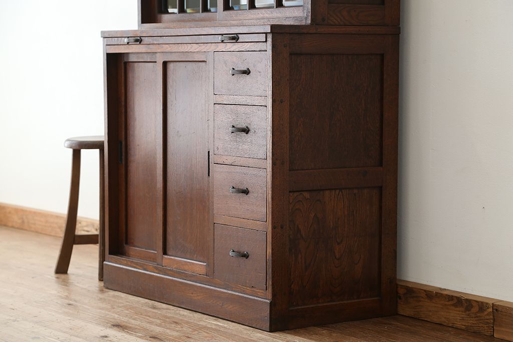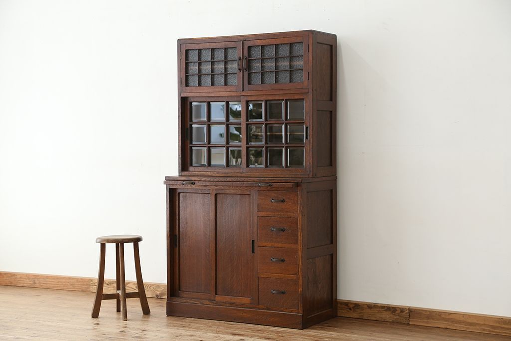 アンティーク家具 ☆アンティーク 素敵なデザイン!古いナラ材の上質な面取りガラス食器棚