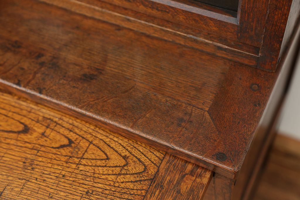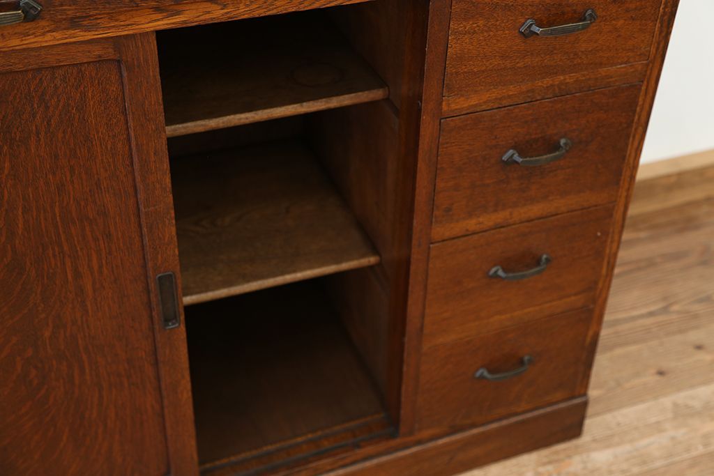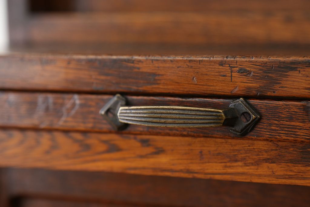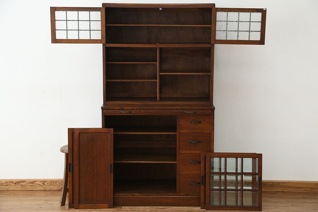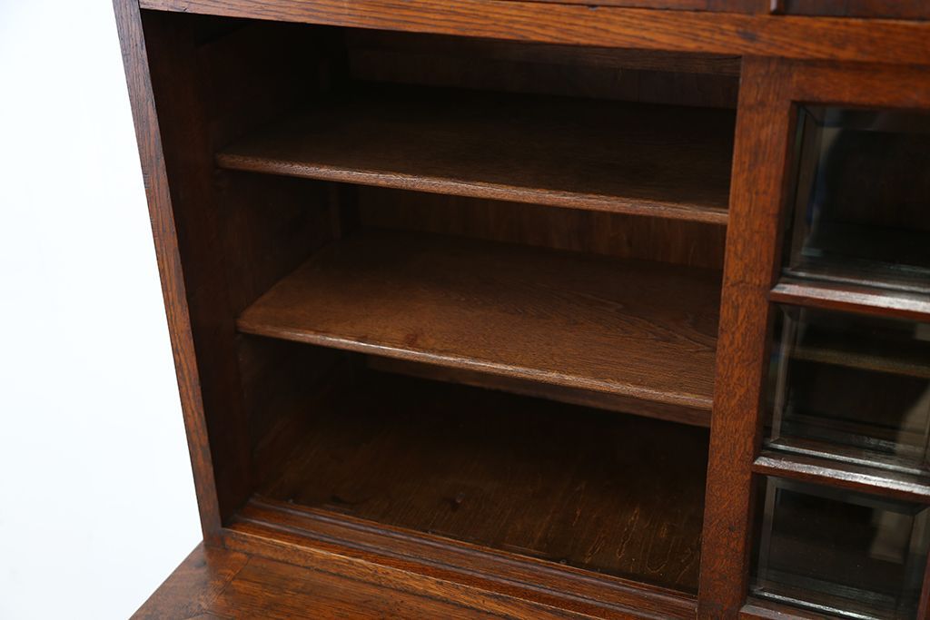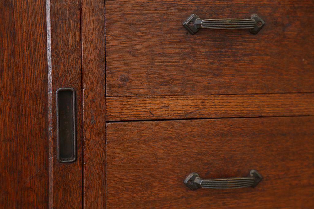 アンティーク家具 ☆アンティーク 素敵なデザイン!古いナラ材の上質な面取りガラス食器棚