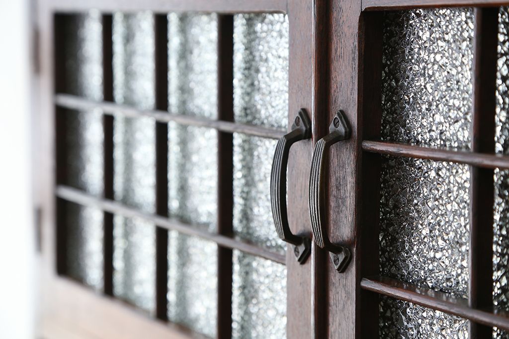 ☆アンティーク 素敵なデザイン!古いナラ材の上質な面取りガラス食器棚です。