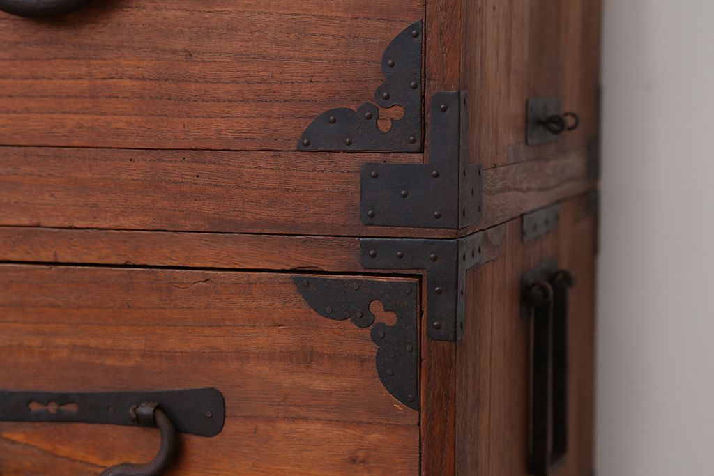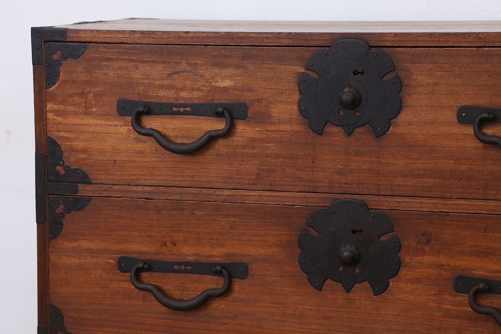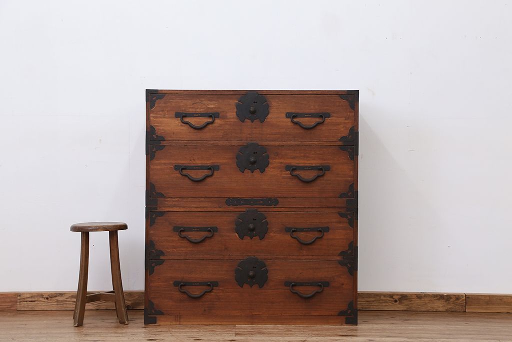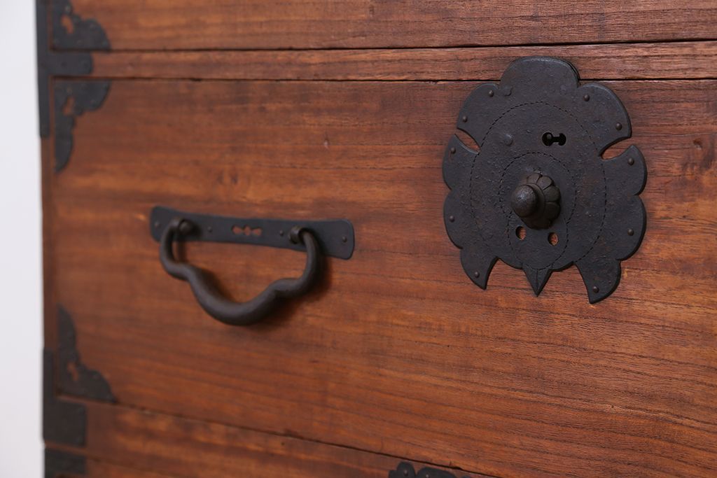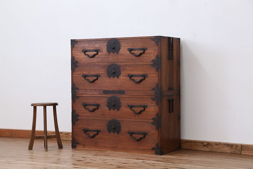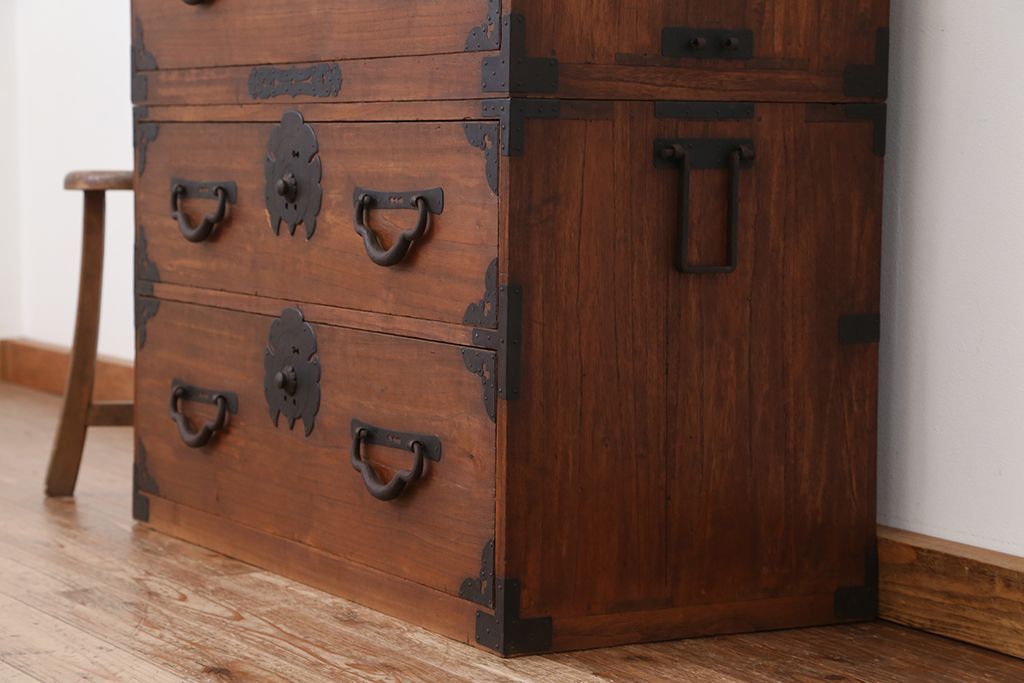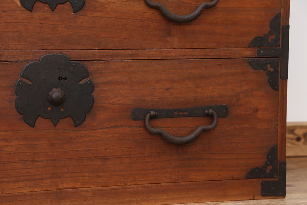アンティーク家具 ☆希少!かわいらしいふくらすずめ金具 重ね時代箪笥