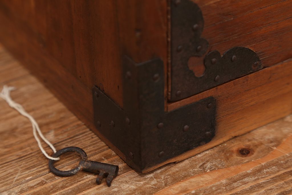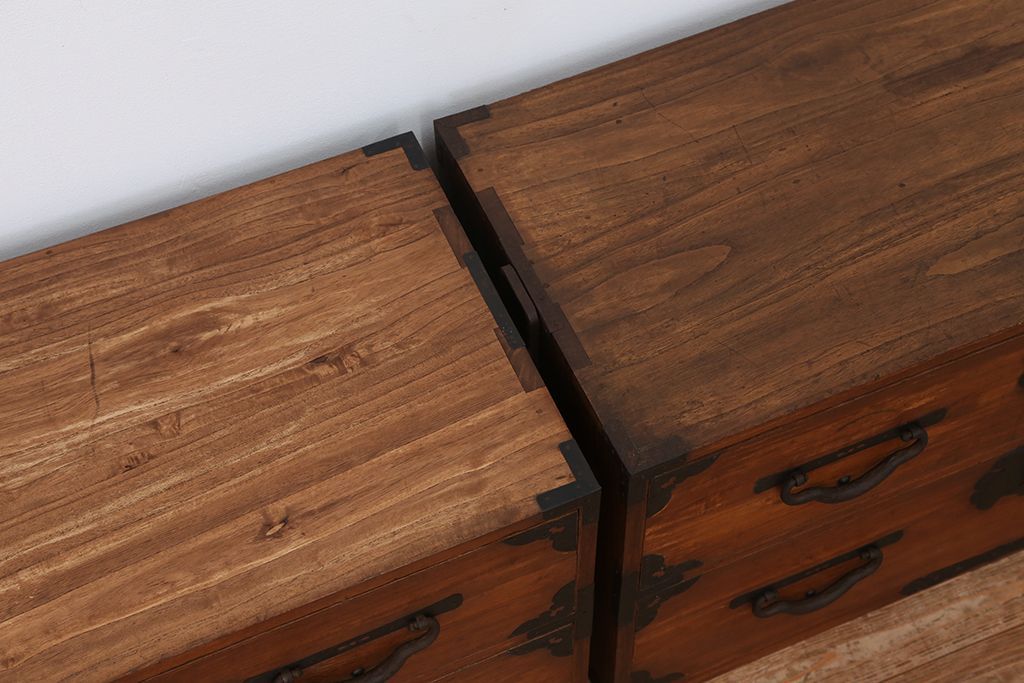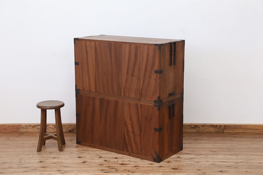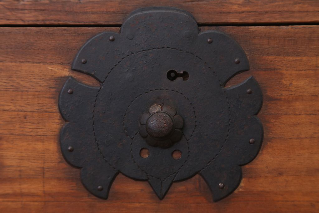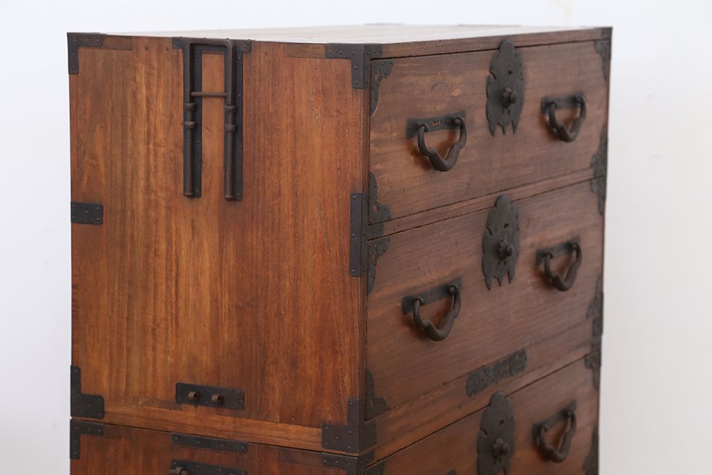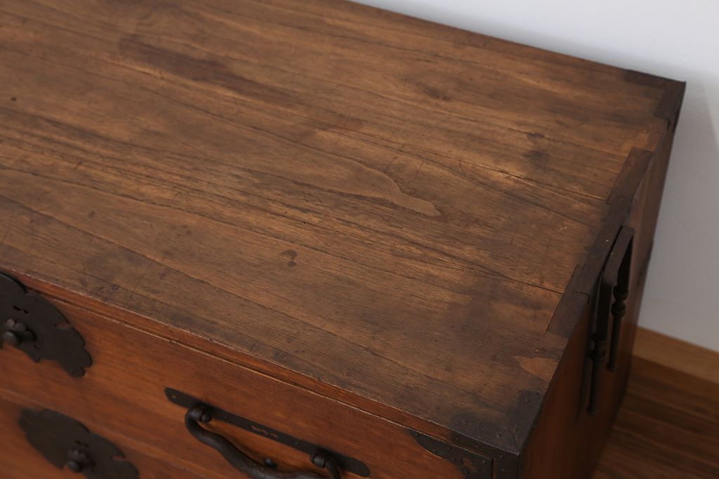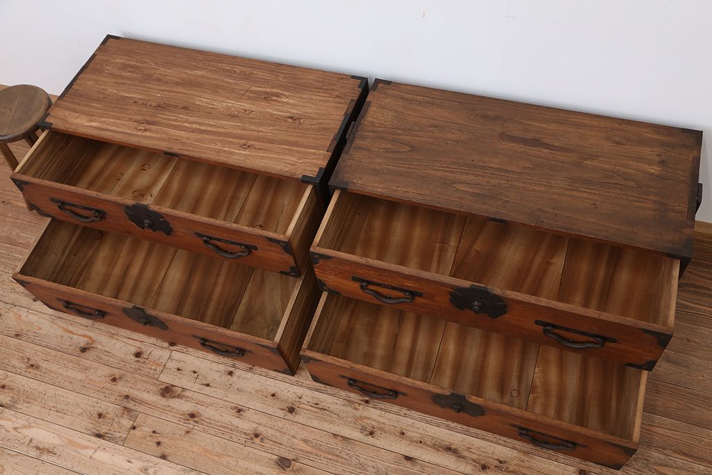 アンティーク家具 ☆希少!かわいらしいふくらすずめ金具 重ね時代箪笥