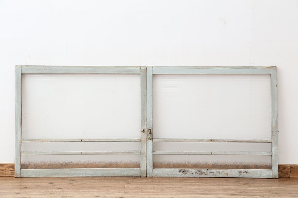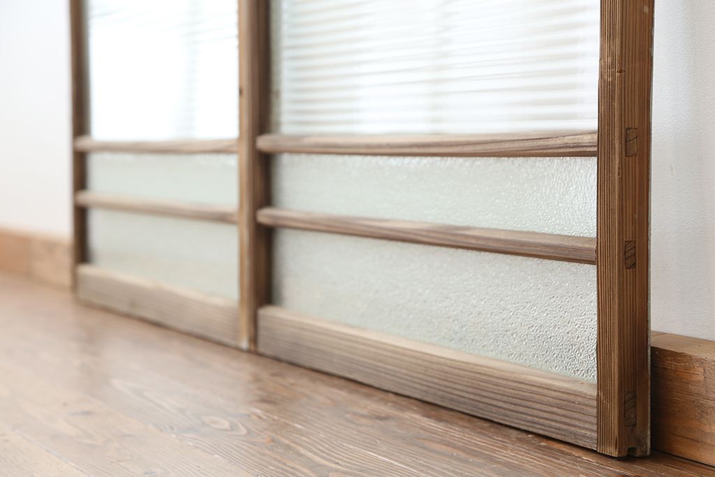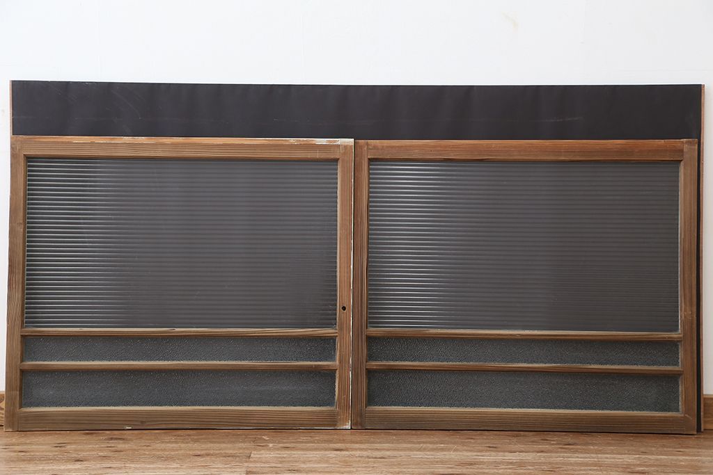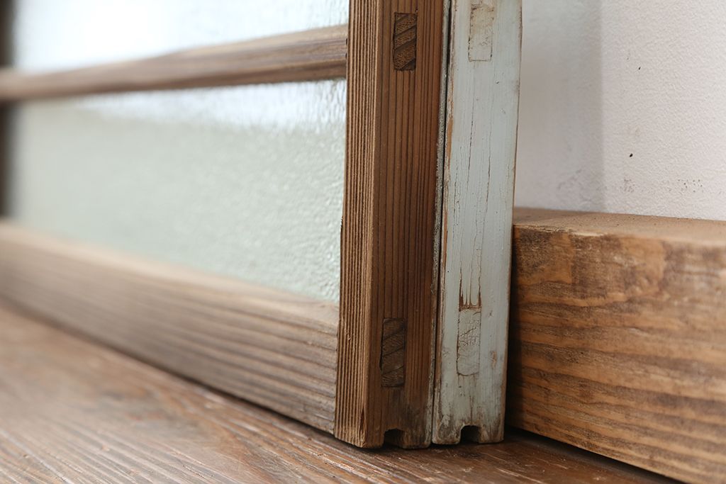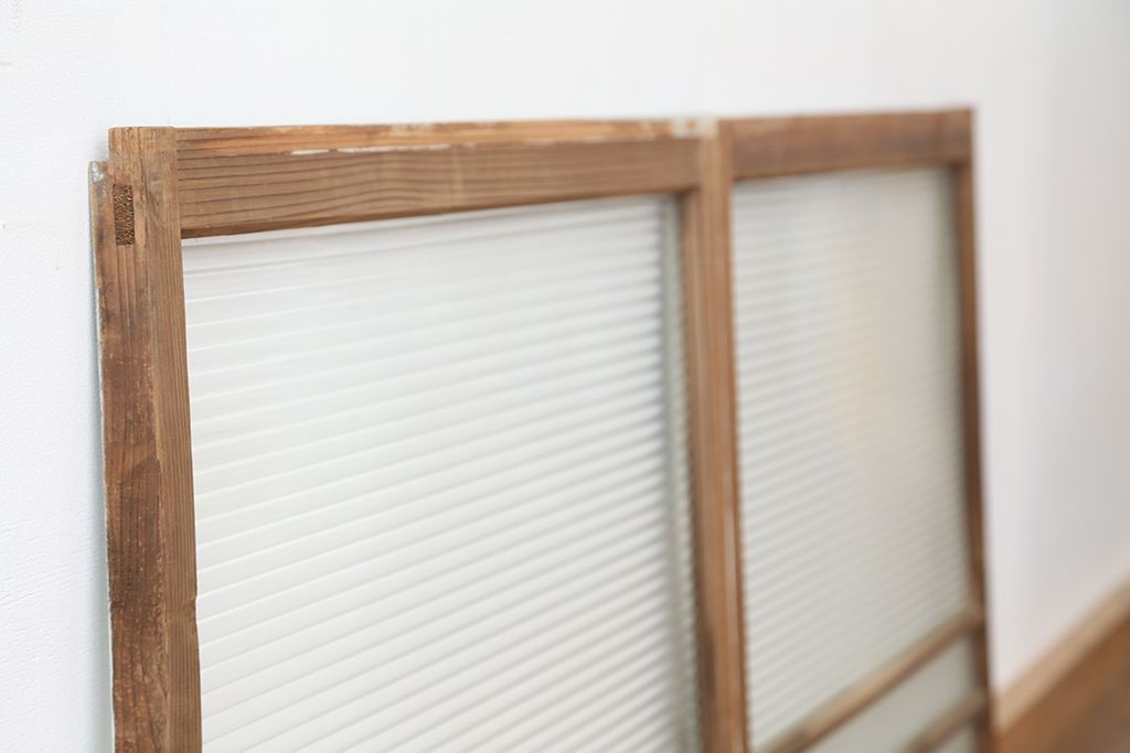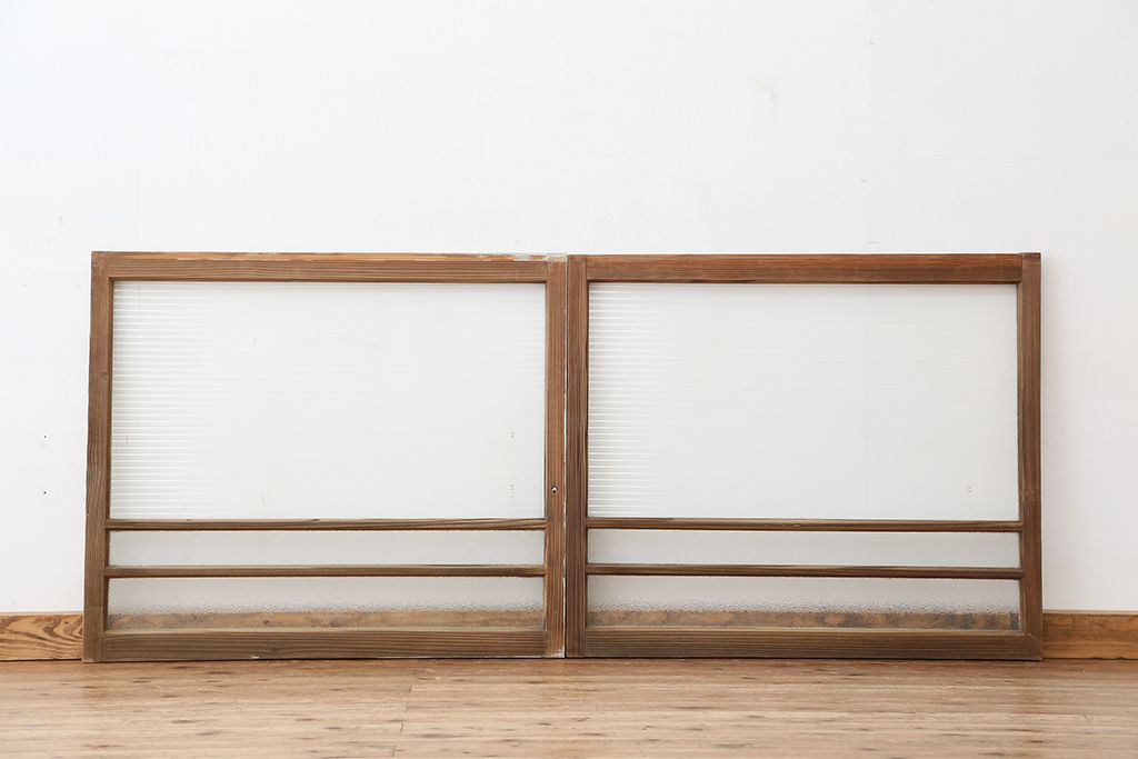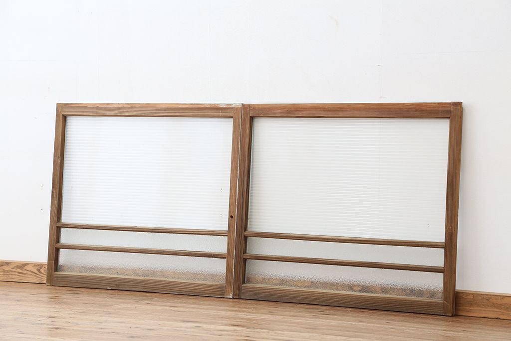 アンティーク 古い木味のモールガラス戸 2枚セット(2)(引き戸、窓)です。