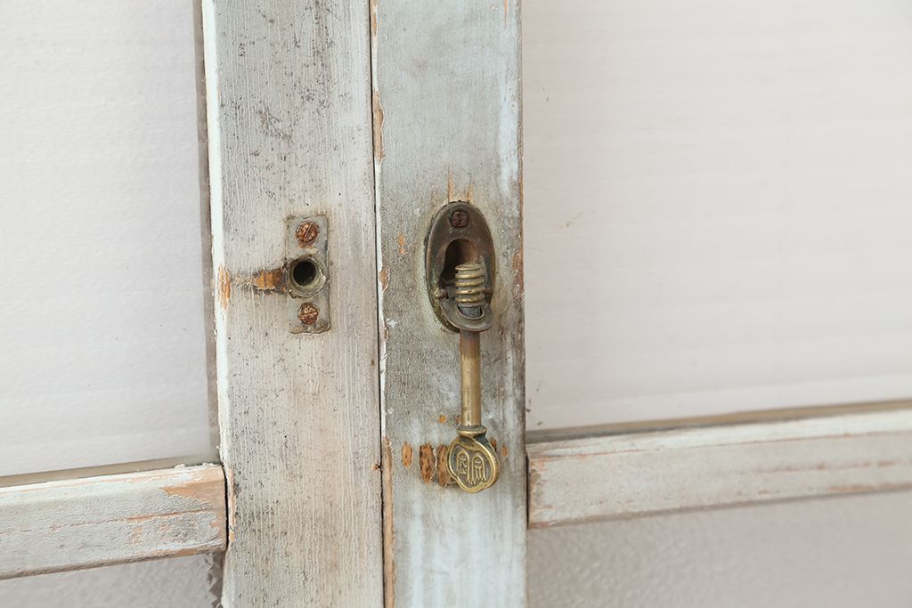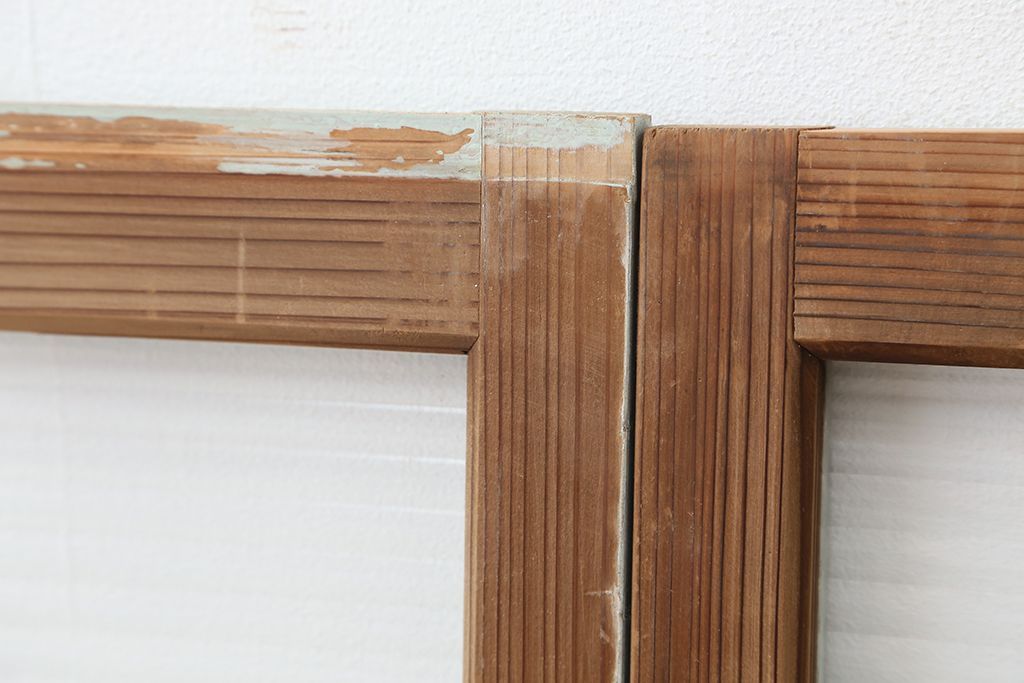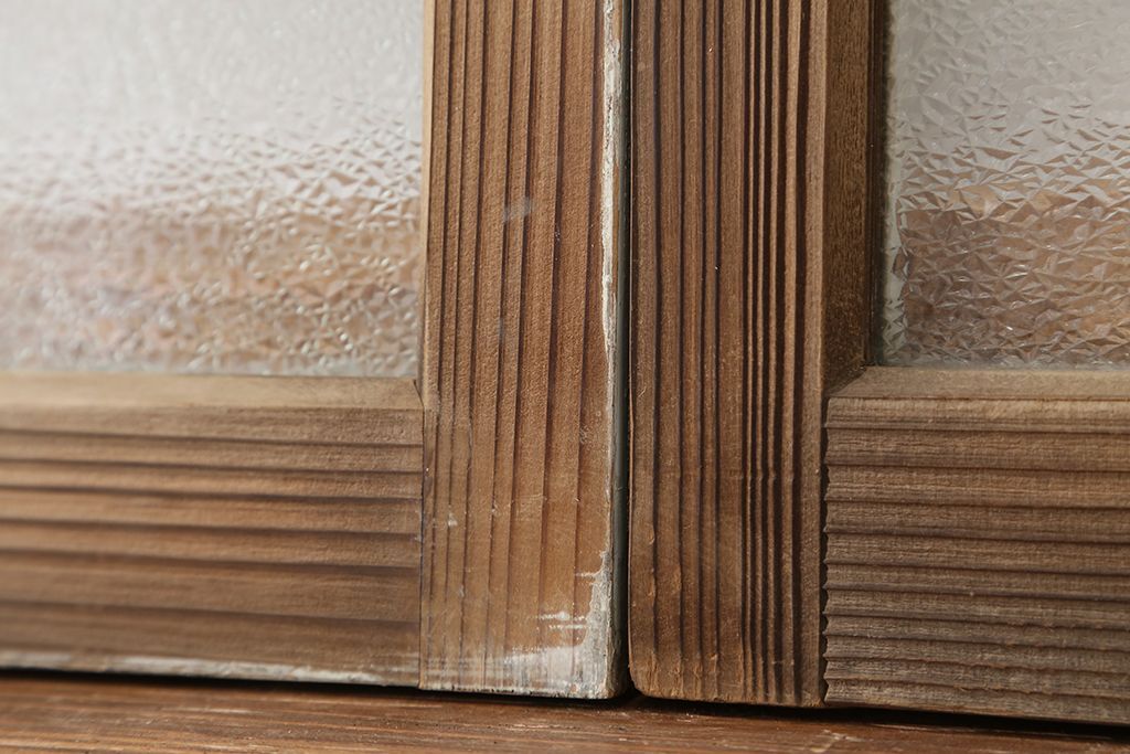 アンティーク 古い木味のモールガラス戸 2枚セット(2)(引き戸、窓)