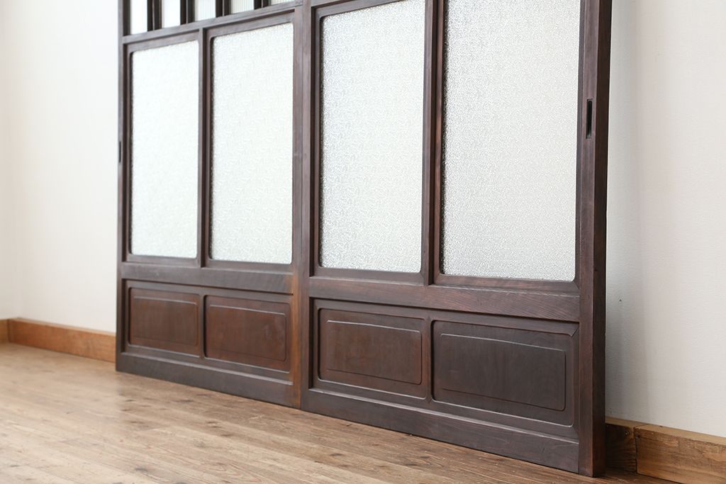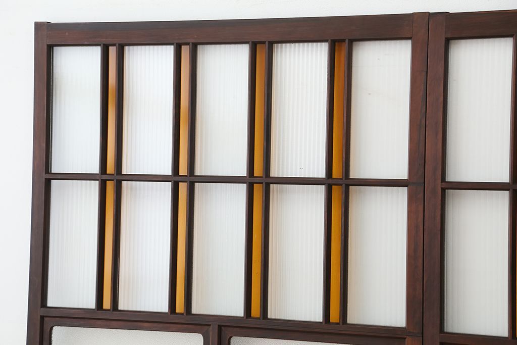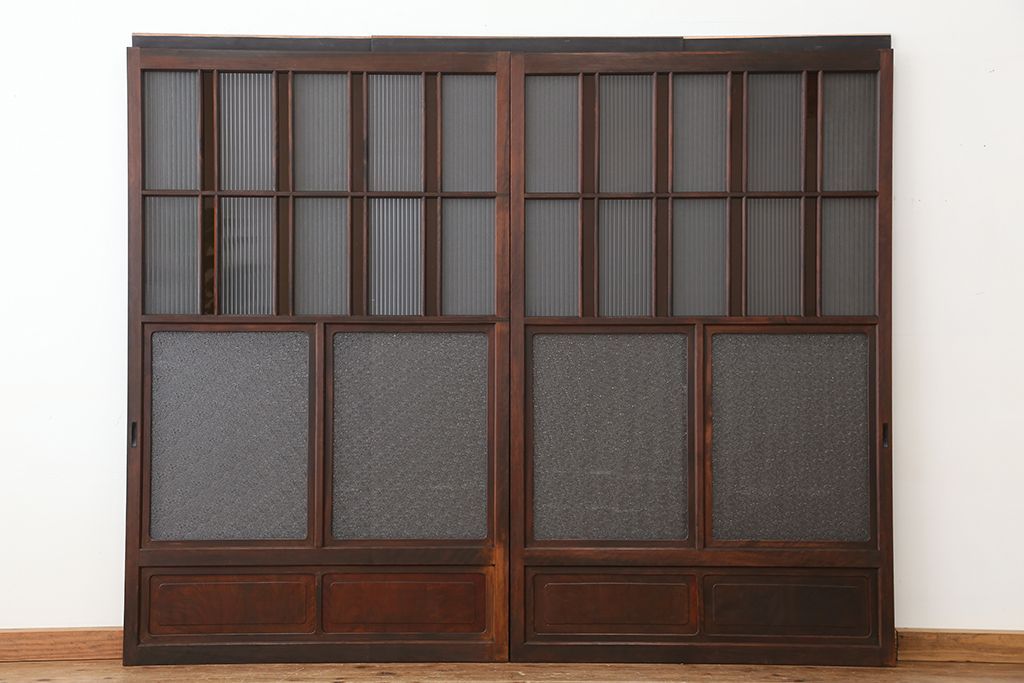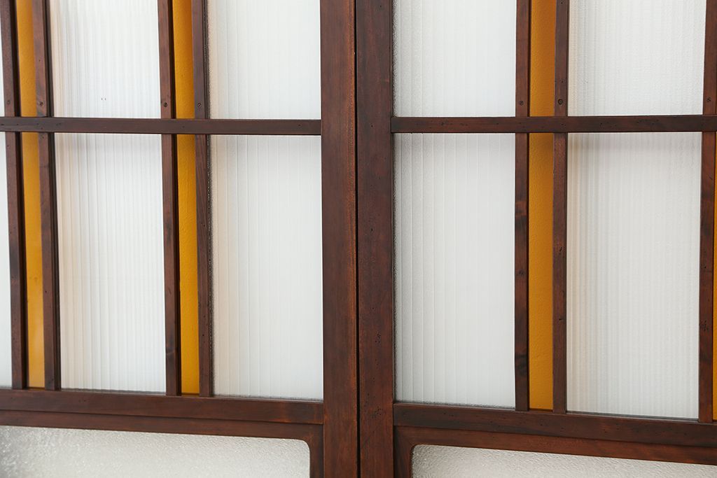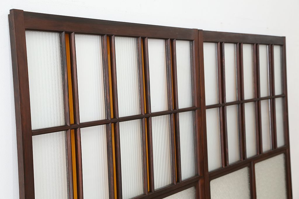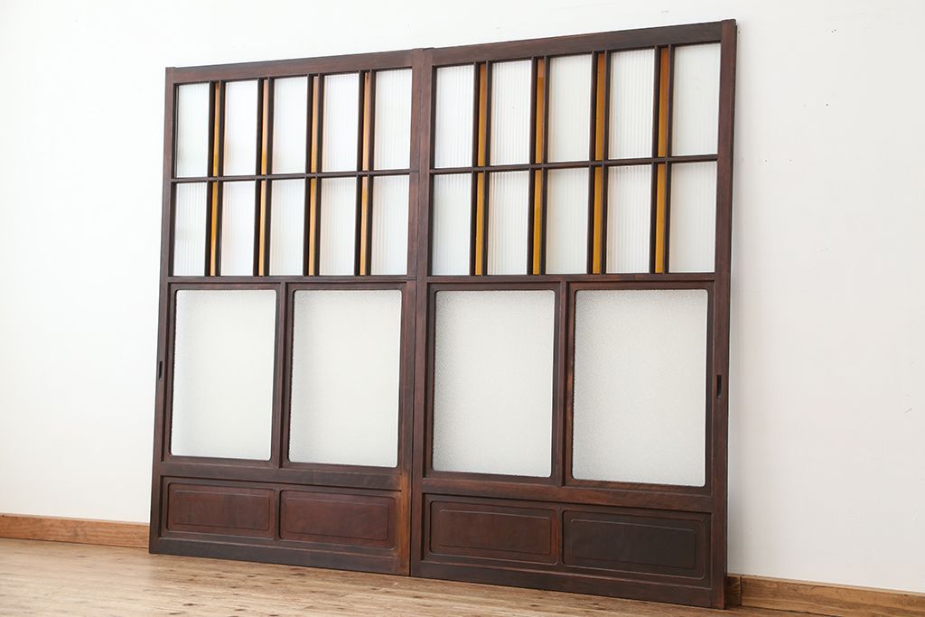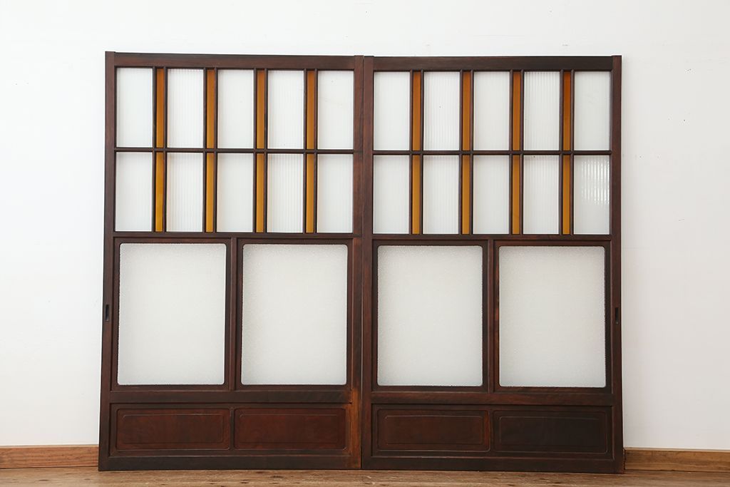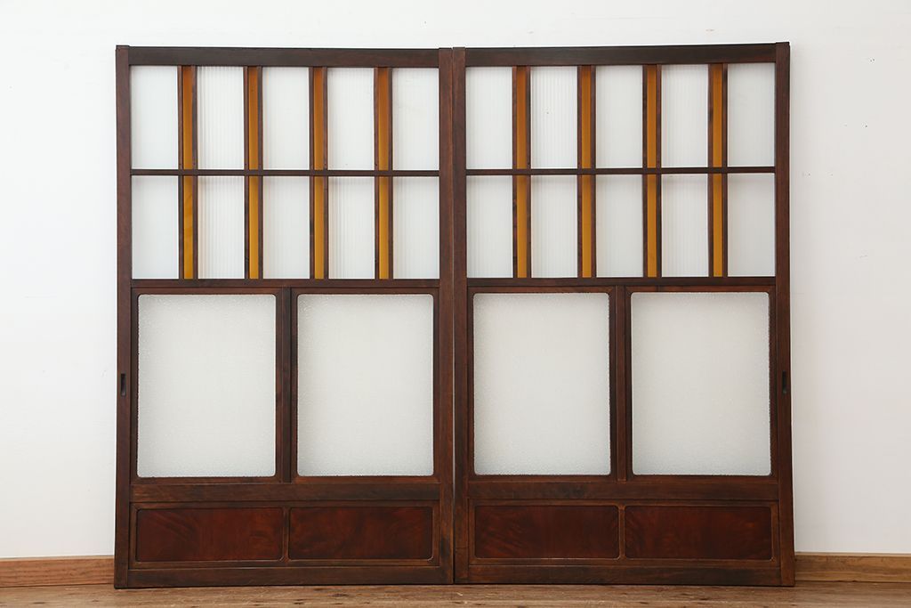 大正ロマン 古いお屋敷の上質な色ガラス引き戸 2枚セット(ガラス戸・建具)