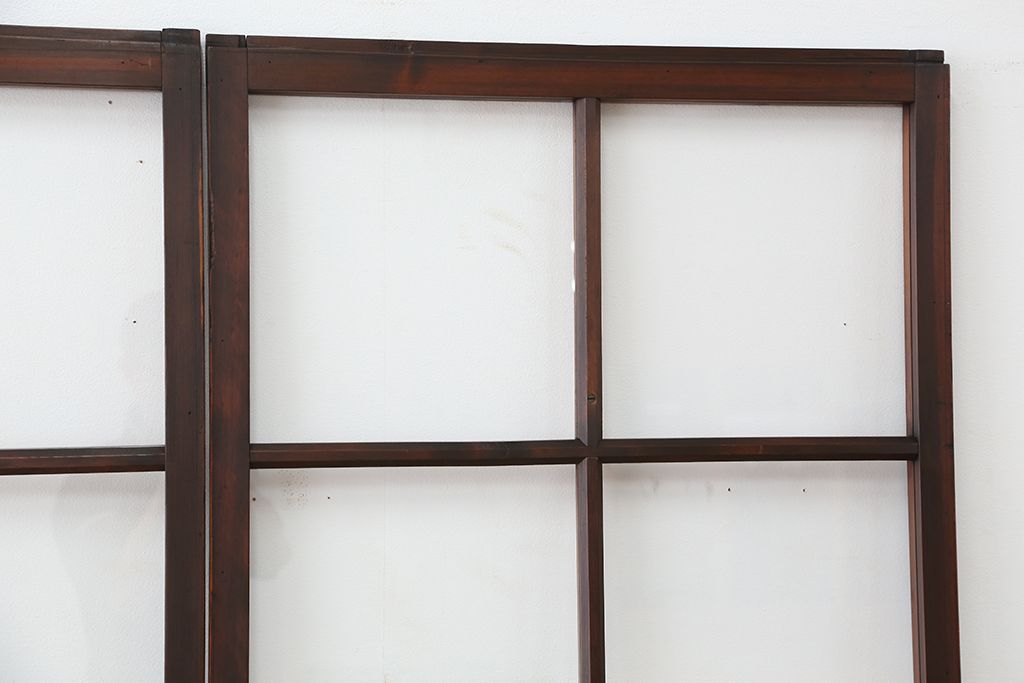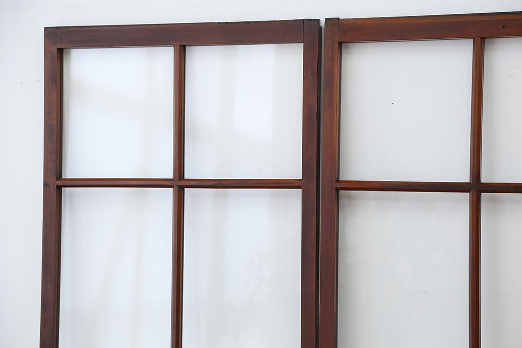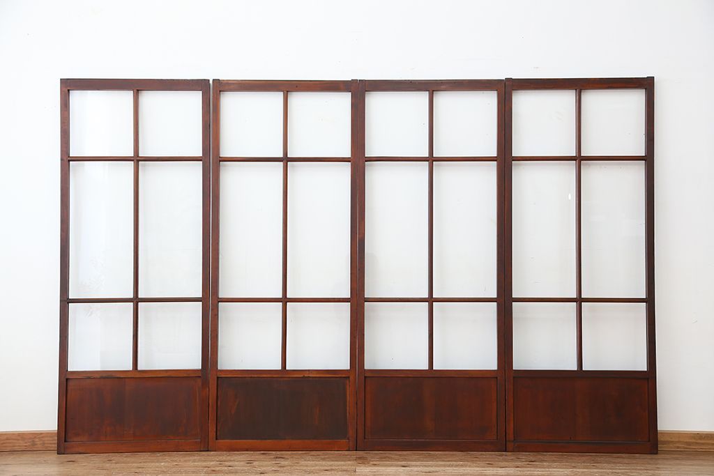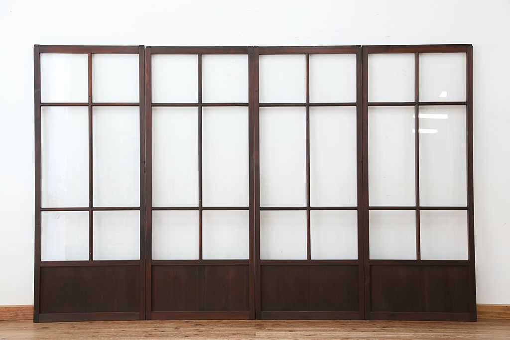 アンティーク 古いお家のシンプルな引き戸 4枚セット(ガラス戸、建具)です。