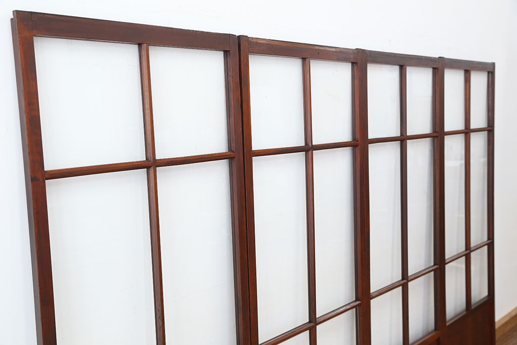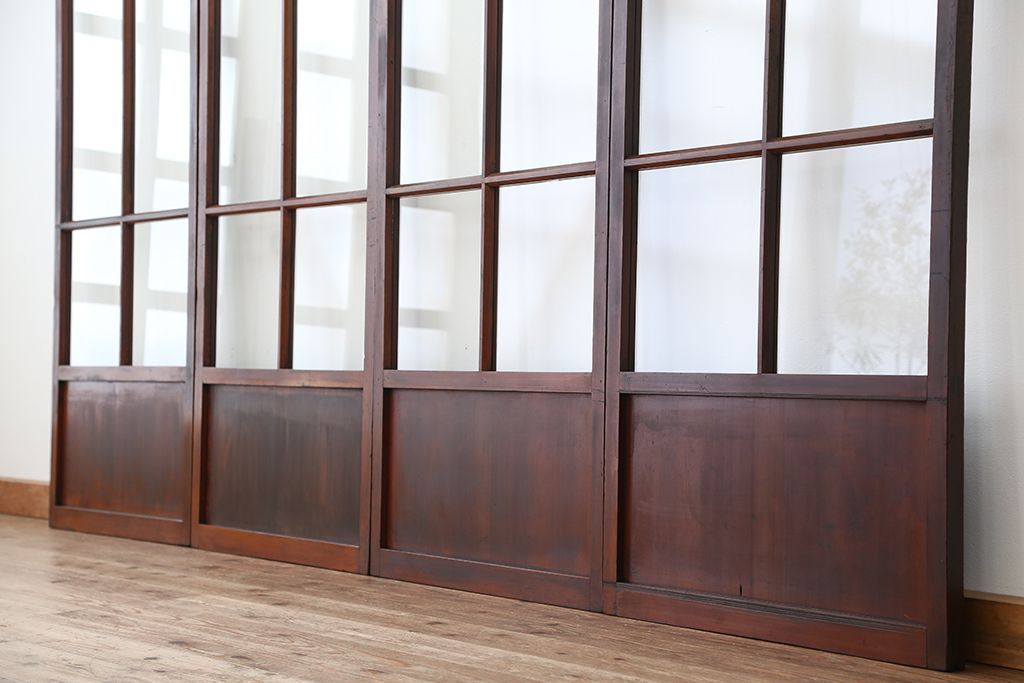 アンティーク 古いお家のシンプルな引き戸 4枚セット(ガラス戸、建具)