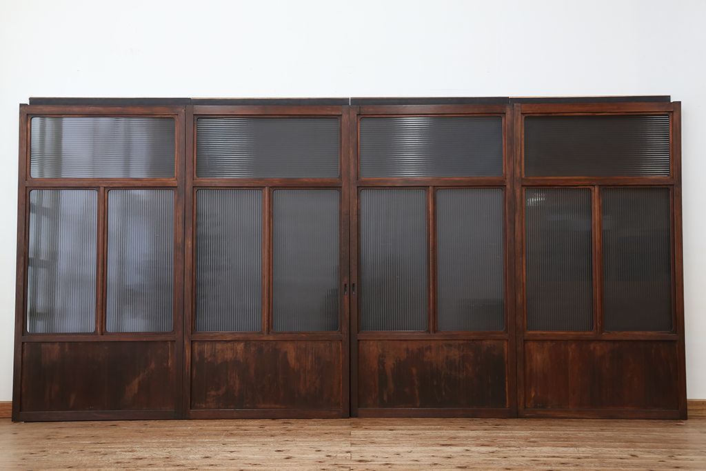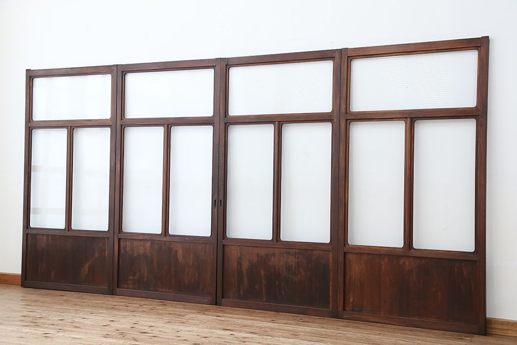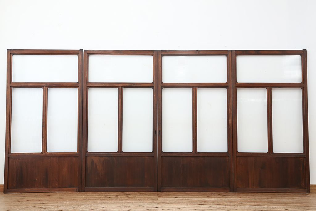 アンティーク 上質な作りのモールガラス引き戸 4枚セット(建具、ガラス戸)です。