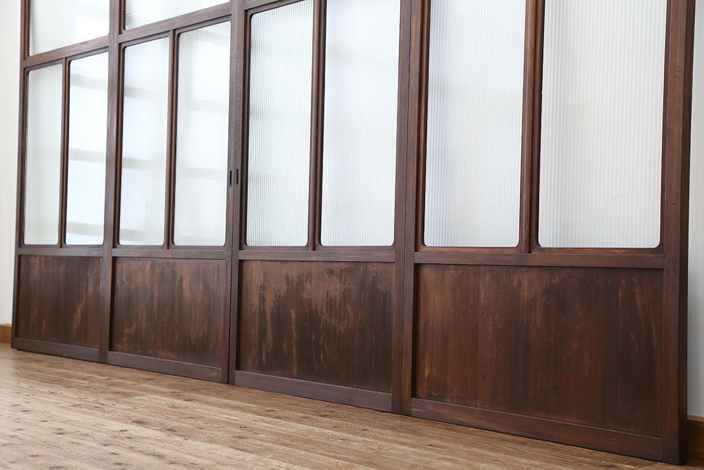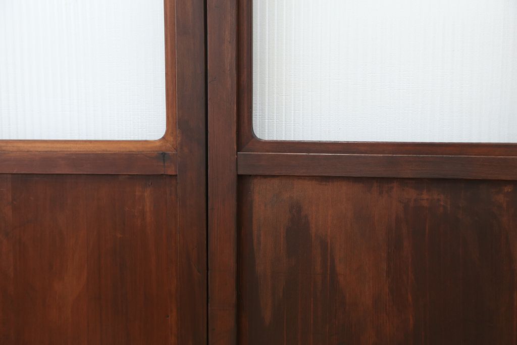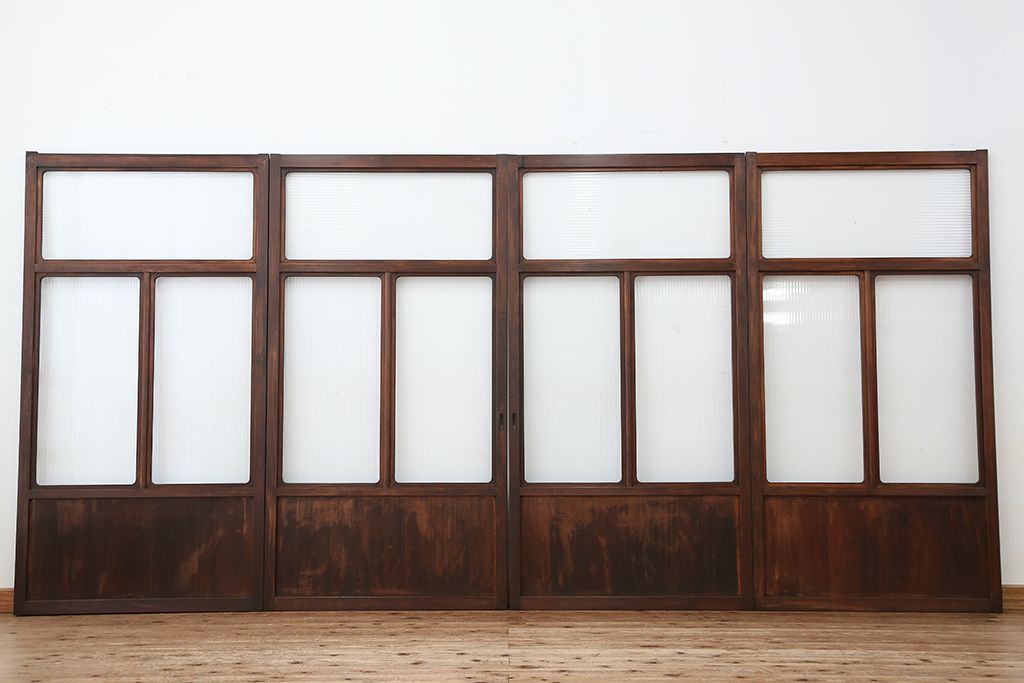 アンティーク 上質な作りのモールガラス引き戸 4枚セット(建具、ガラス戸)
