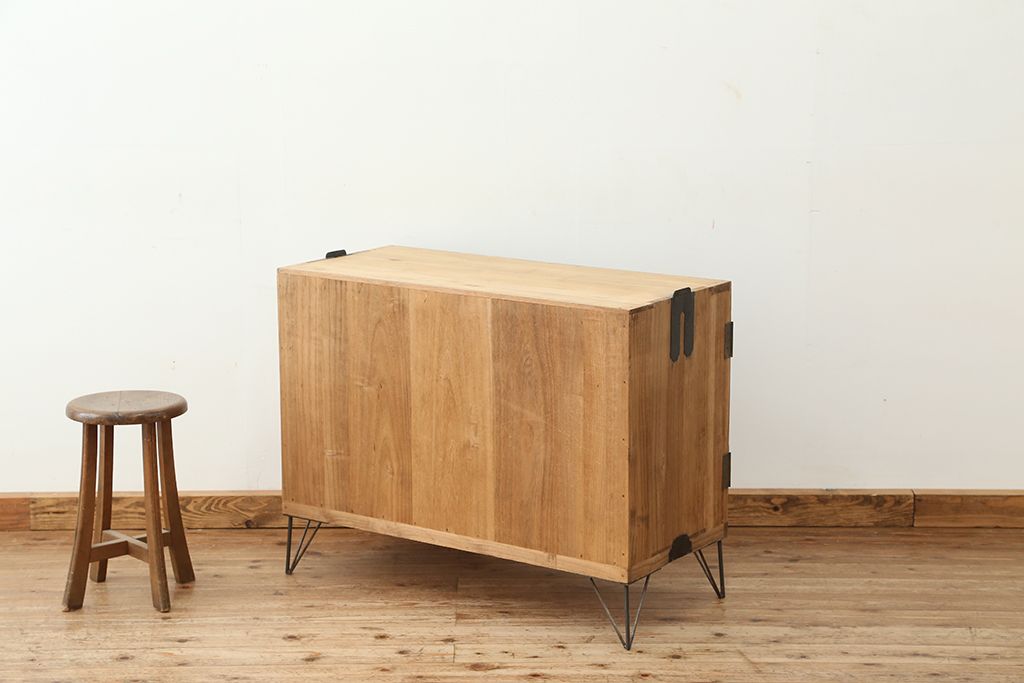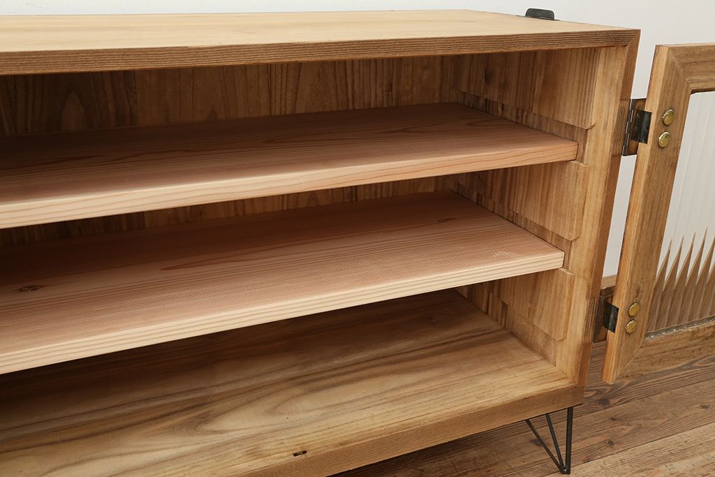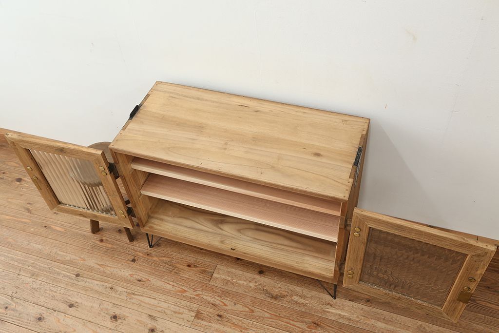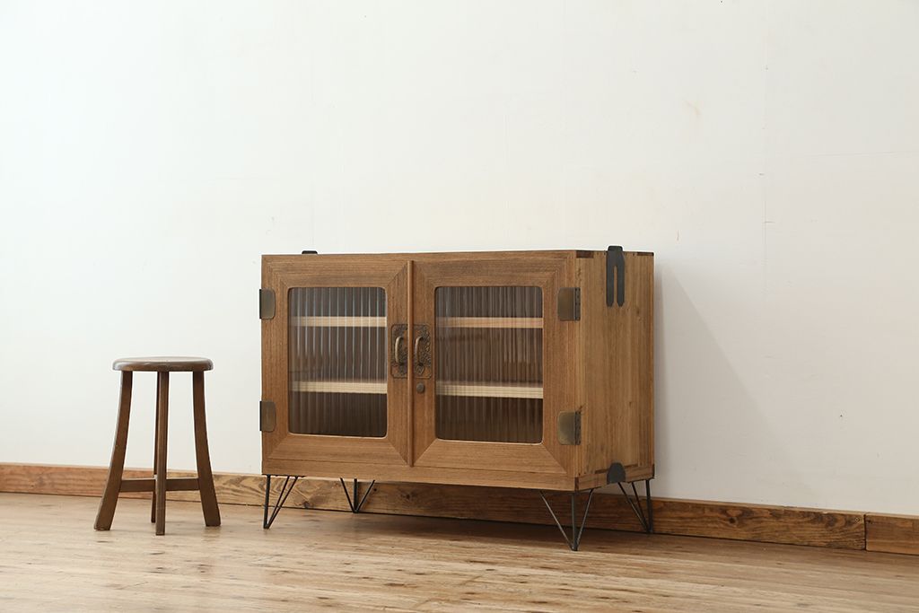 アンティーク 古い木味のモールガラス脚付きローボードです。