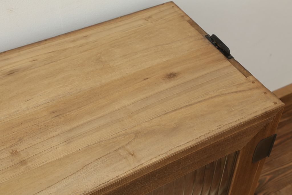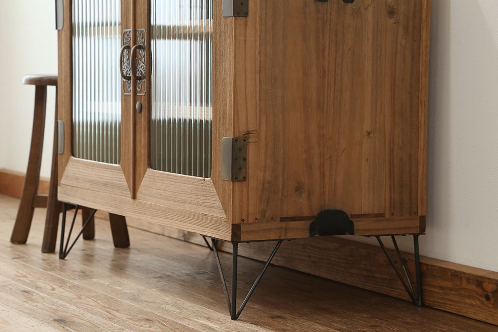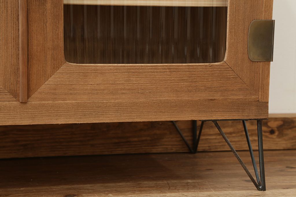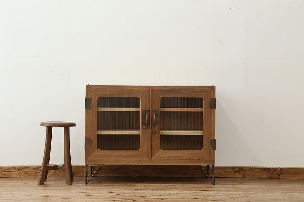 アンティーク家具 アンティーク 古い木味のモールガラス脚付きローボード