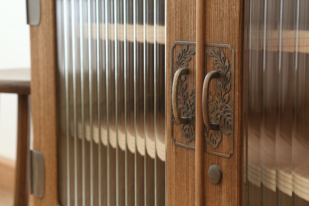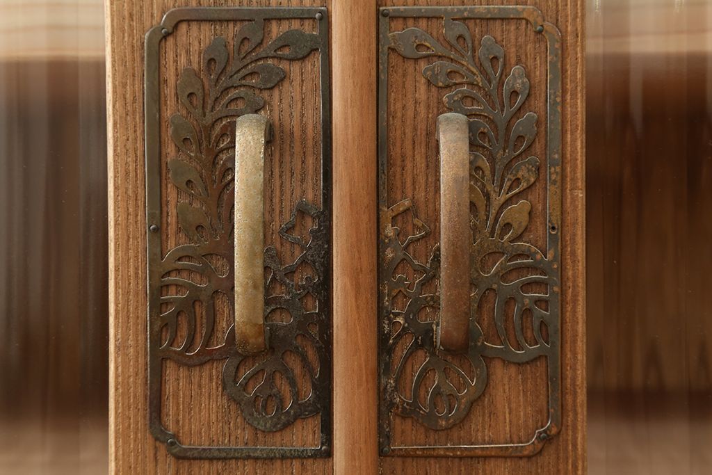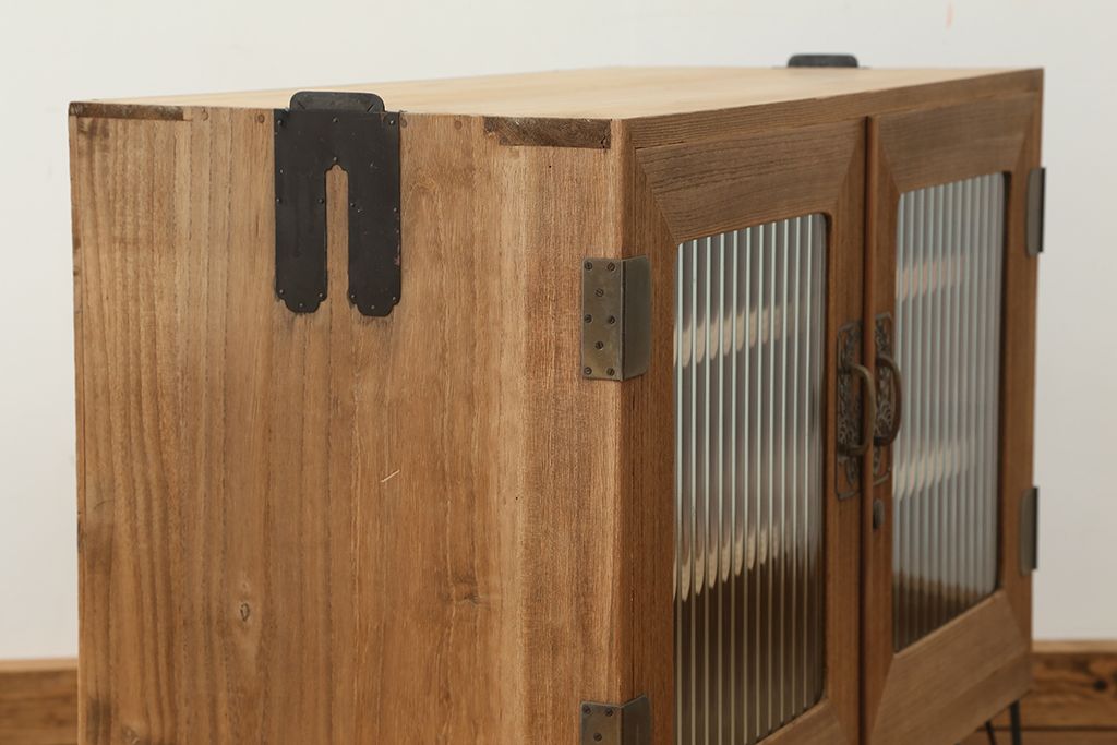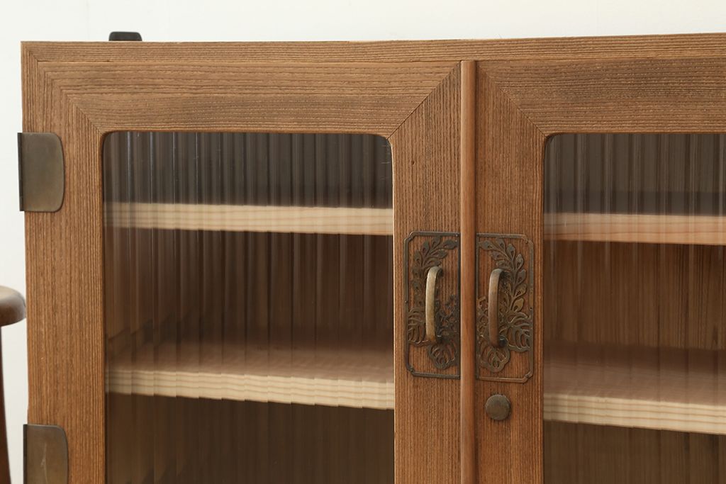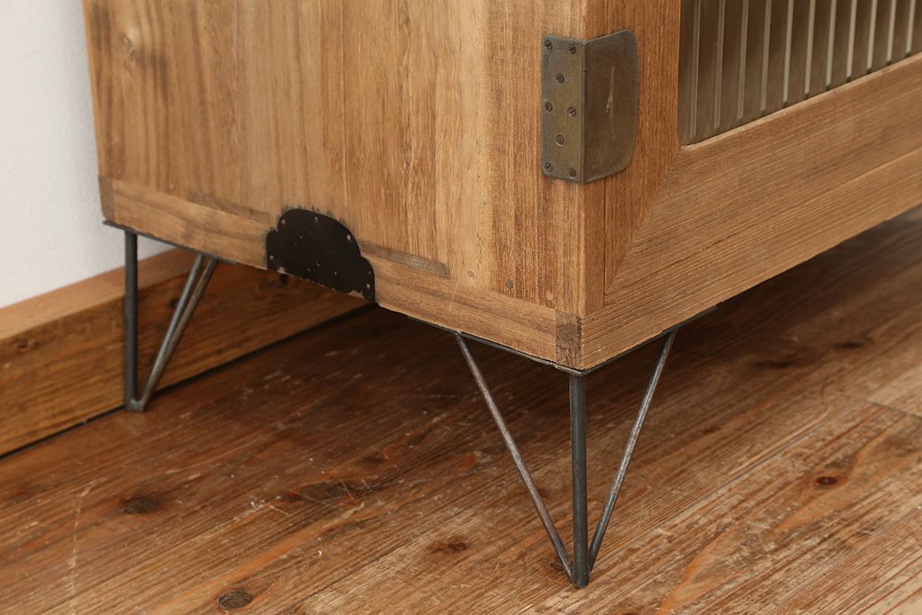 アンティーク家具 アンティーク 古い木味のモールガラス脚付きローボード