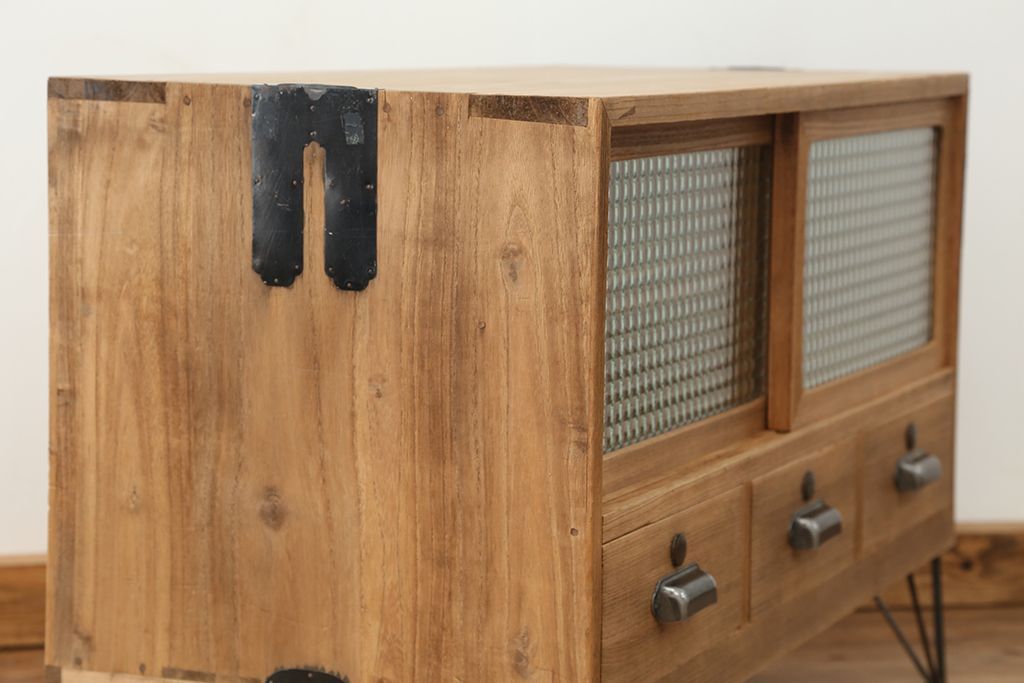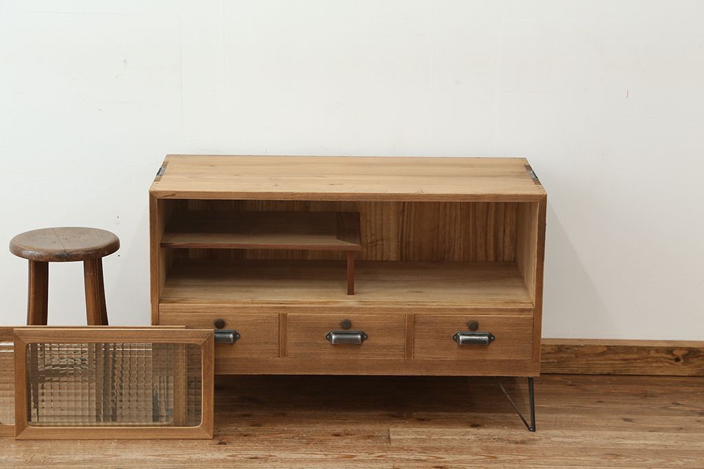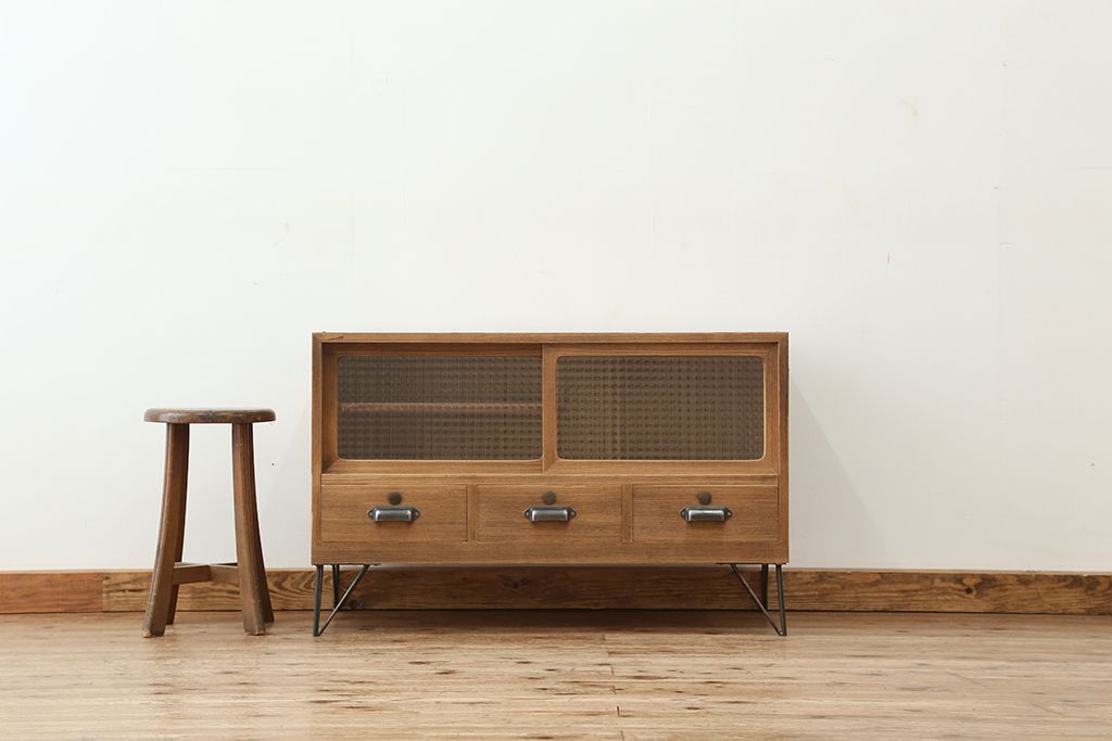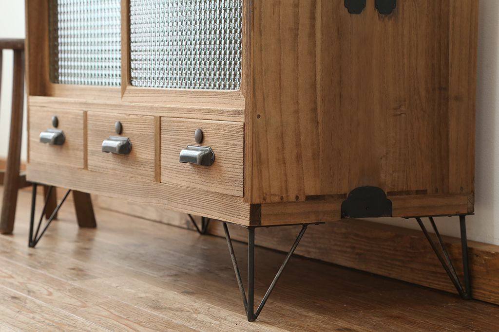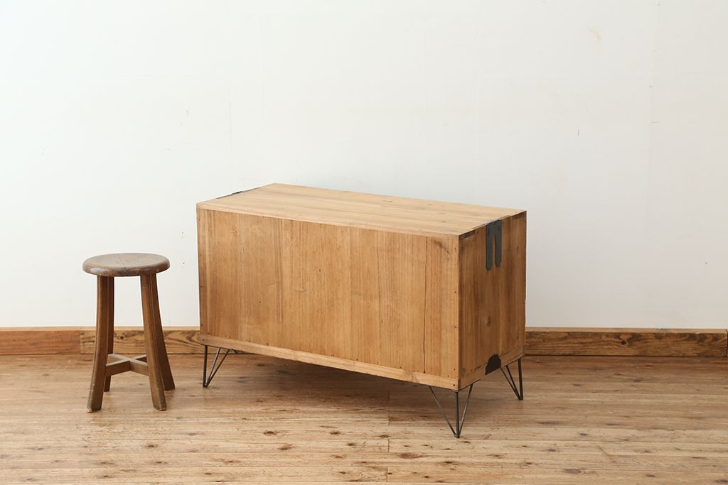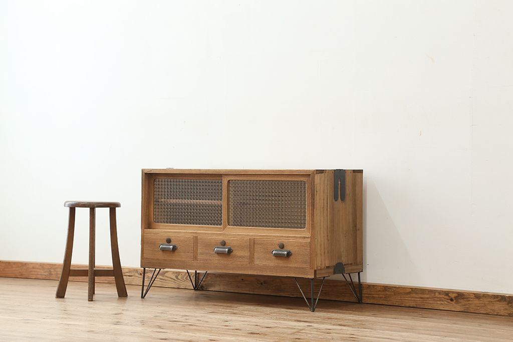 時代感のある家具をフローリングに似合う鉄脚でアレンジしました。