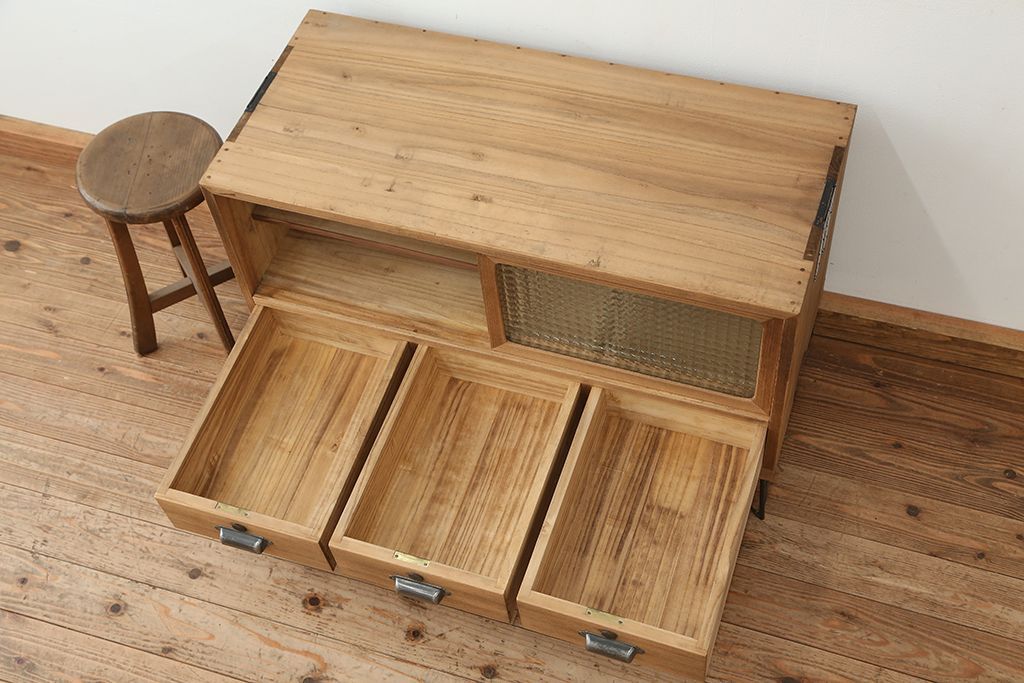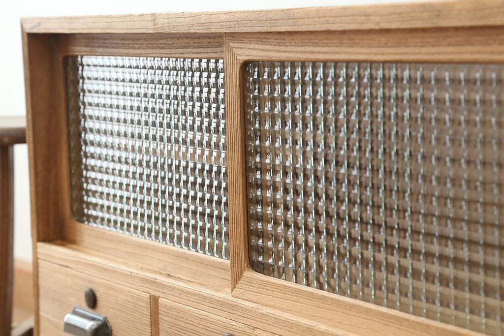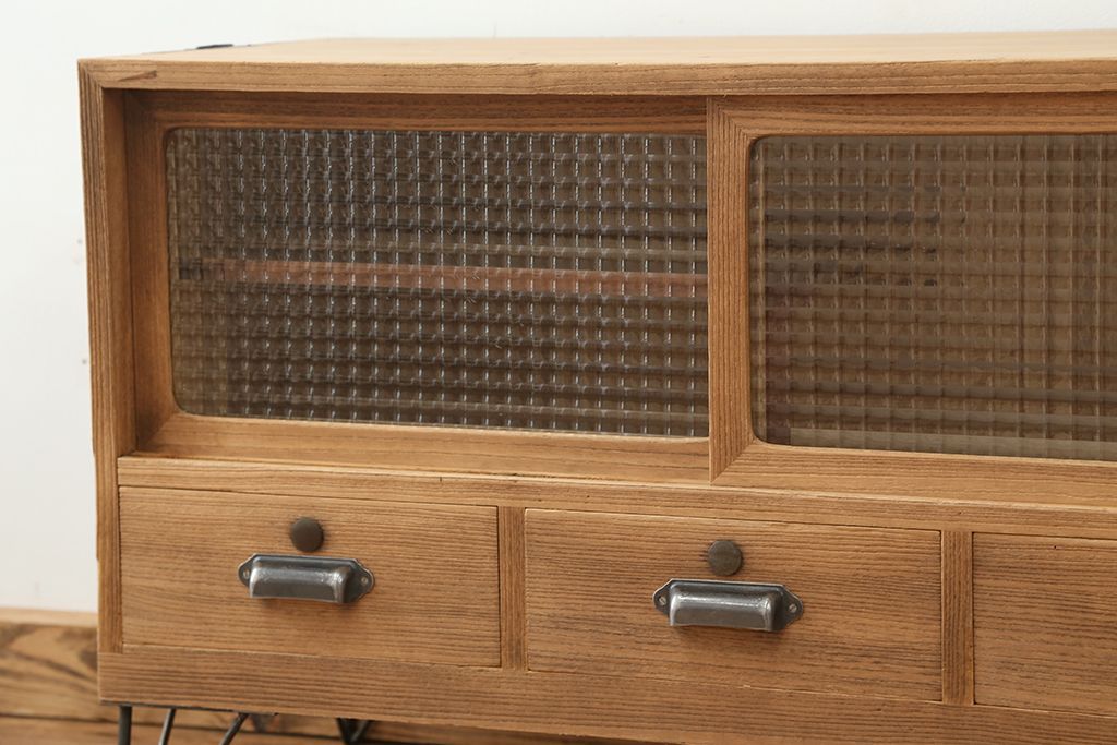 アンティーク家具 アンティーク 素敵なデザイン!古い木味のチェッカーガラスローボード