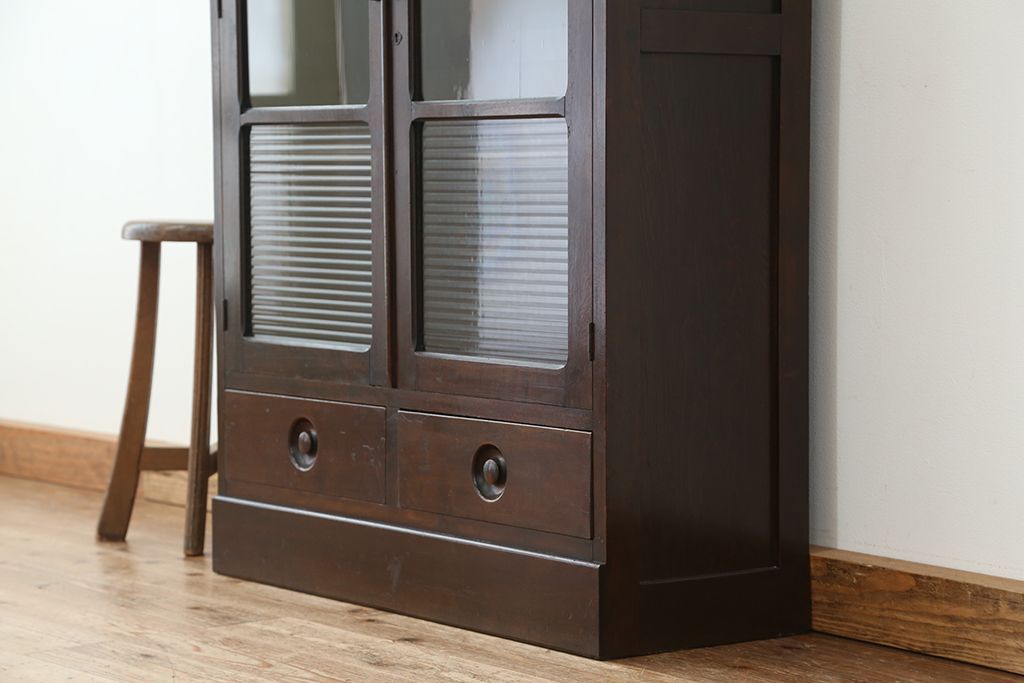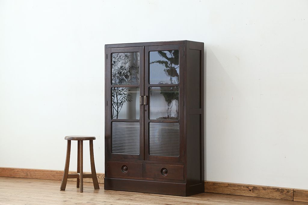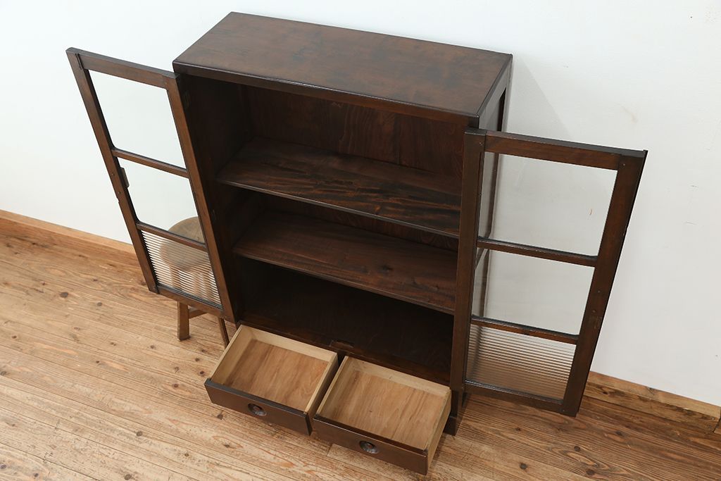 アンティーク家具 素敵なデザイン!古い木のシックなアンティーク本箱(収納棚)