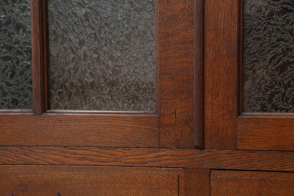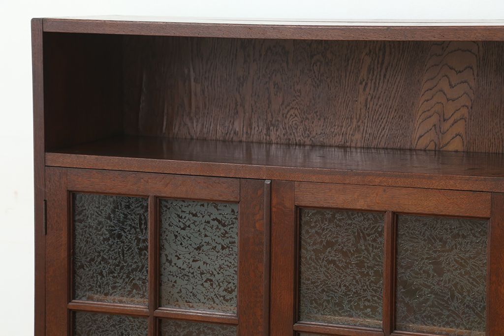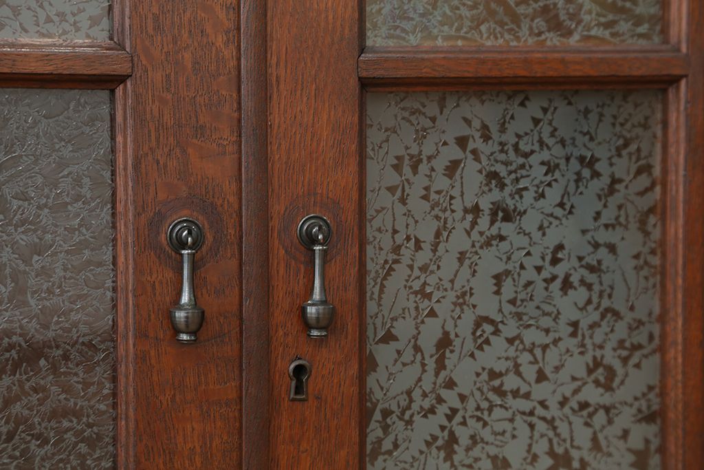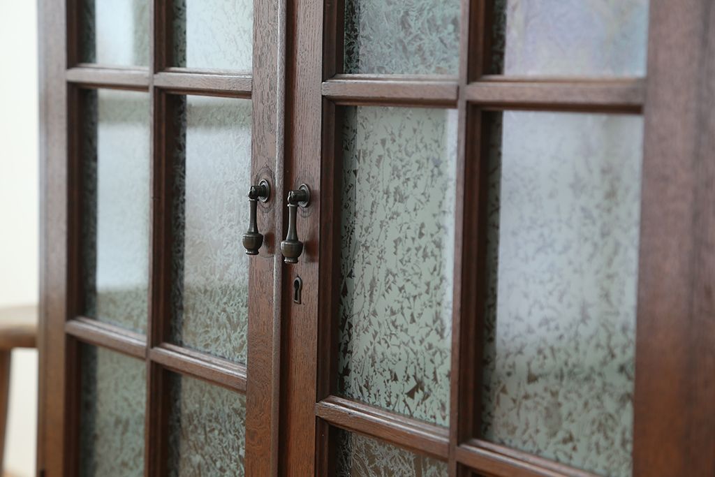 アンティーク家具 アンティーク 高級品!古い洋館の結霜ガラスナラ材本箱