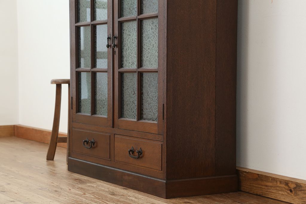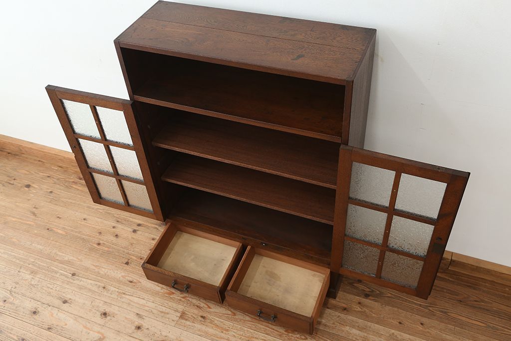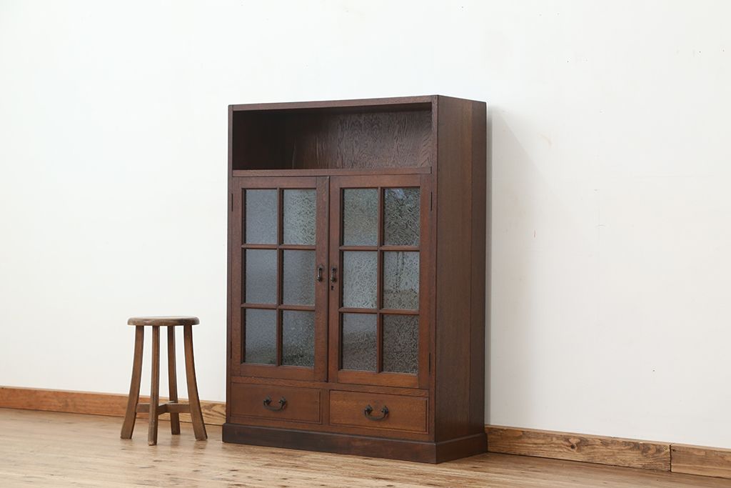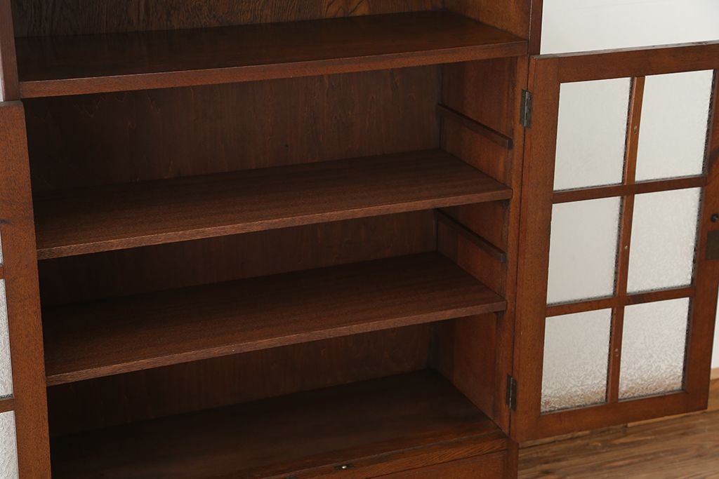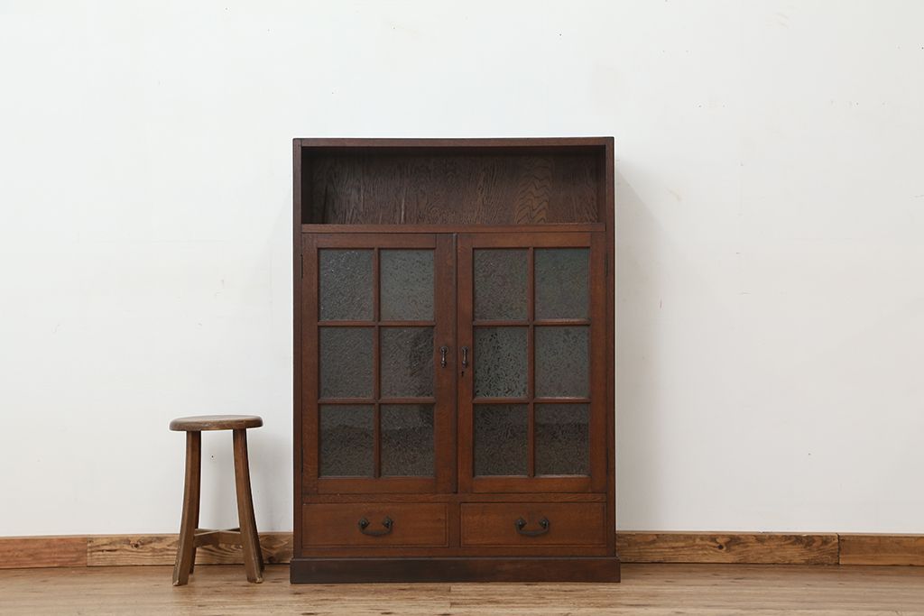 アンティーク家具 アンティーク 高級品!古い洋館の結霜ガラスナラ材本箱