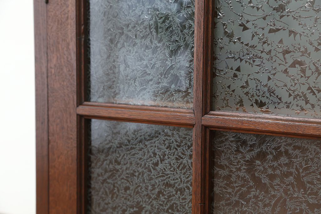 アンティーク 高級品!古い洋館の結霜ガラスナラ材本箱です。