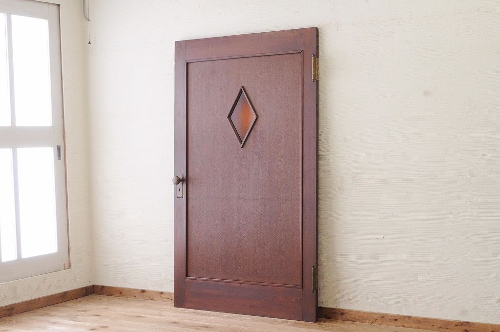アンティーク 当時物色ガラス入り!菱形窓のモダンなドア