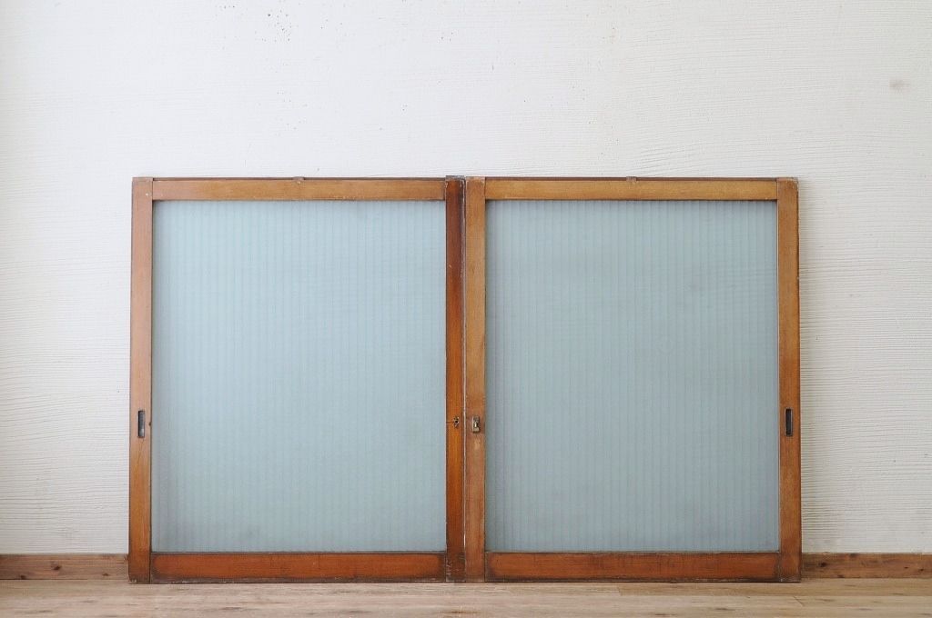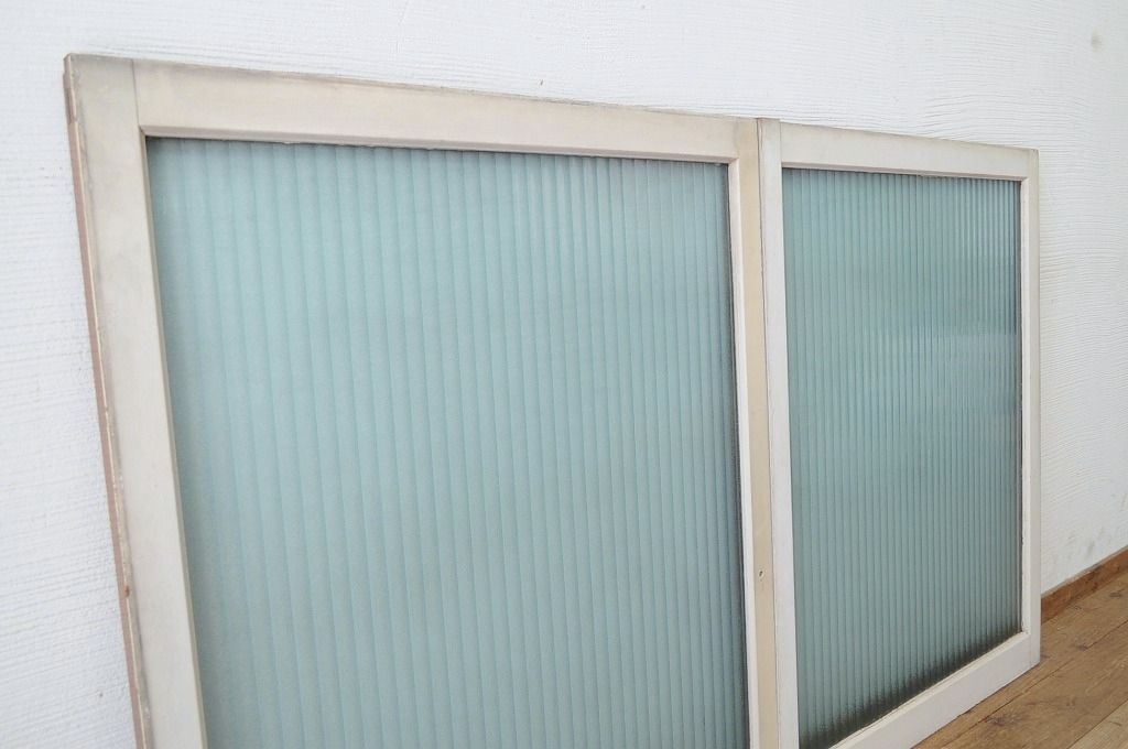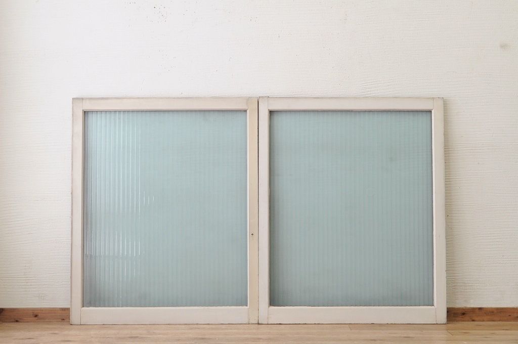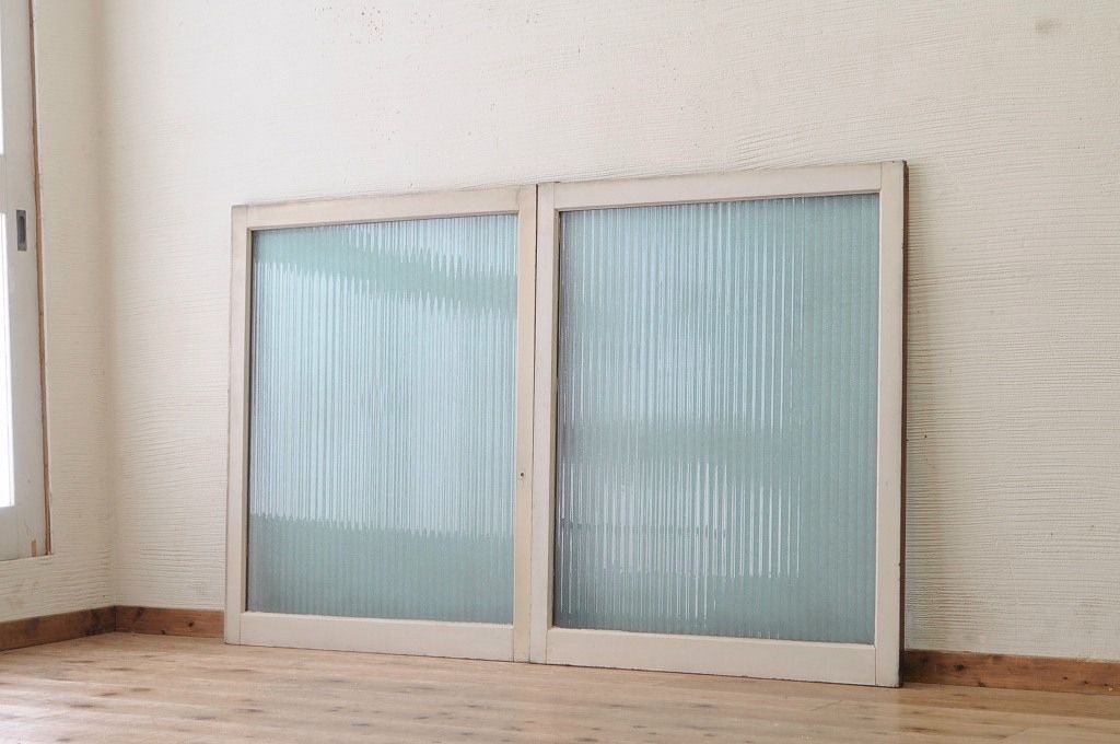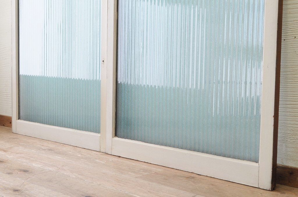 アンティーク シャビーなペイントのレトロな銀モールガラス引き戸2枚セットです。