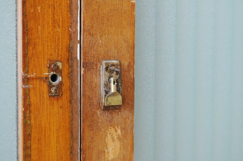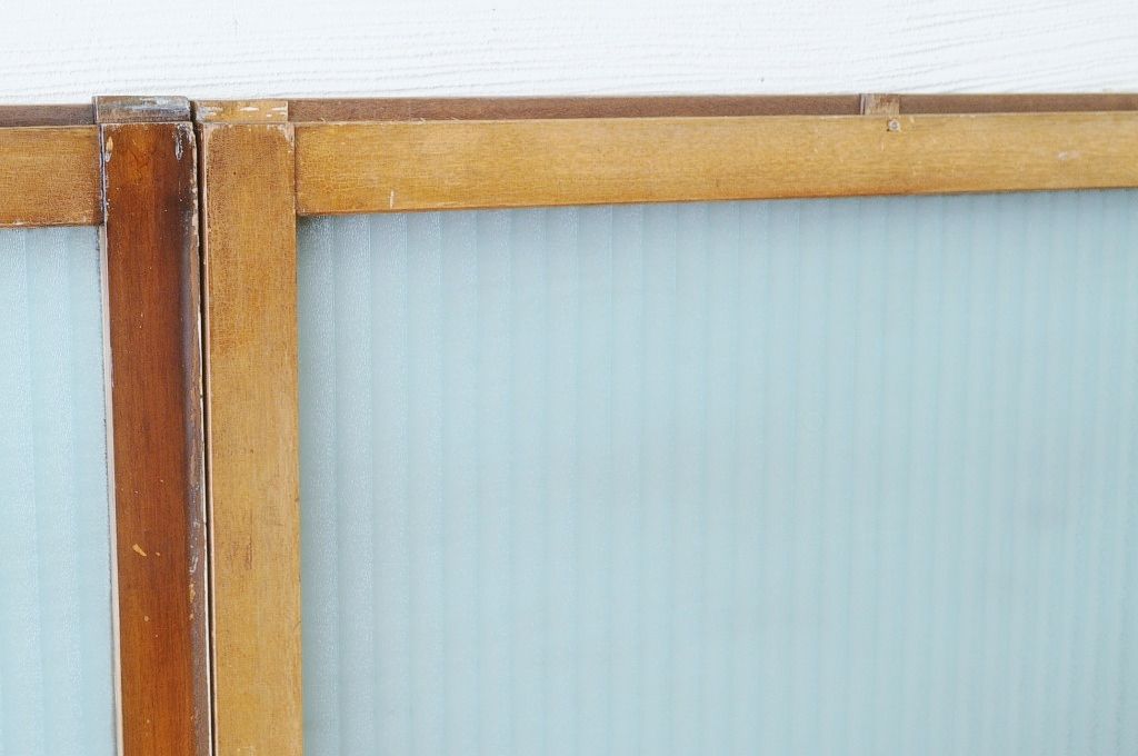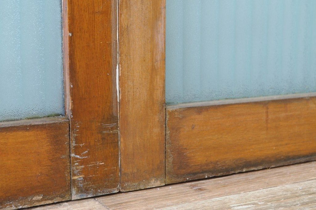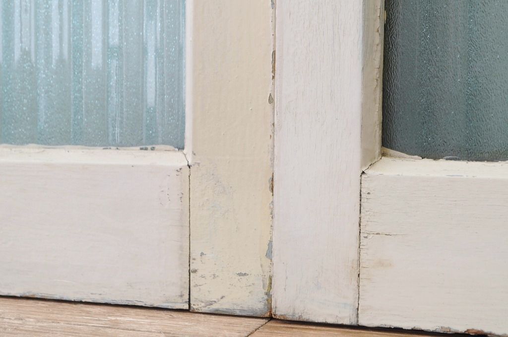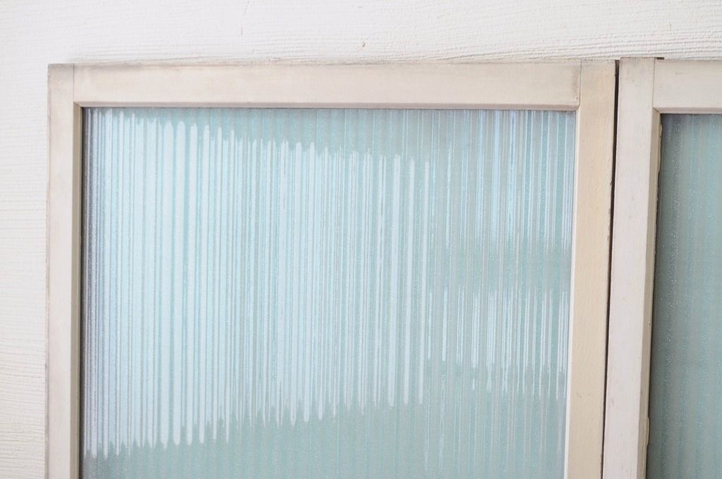 アンティーク シャビーなペイントのレトロな銀モールガラス引き戸2枚セット(2)