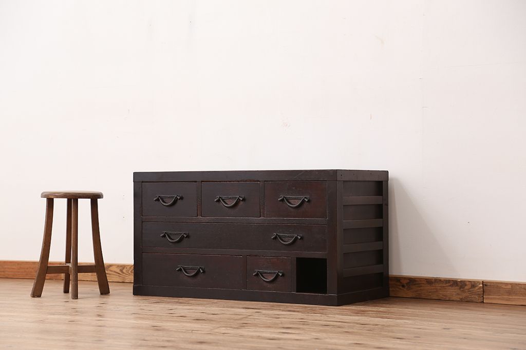 和箪笥 > アンティーク家具 アンティーク 古い小窓付きの6杯時代箪笥ローチェスト(引き出し)
