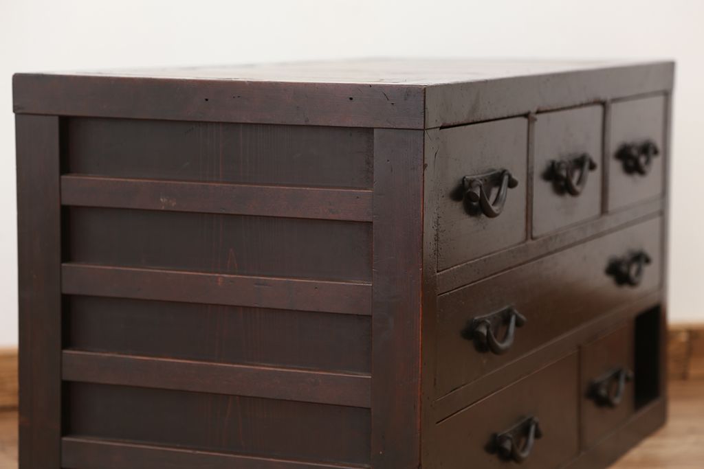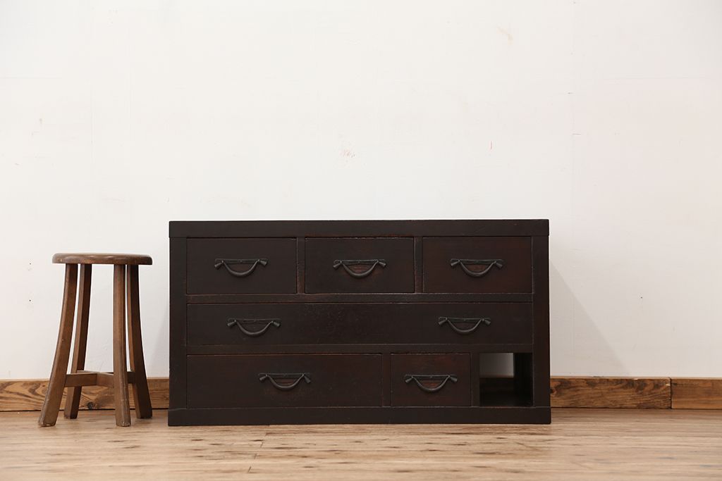 和箪笥> 衣装箪笥 > アンティーク家具 アンティーク 古い小窓付きの6杯時代箪笥ローチェスト(引き出し)