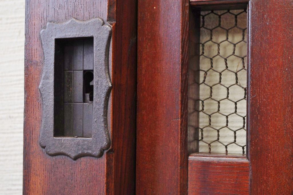 分厚い欅材の上質な漆塗りくぐり戸(蔵戸)です。