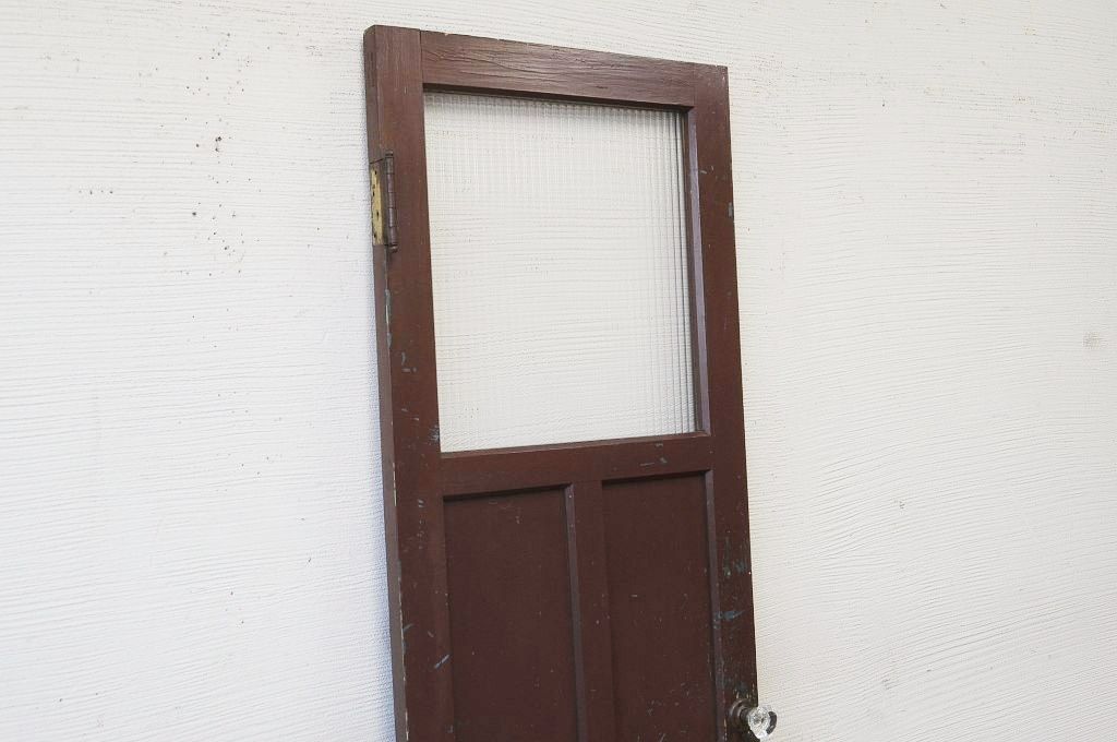 ペンキの剥げたガラスドアノブモールガラス扉です。