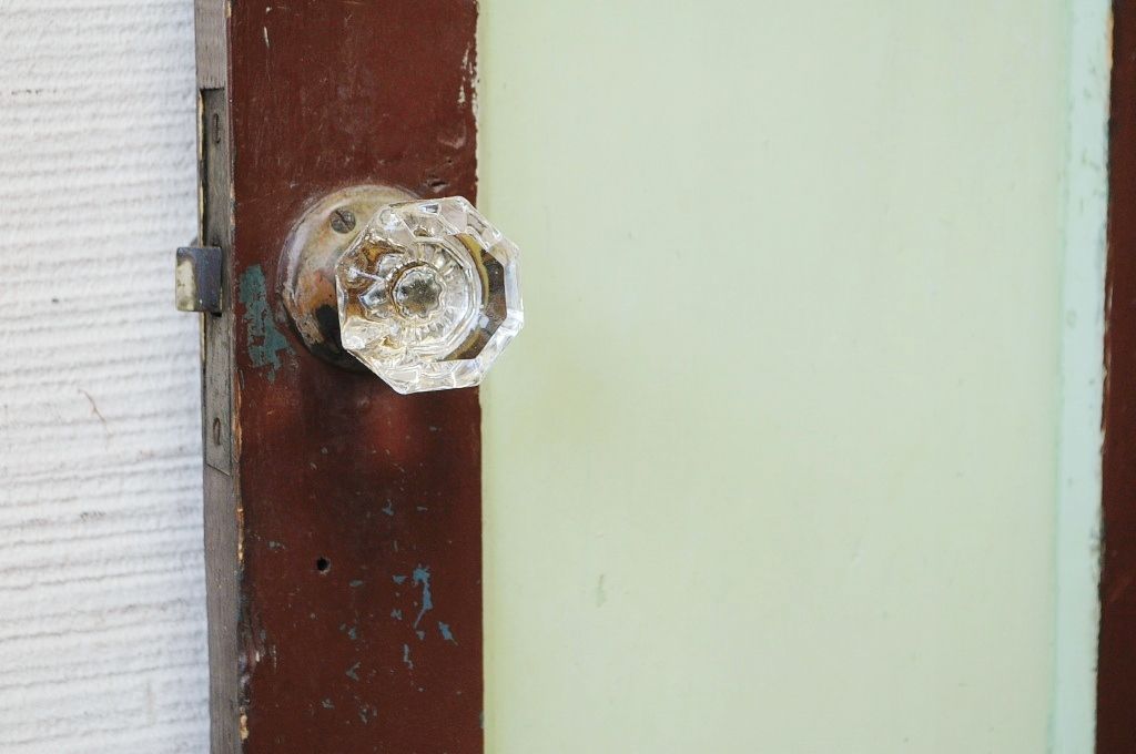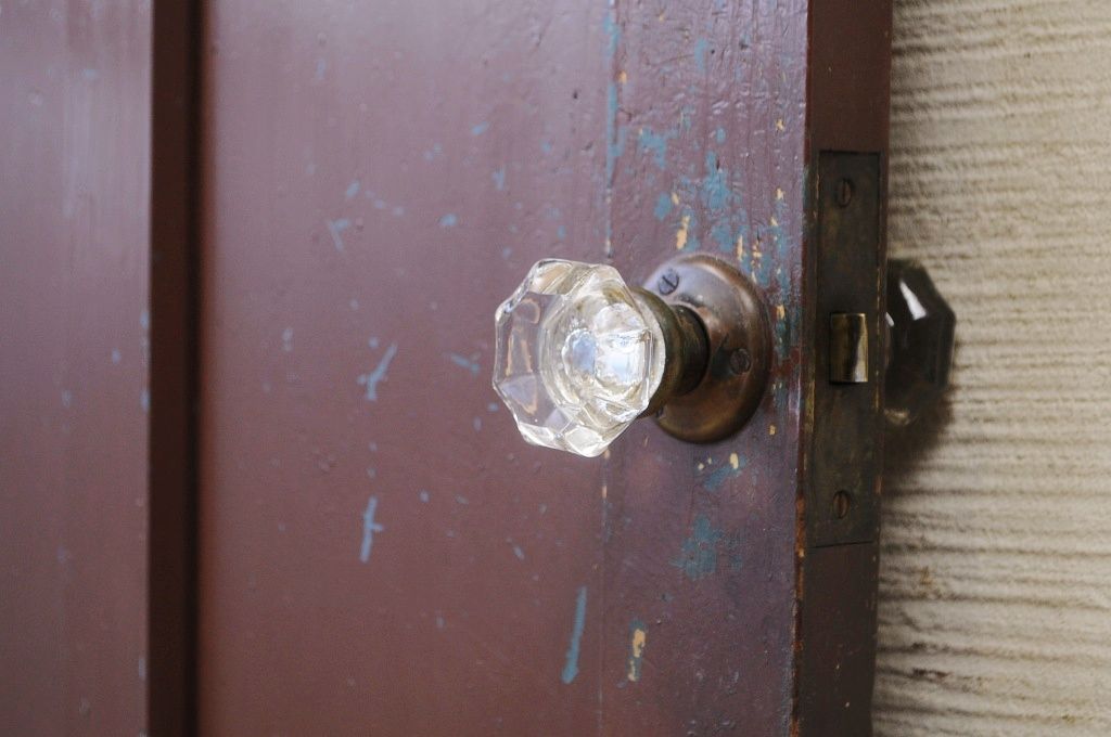 ペンキの剥げたガラスドアノブモールガラス扉8