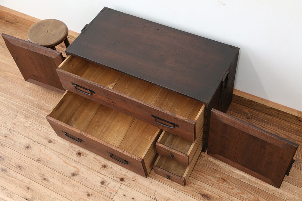 アンティーク家具 重厚!観音開き時代箪笥ローボード(ローチェスト)