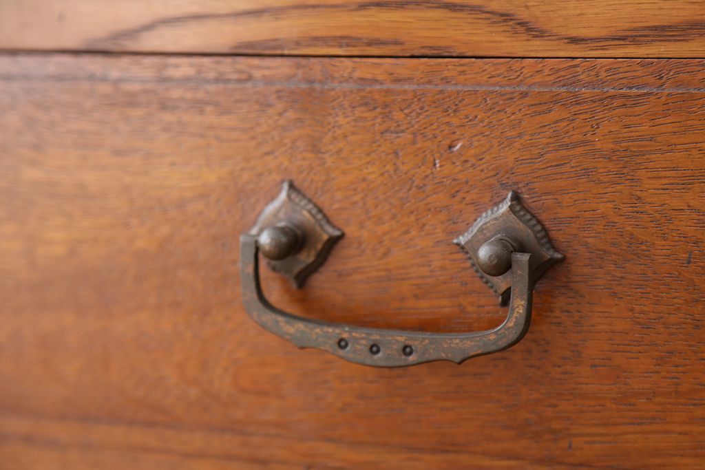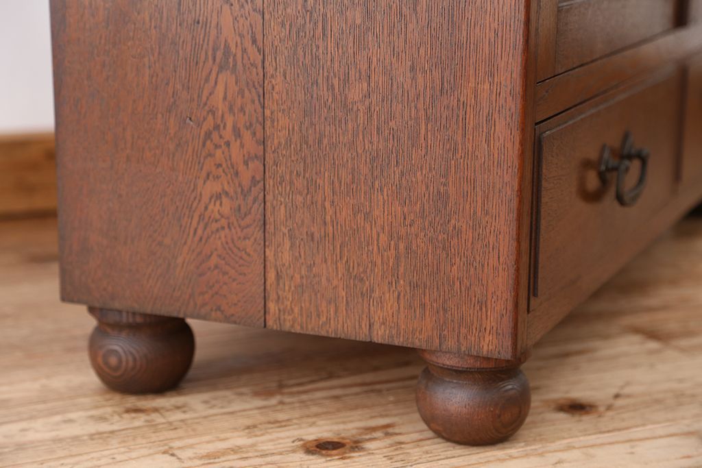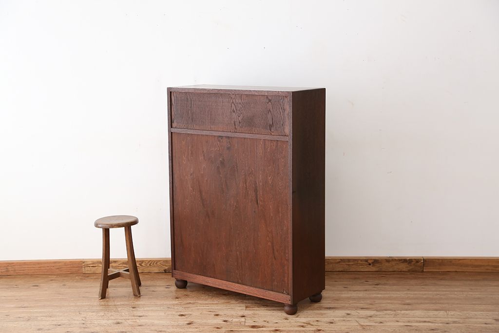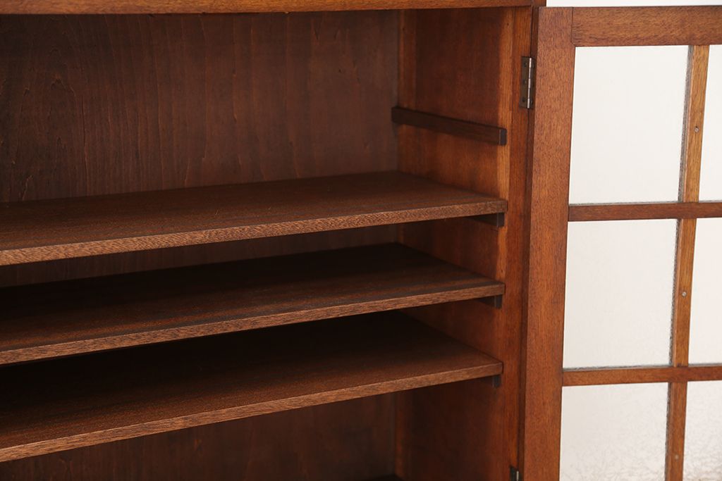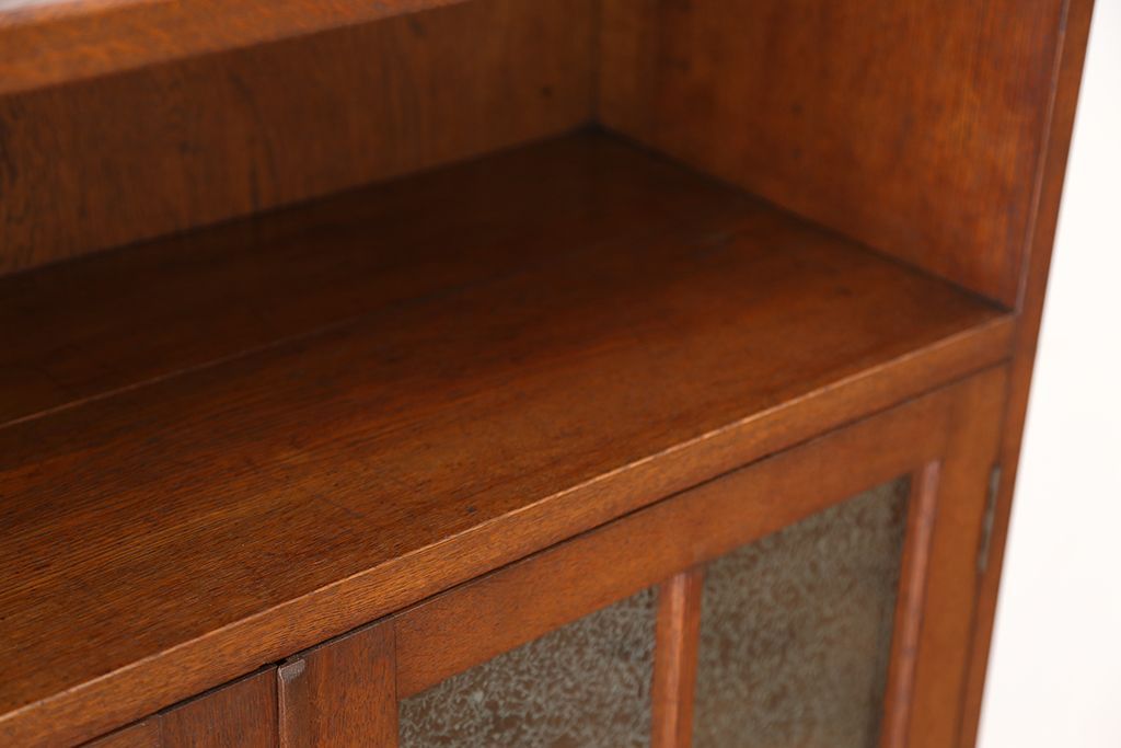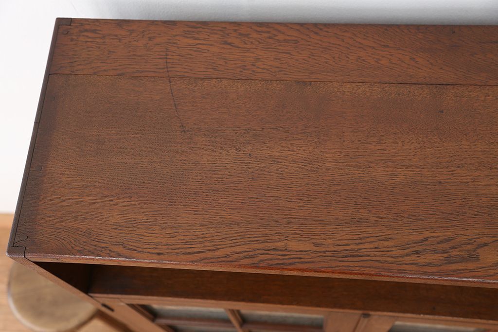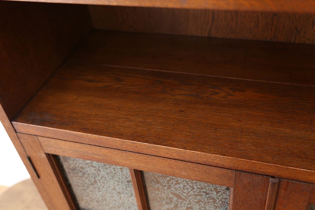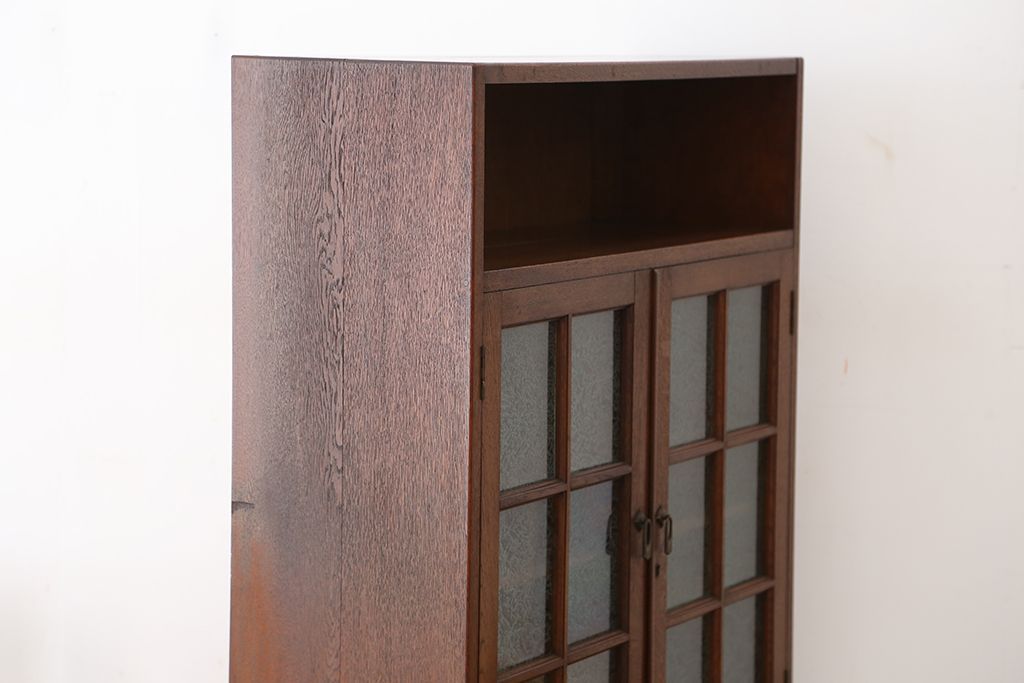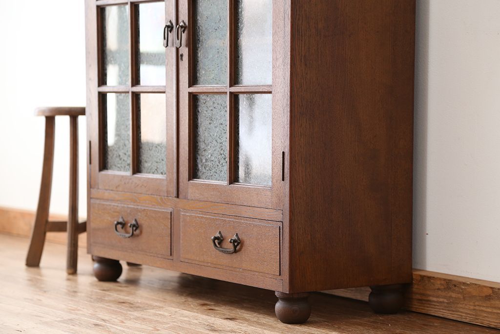 アンティーク家具 素敵なデザイン!古い洋館の結霜ガラス・ナラ材ブックケース(本箱、本棚)