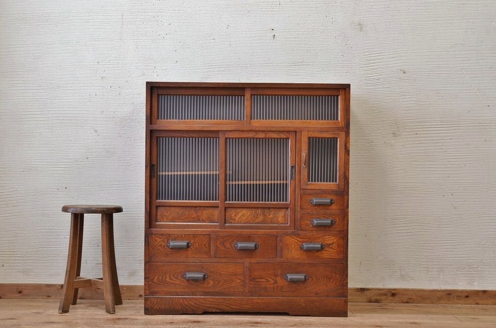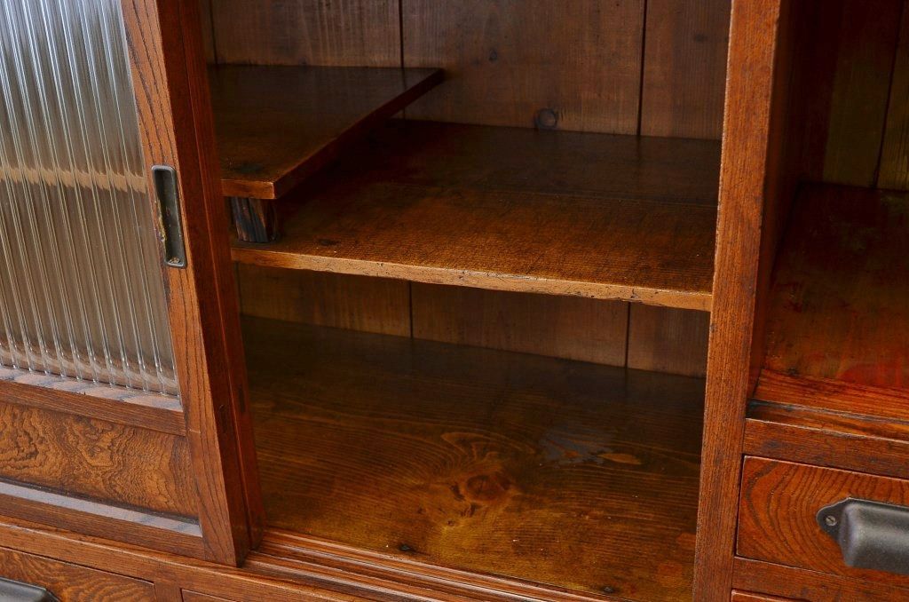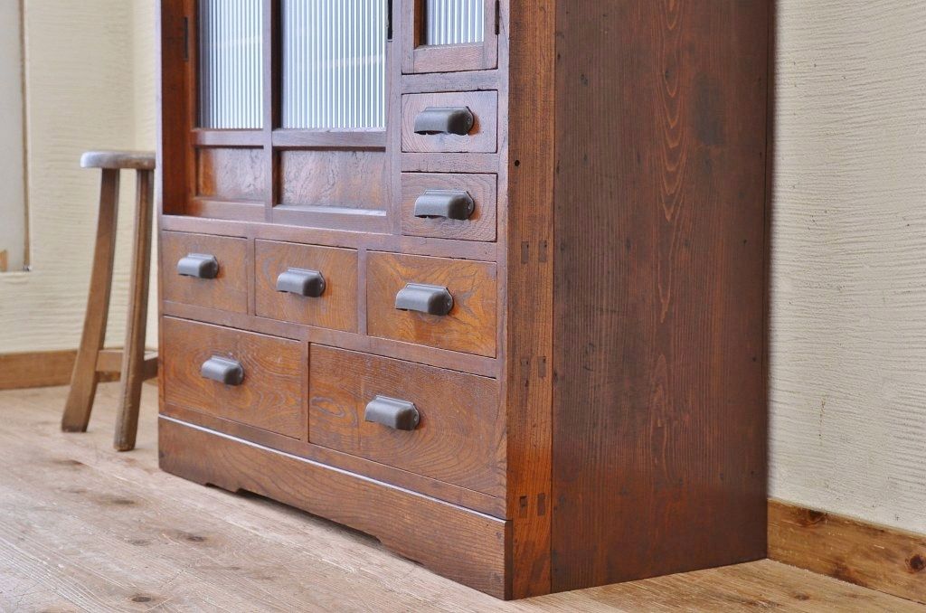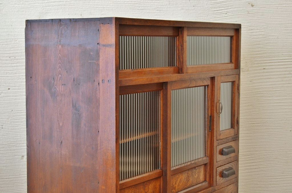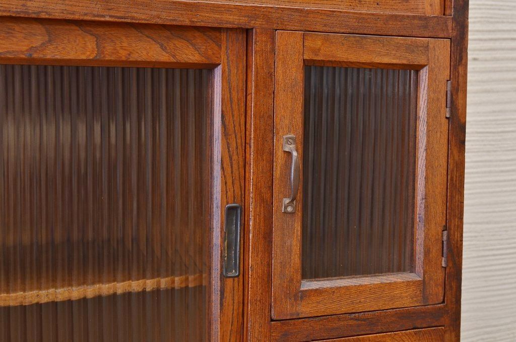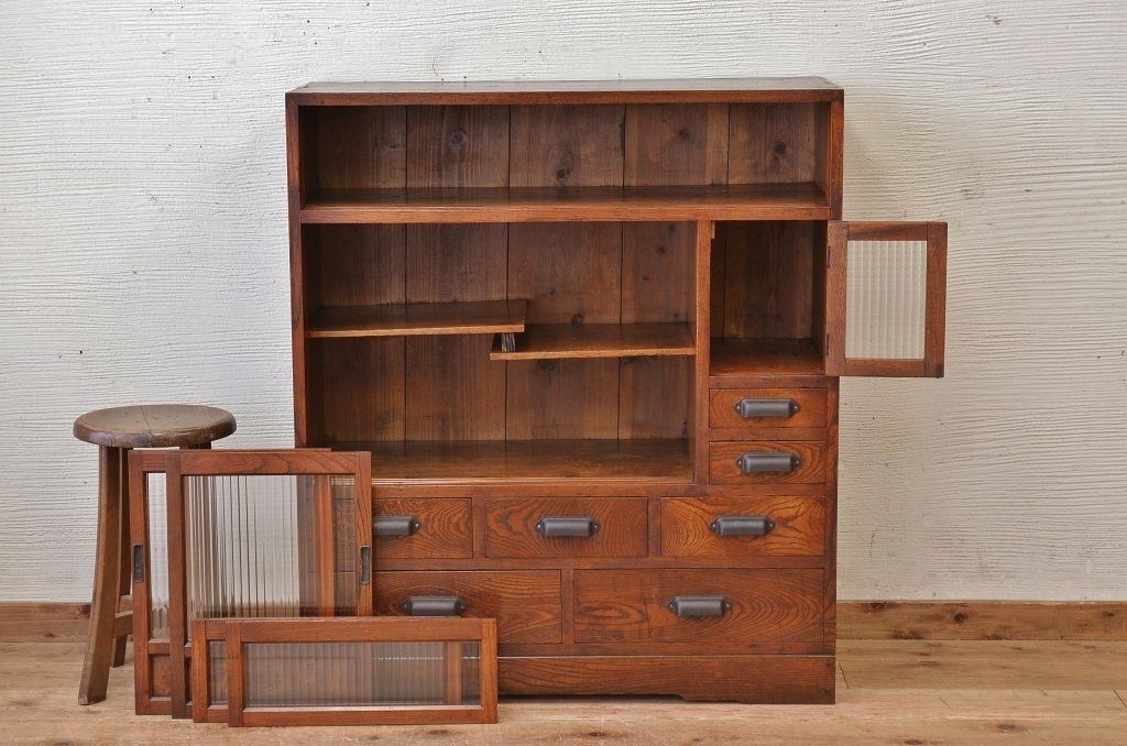 アンティーク家具 前面欅!モールガラスアンティーク収納棚(食器棚)