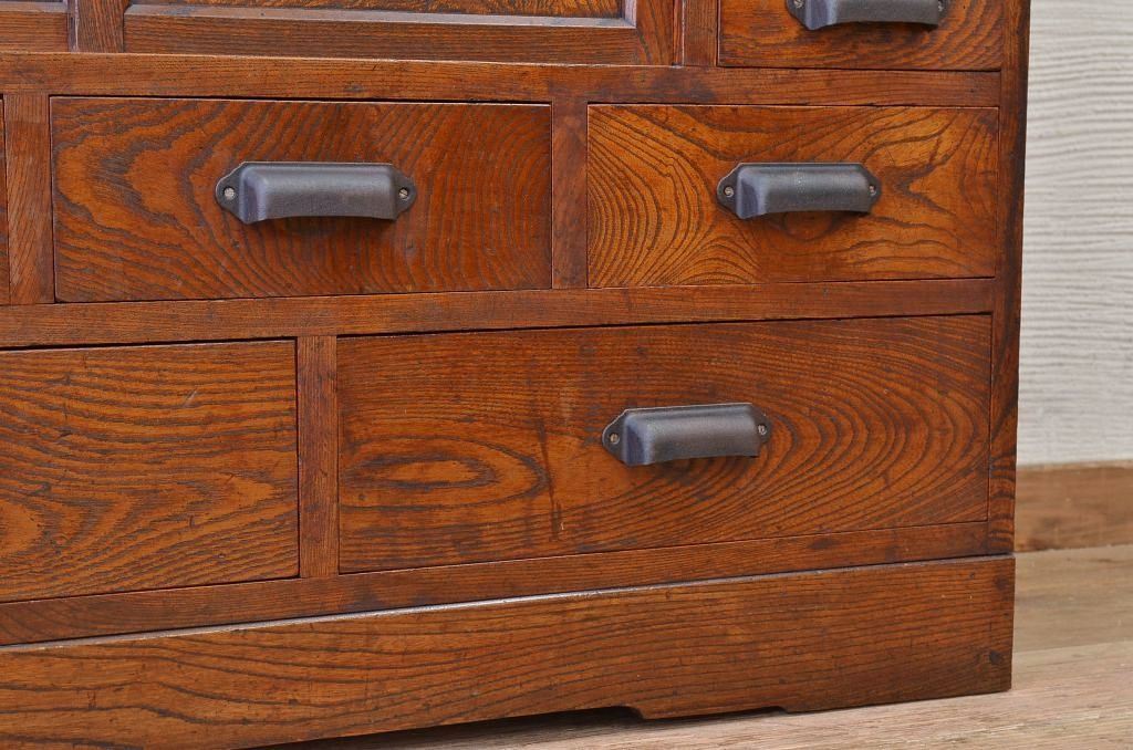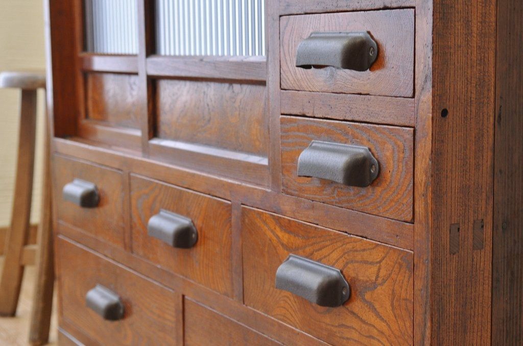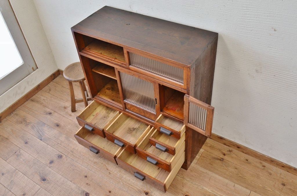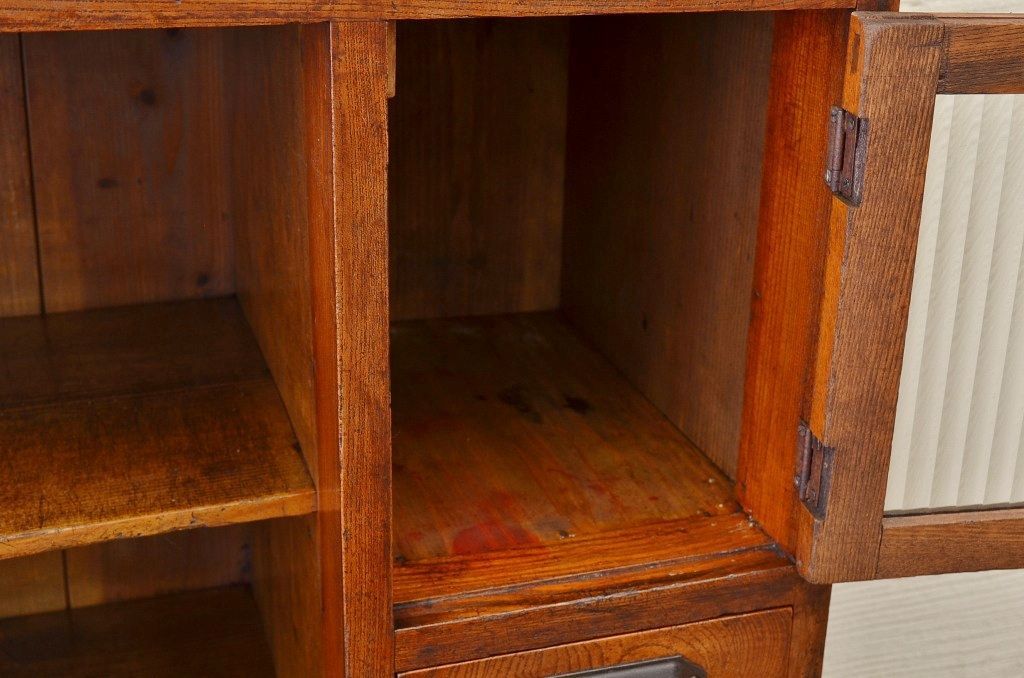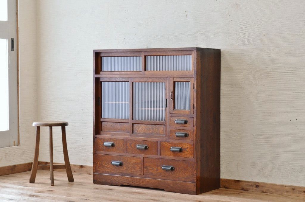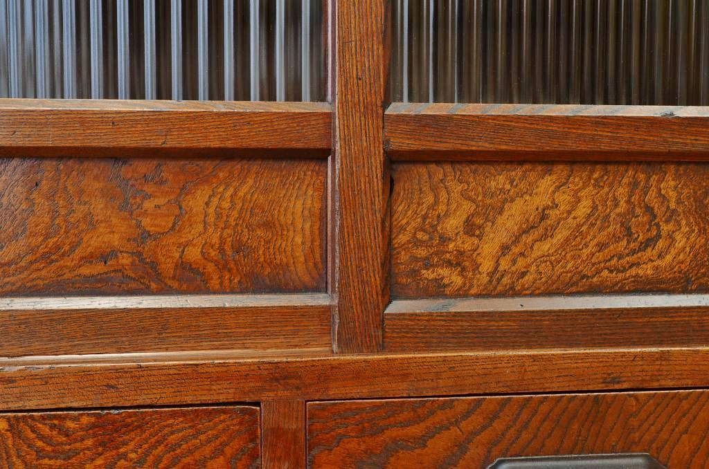 アンティーク家具 前面欅!モールガラスアンティーク収納棚(食器棚)