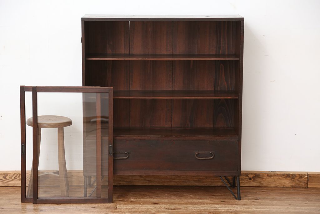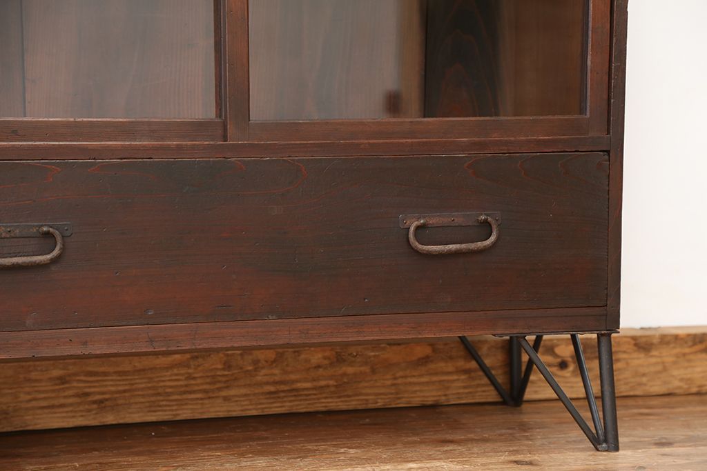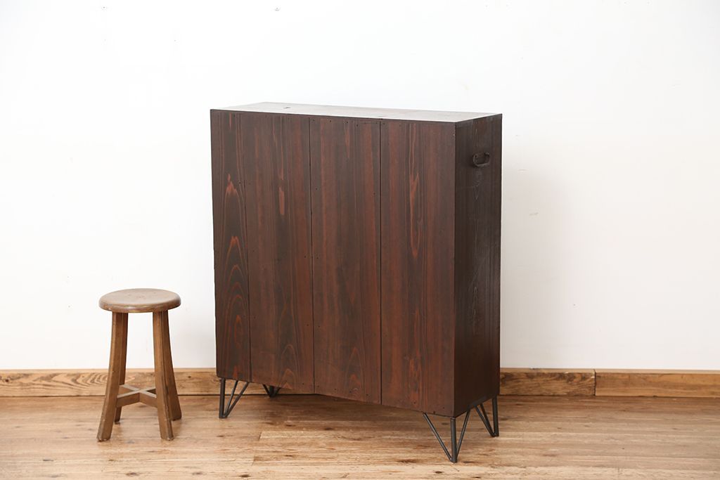 アンティーク家具 アンティーク 素敵なデザイン!古い木の鉄脚収納棚