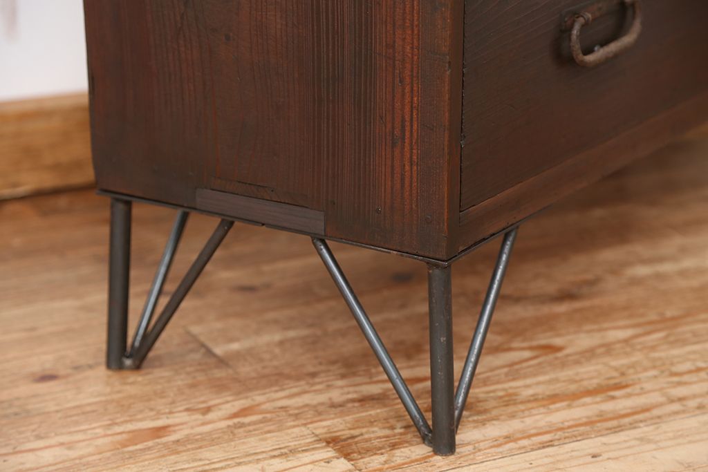 時代感のある家具をフローリングに似合う鉄脚でアレンジしました。