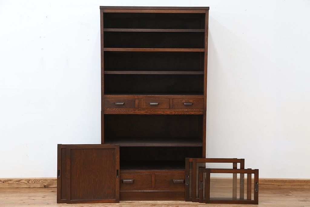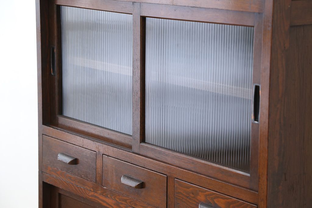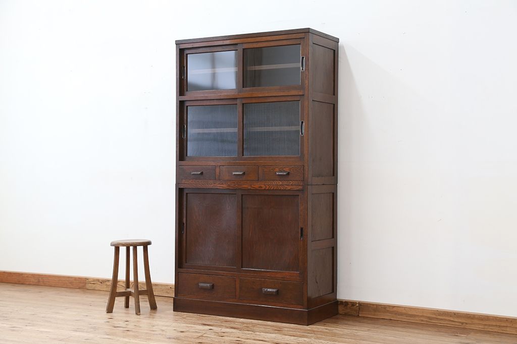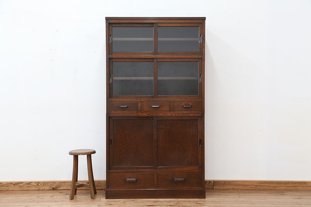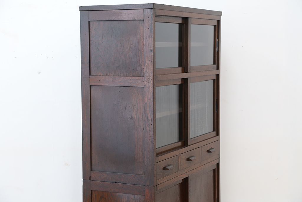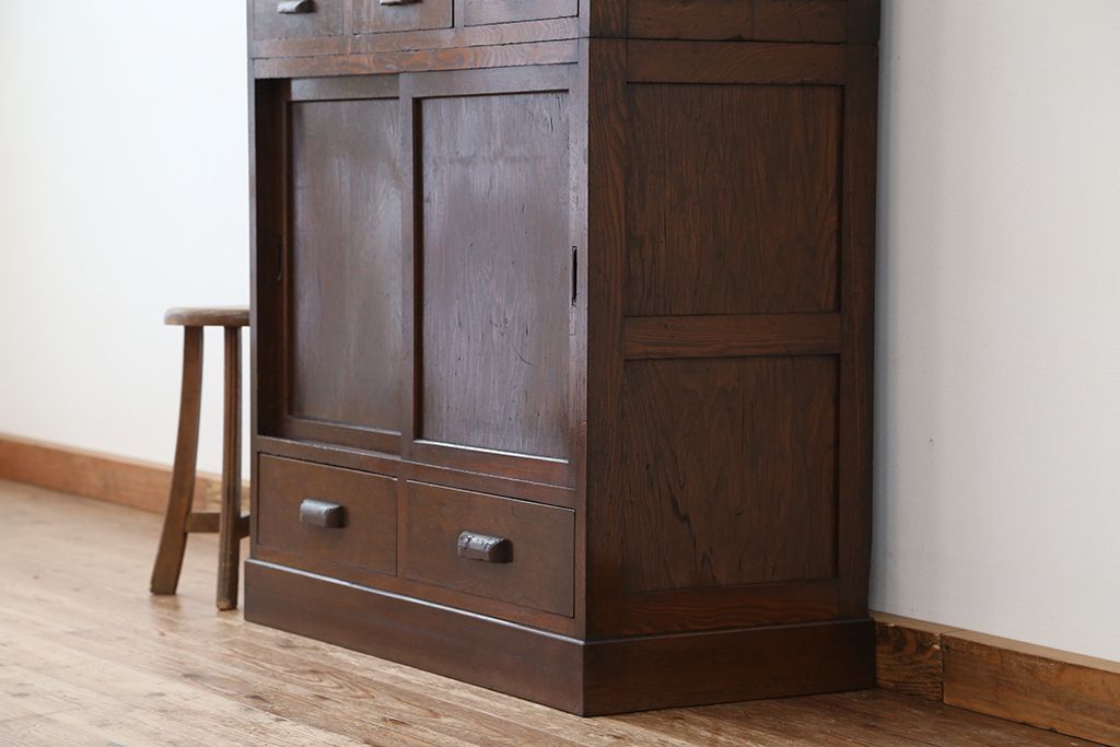 アンティーク家具 ☆アンティーク 古い木のシックな二段重ね収納棚(食器棚)
