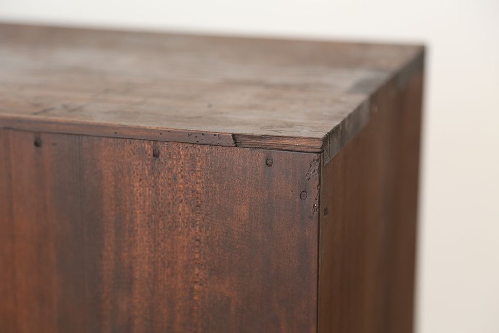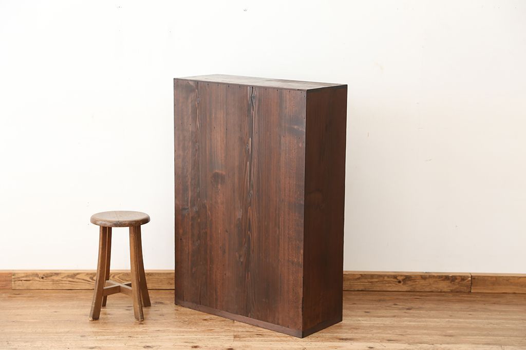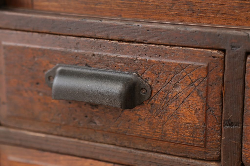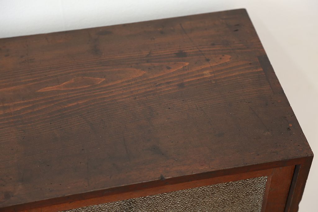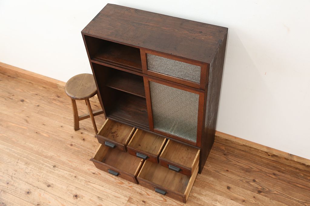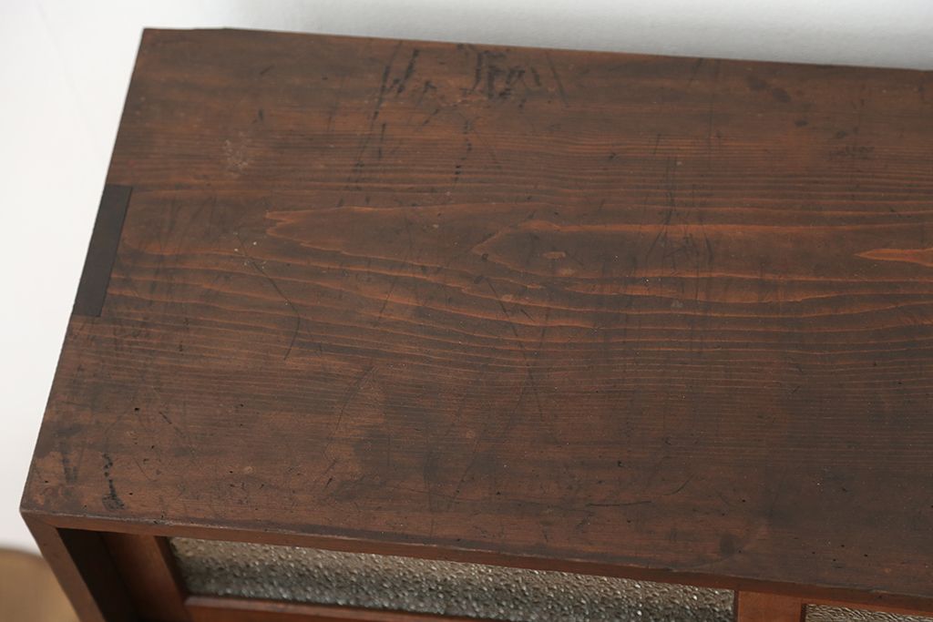 アンティーク家具 アンティーク 古い木の使い込まれたダイヤガラス収納棚(飾り棚・食器棚)