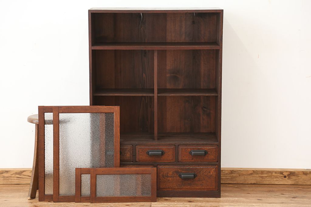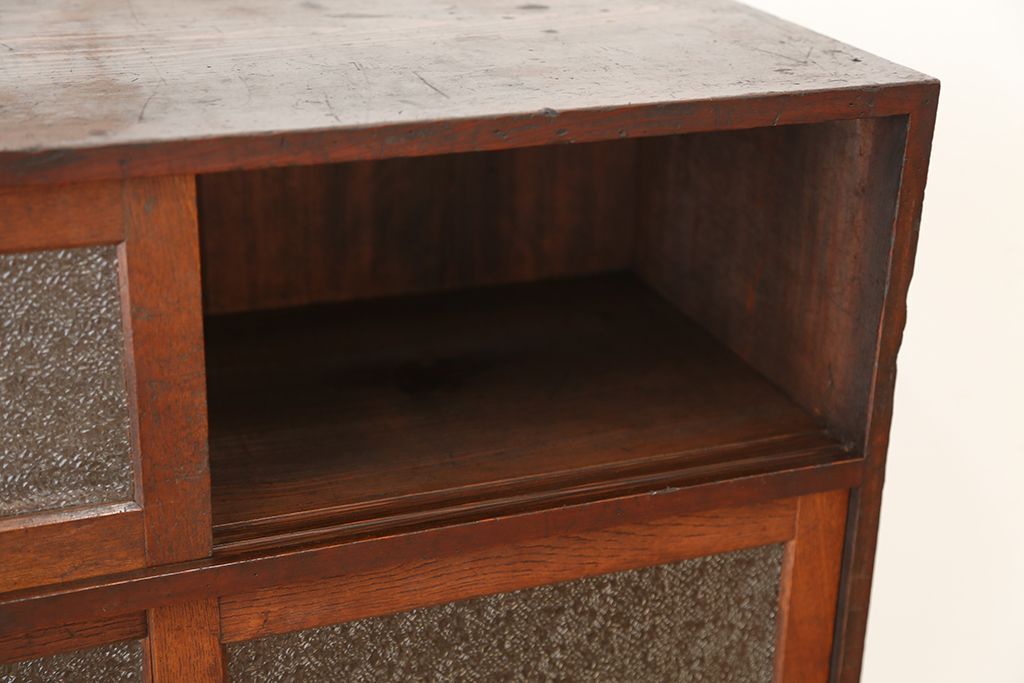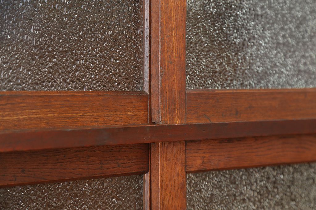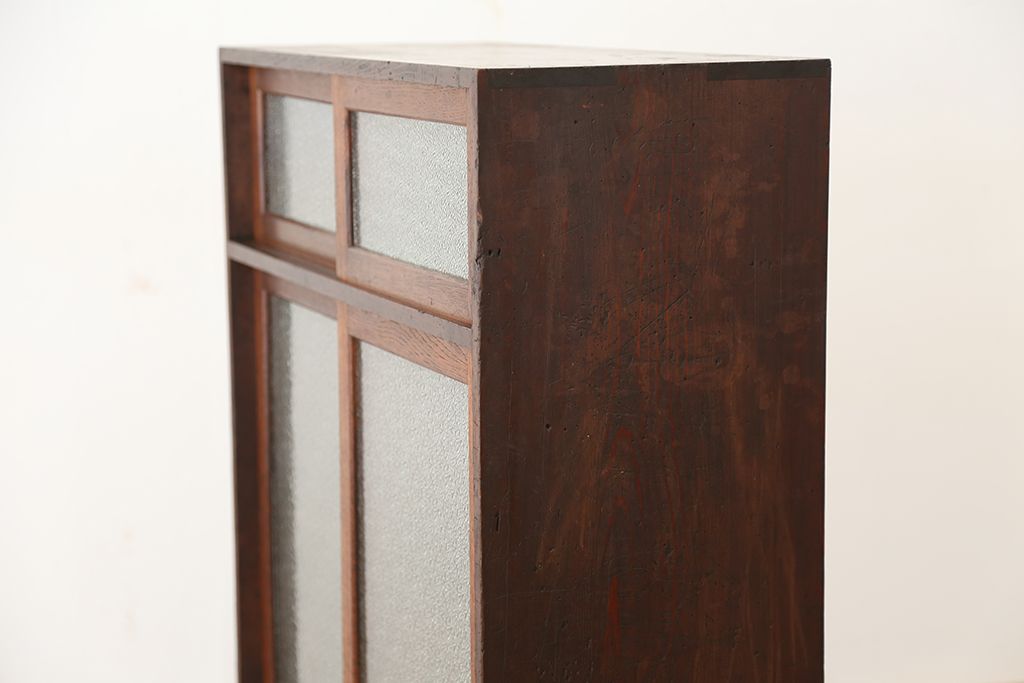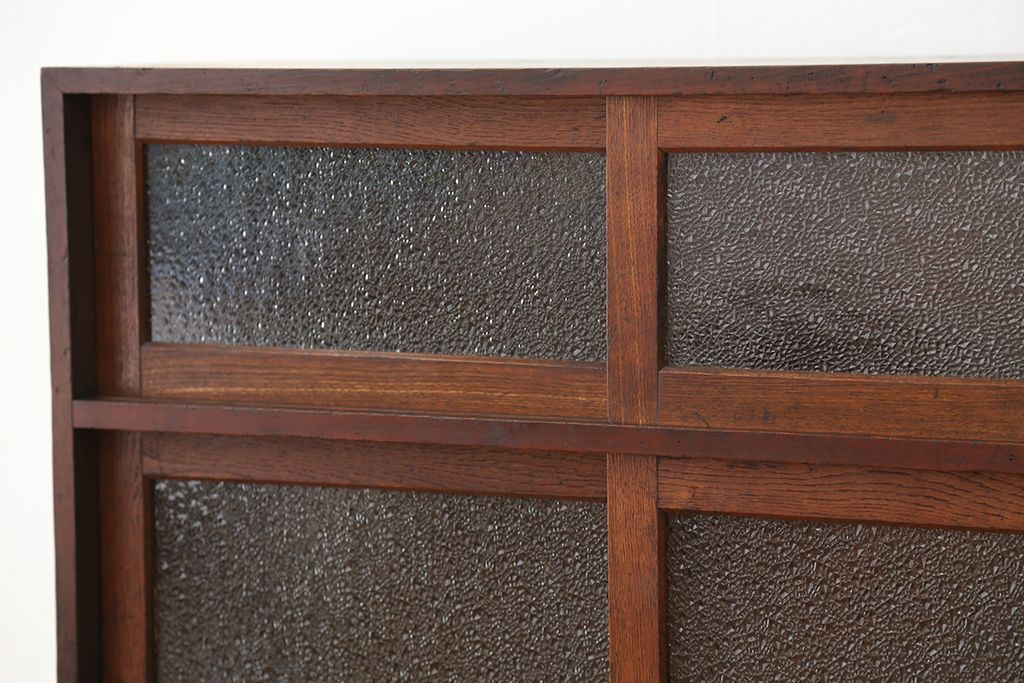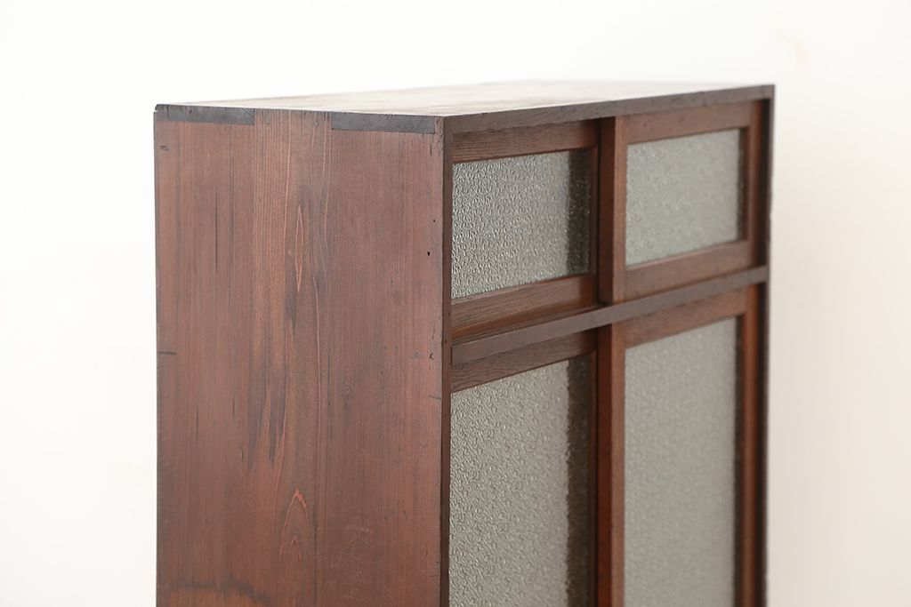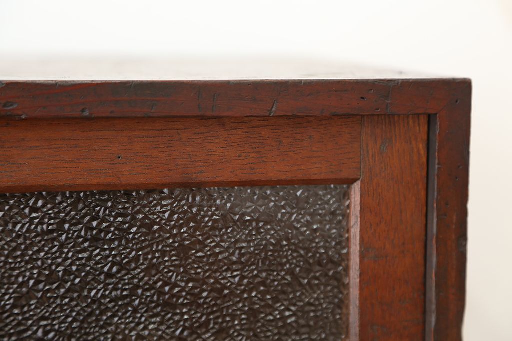 アンティーク 古い木の使い込まれたダイヤガラス収納棚(飾り棚・食器棚)です。