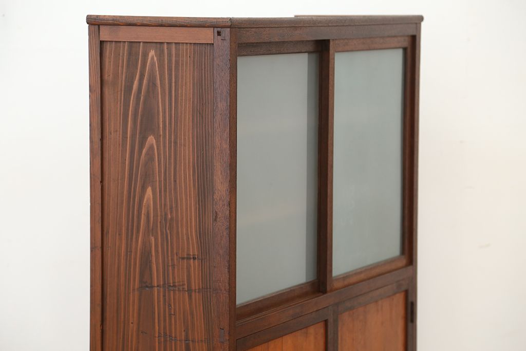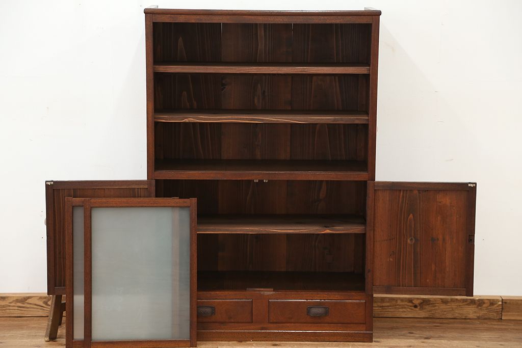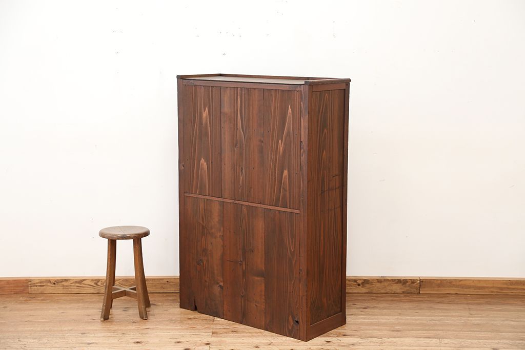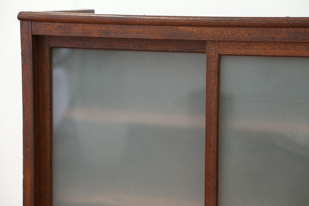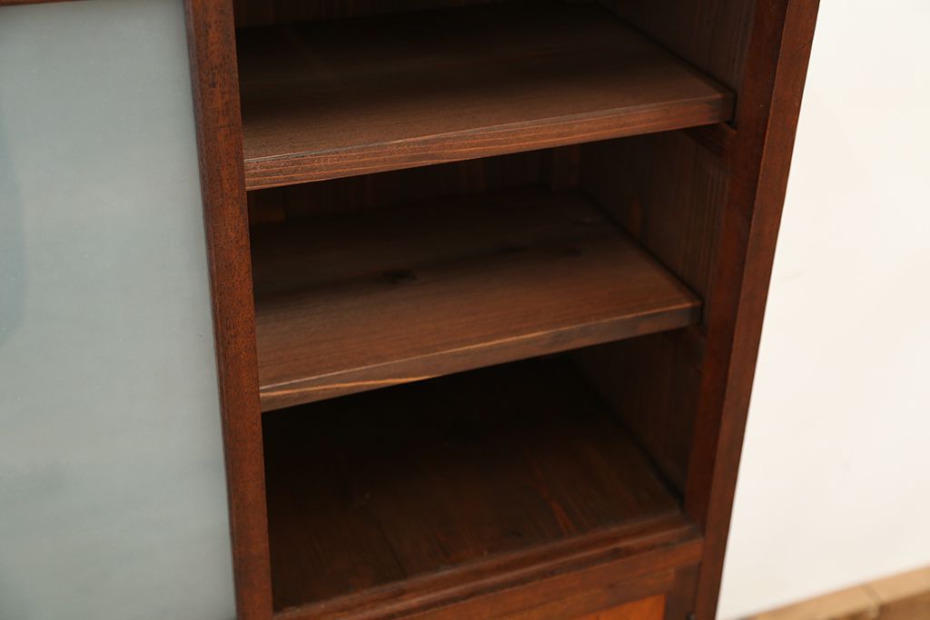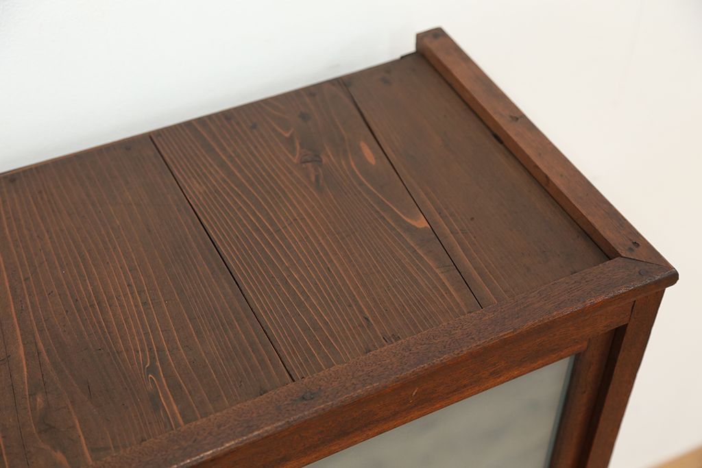 アンティーク家具 アンティーク 可愛いデザイン!古い木のスリガラス入り本箱