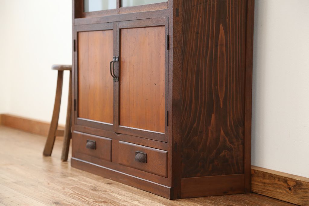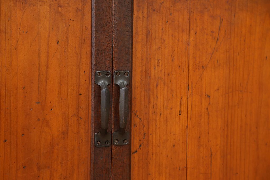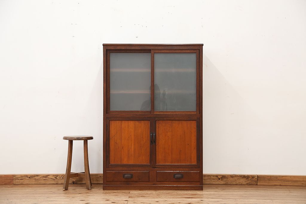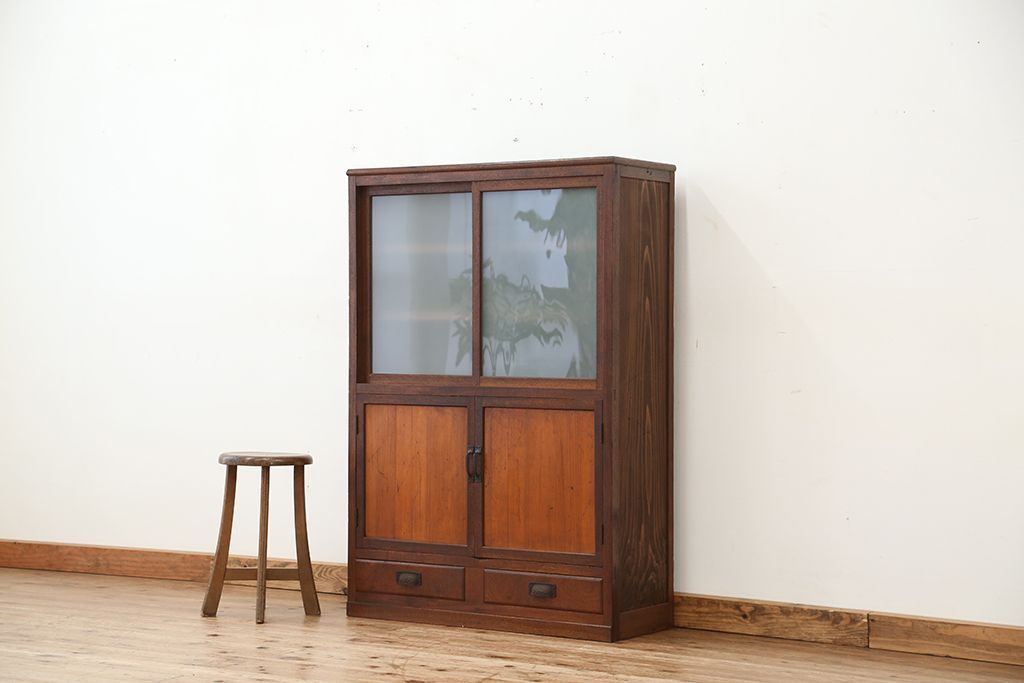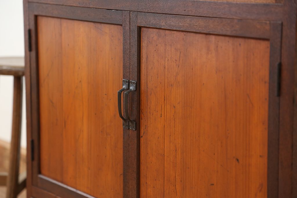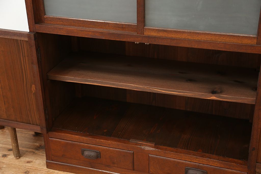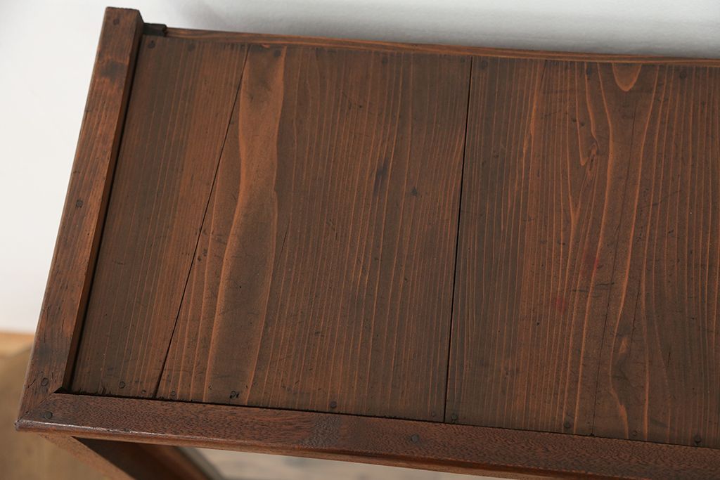 アンティーク家具 アンティーク 可愛いデザイン!古い木のスリガラス入り本箱