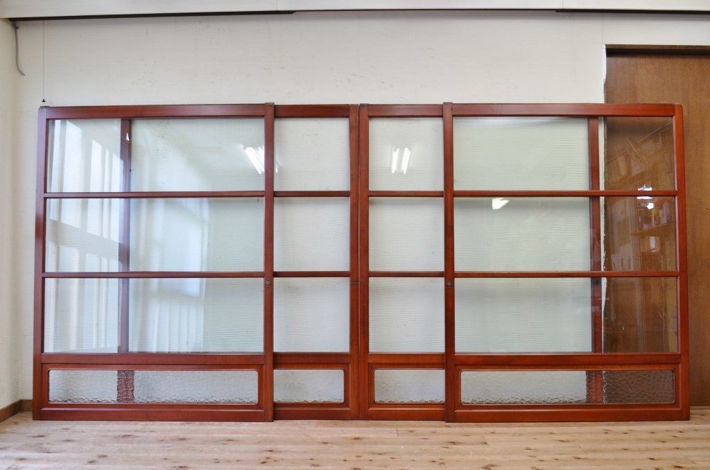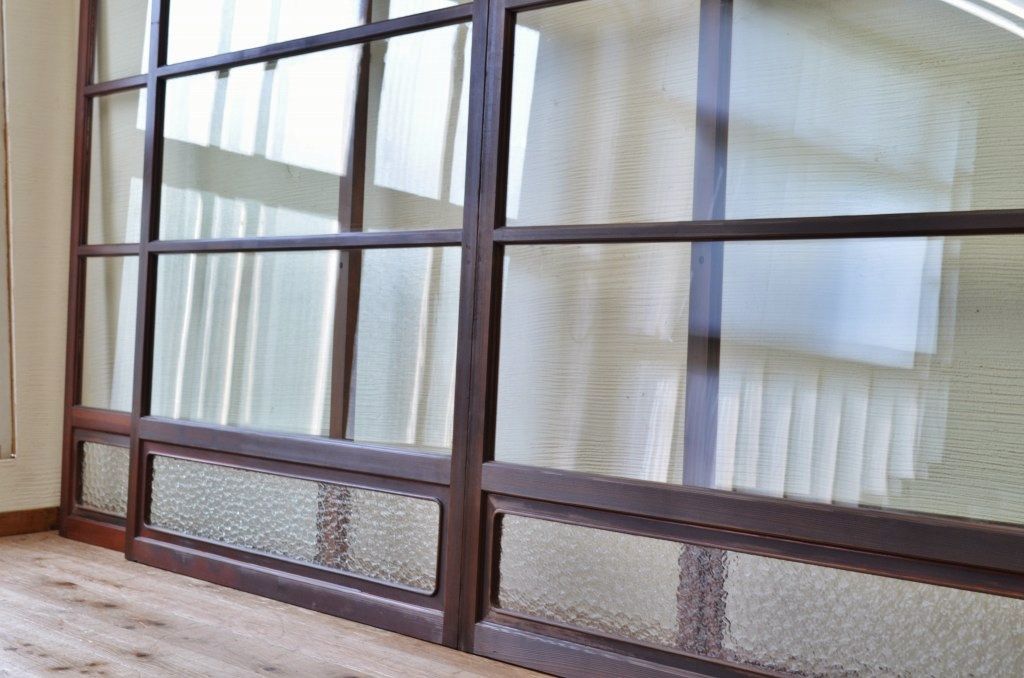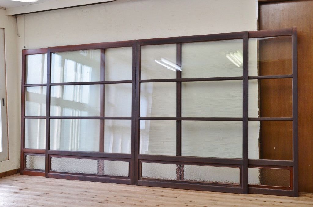 古民具 特注品漆塗りの上質なガラス戸1 4枚セット