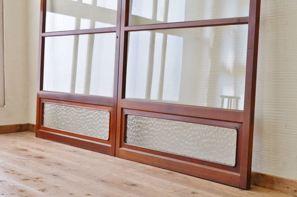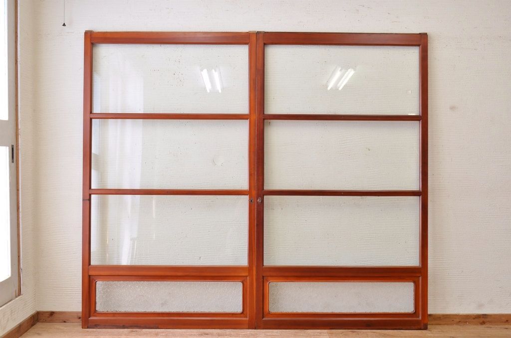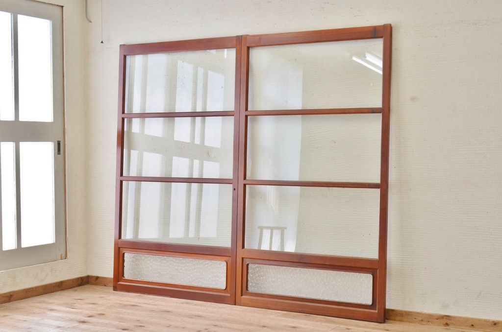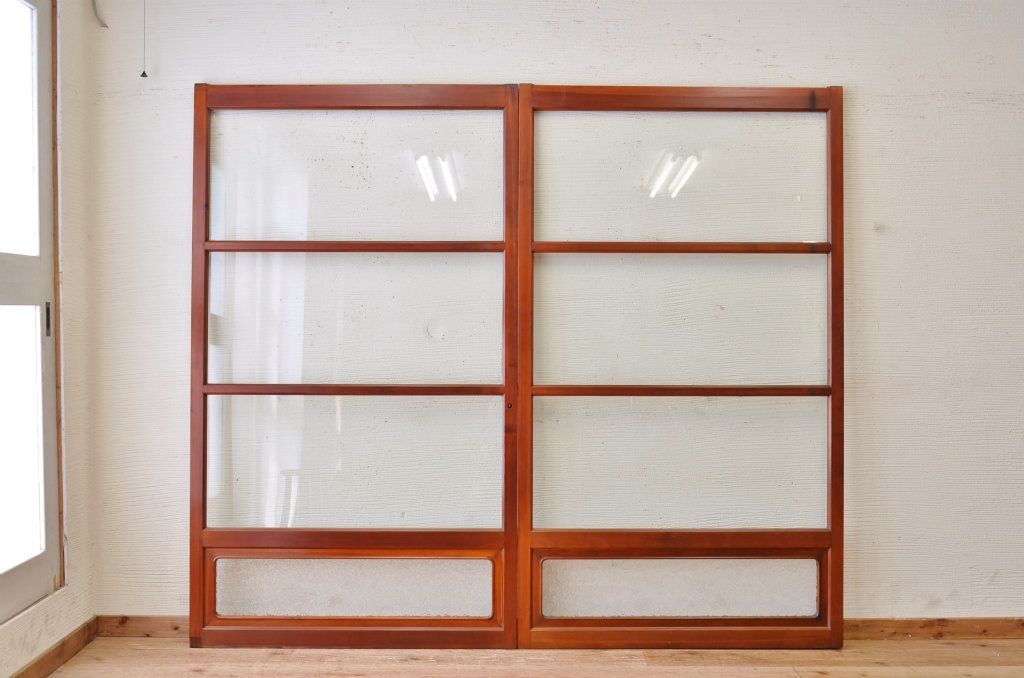 和製アンティーク 特注品!漆塗りの上質な高級ガラス戸2枚セット