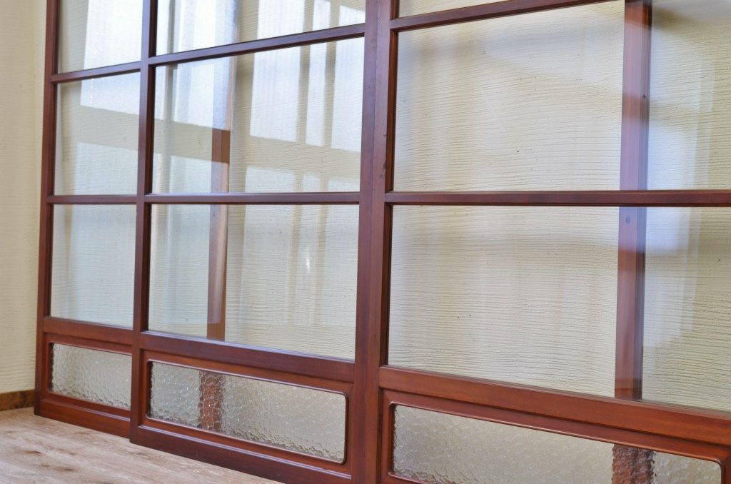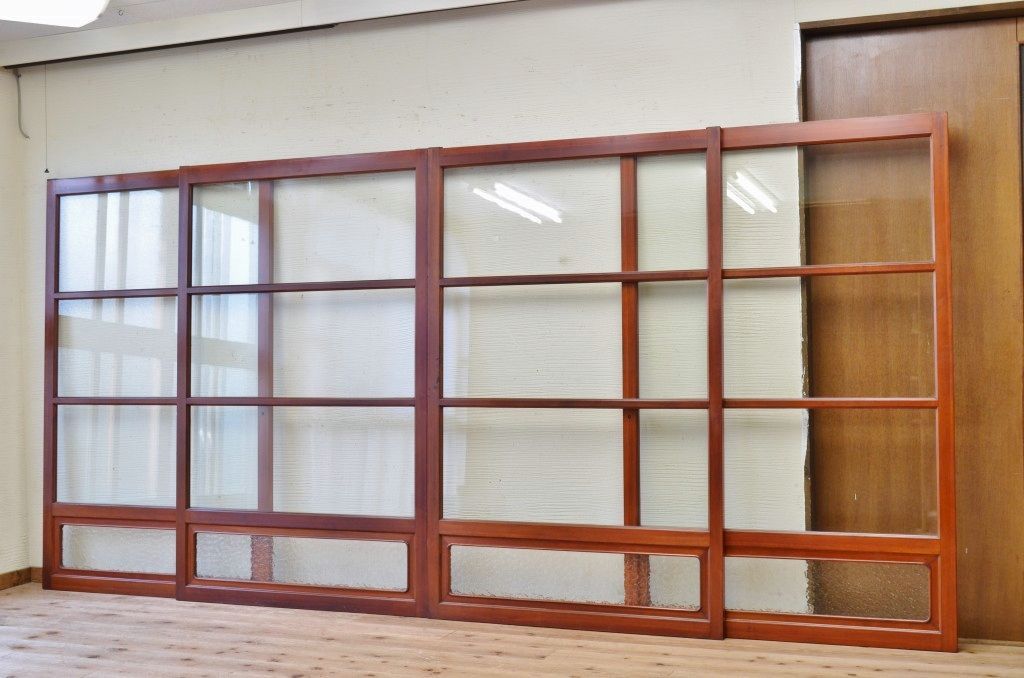 古民具 特注品漆塗りの上質なガラス戸4 4枚セット