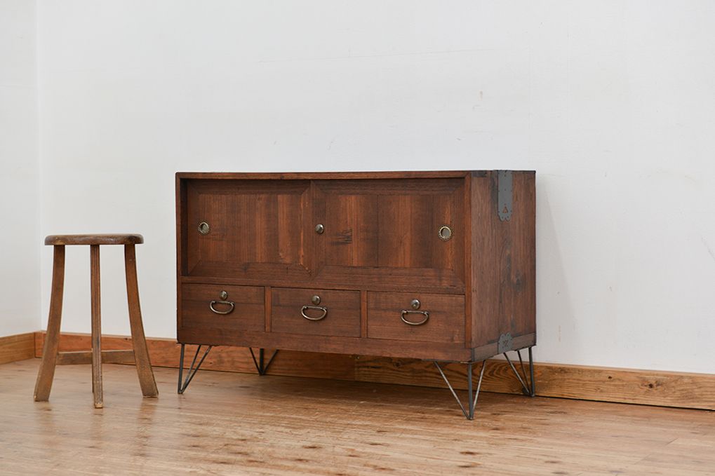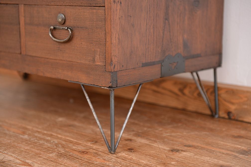 時代感のある家具をフローリングに似合う鉄脚でアレンジしました。
