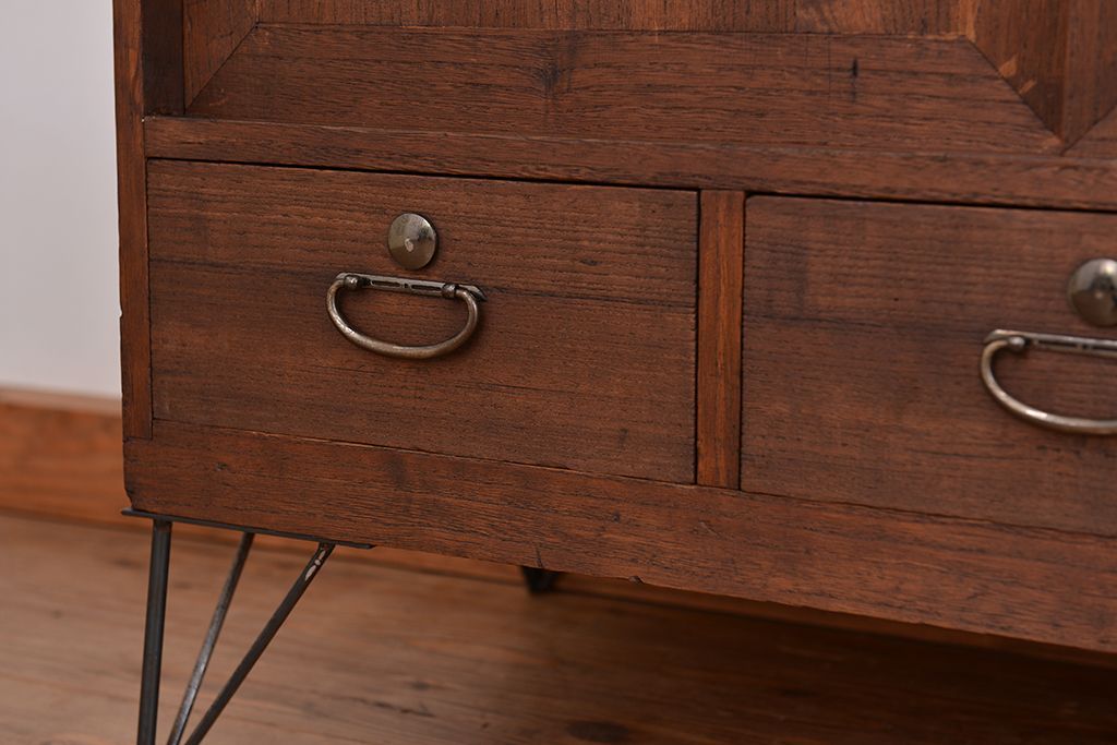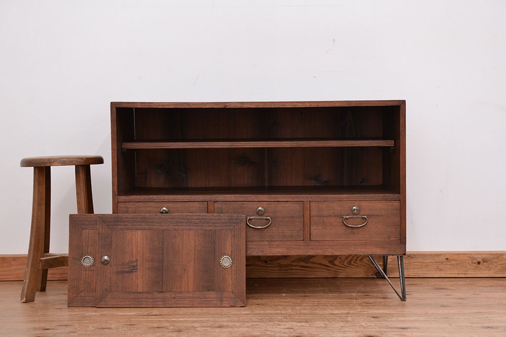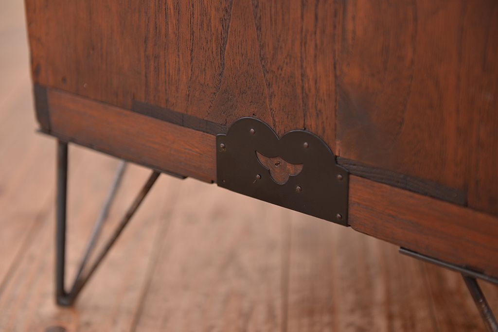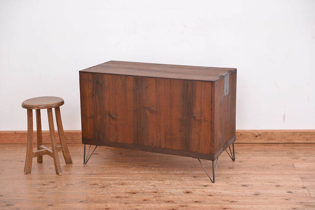 アンティーク家具 アンティーク 古い木のシンプルな鉄脚ローボード(収納棚)