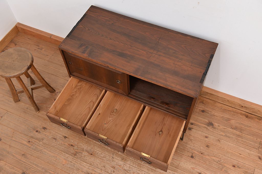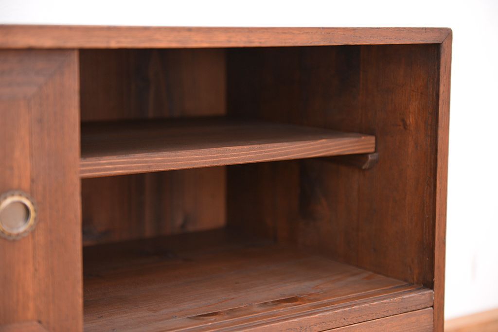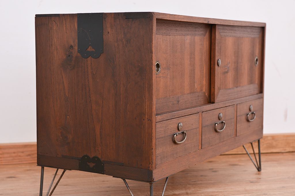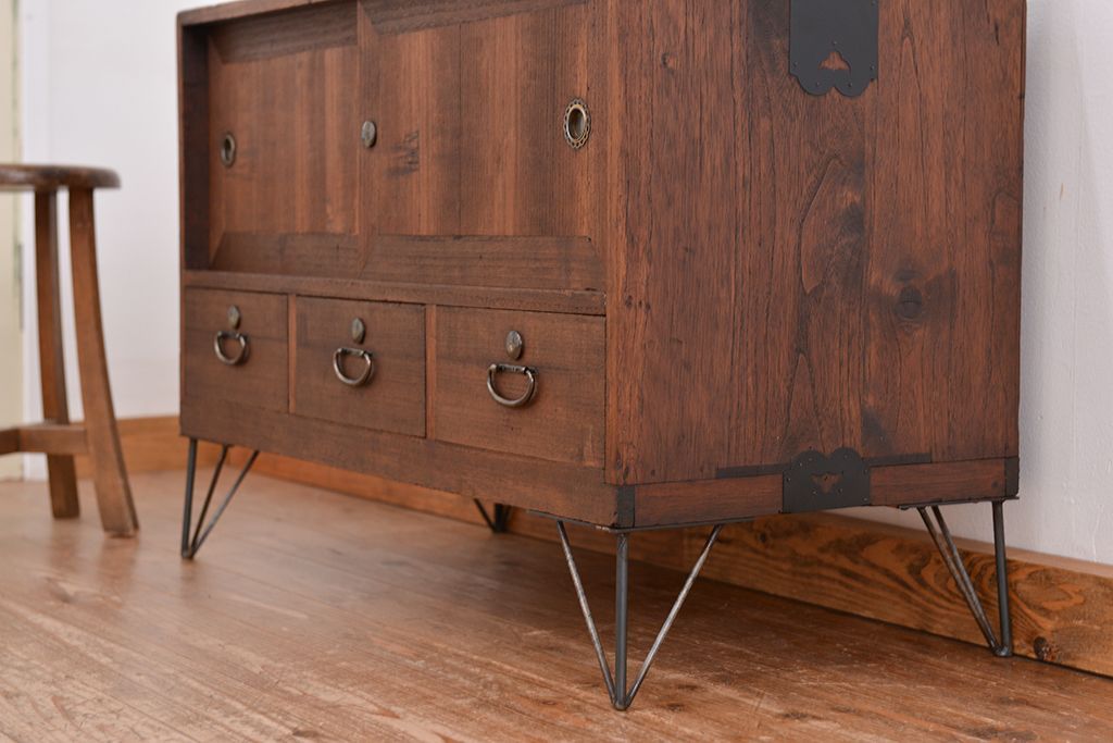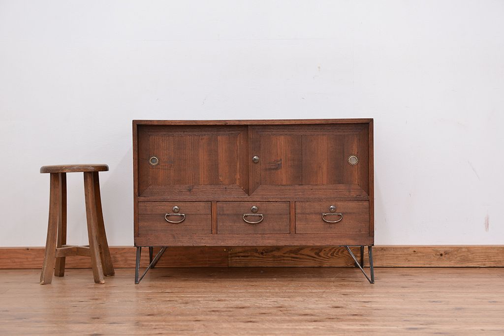 アンティーク家具 アンティーク 古い木のシンプルな鉄脚ローボード(収納棚)