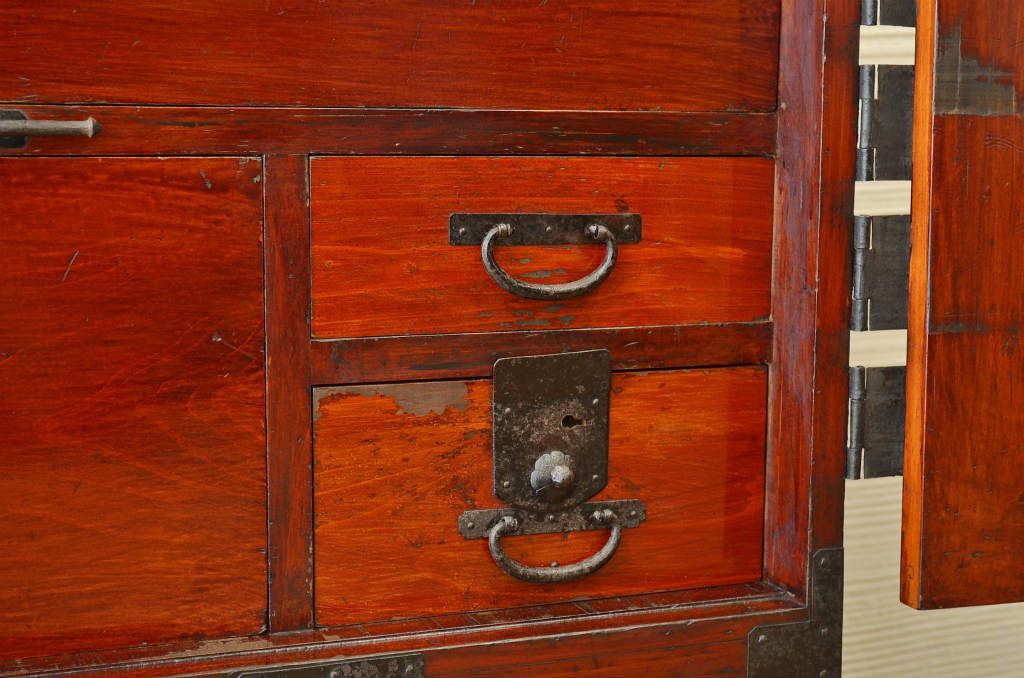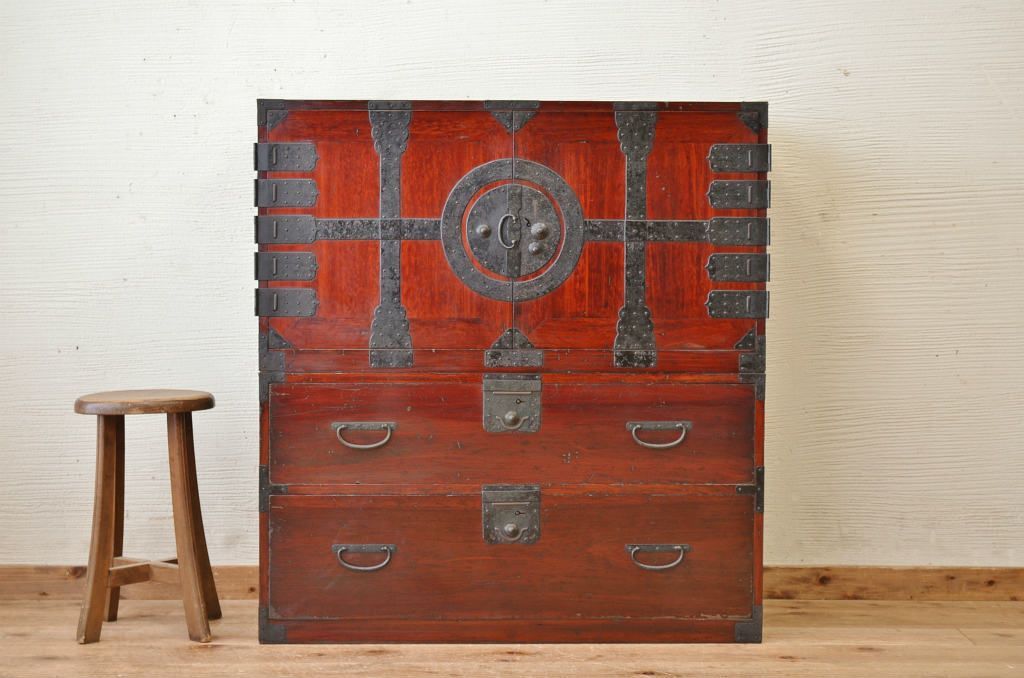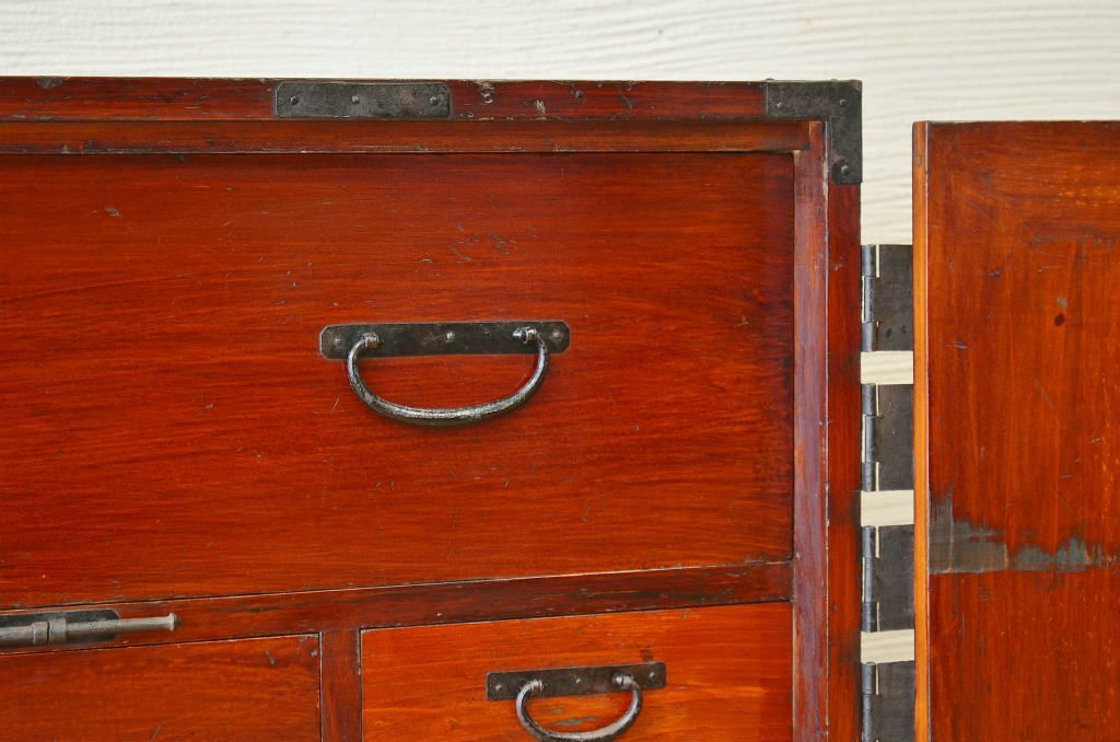 明治時代の漆の綺麗な観音開き時代箪笥です。