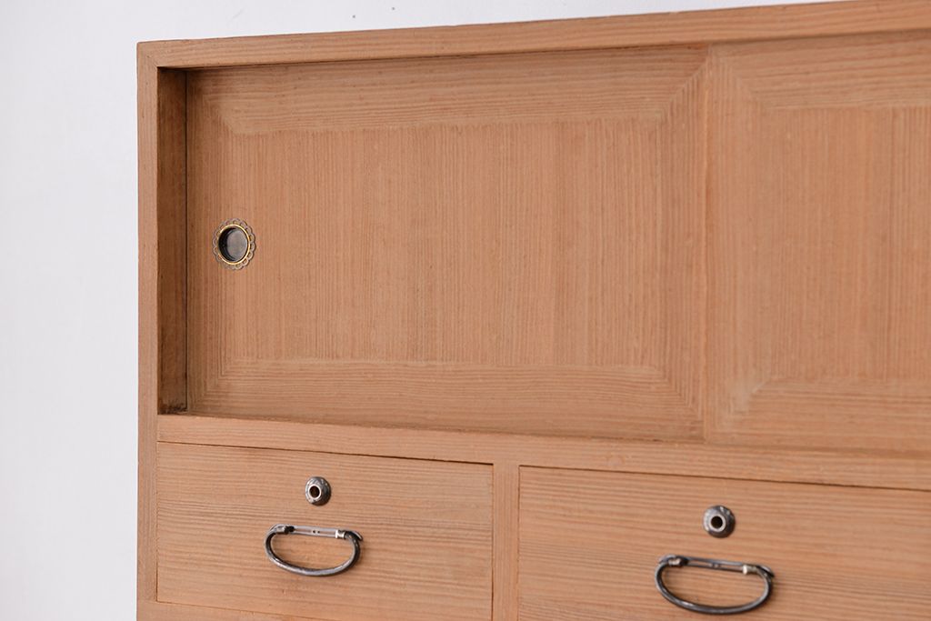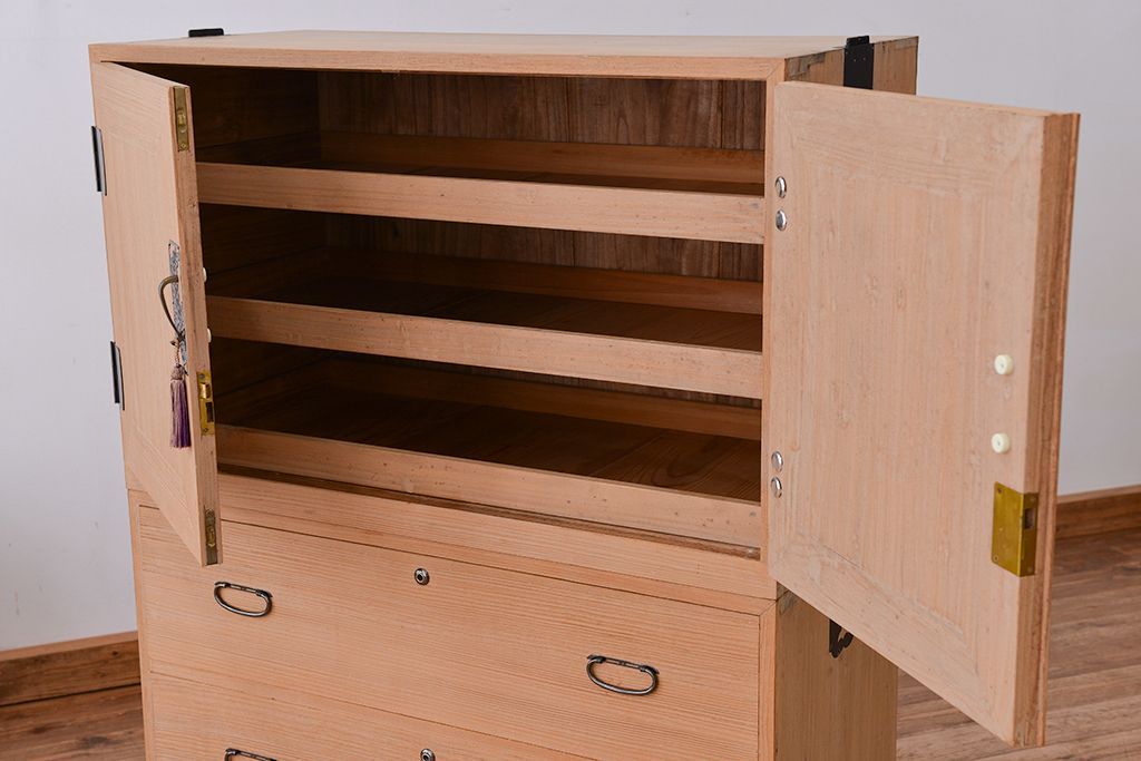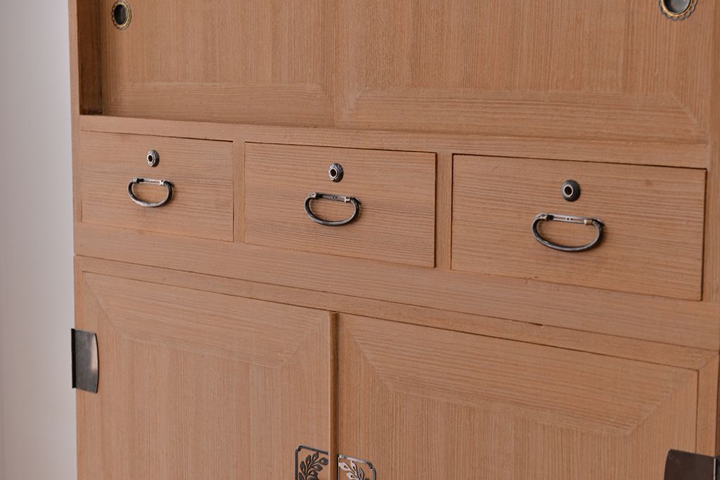 桐の風合いがそのまま感じられる高級感溢れる、三段重ね箪笥です。