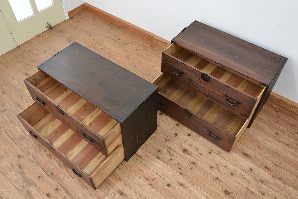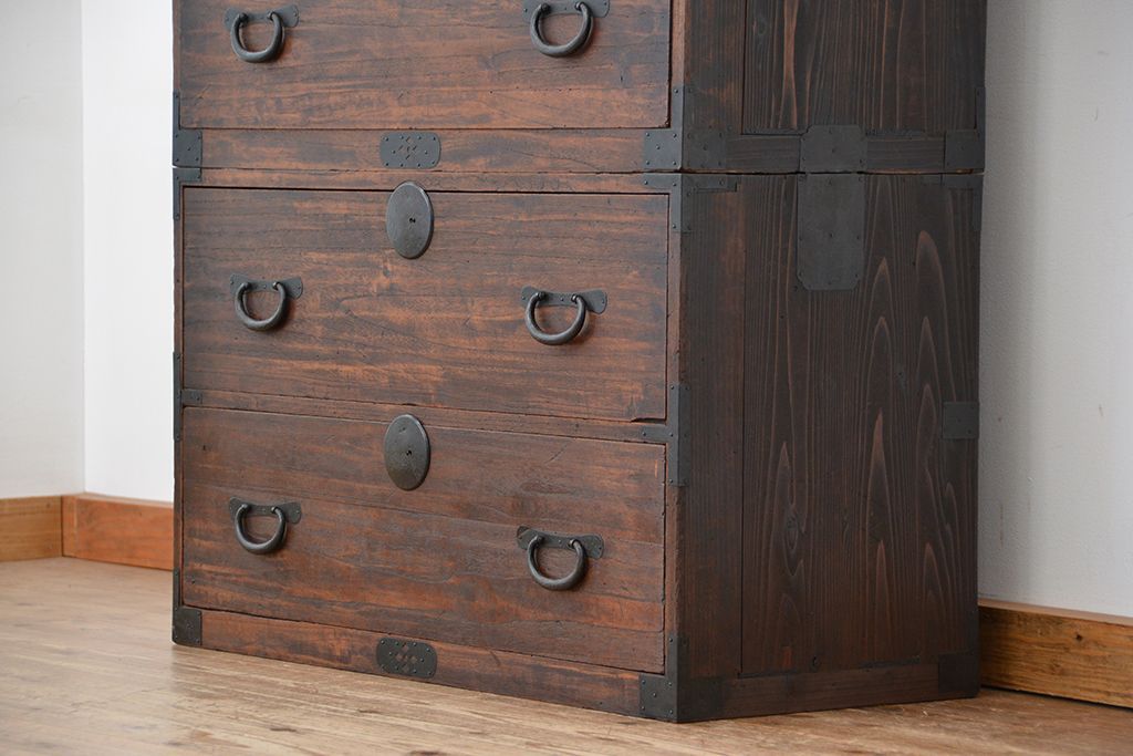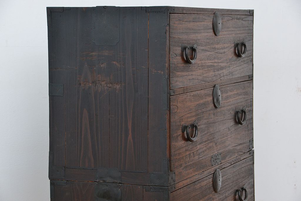 和箪笥 > アンティーク家具 ☆アンティーク シックで味のある重ね桐箪笥(チェスト、桐たんす)