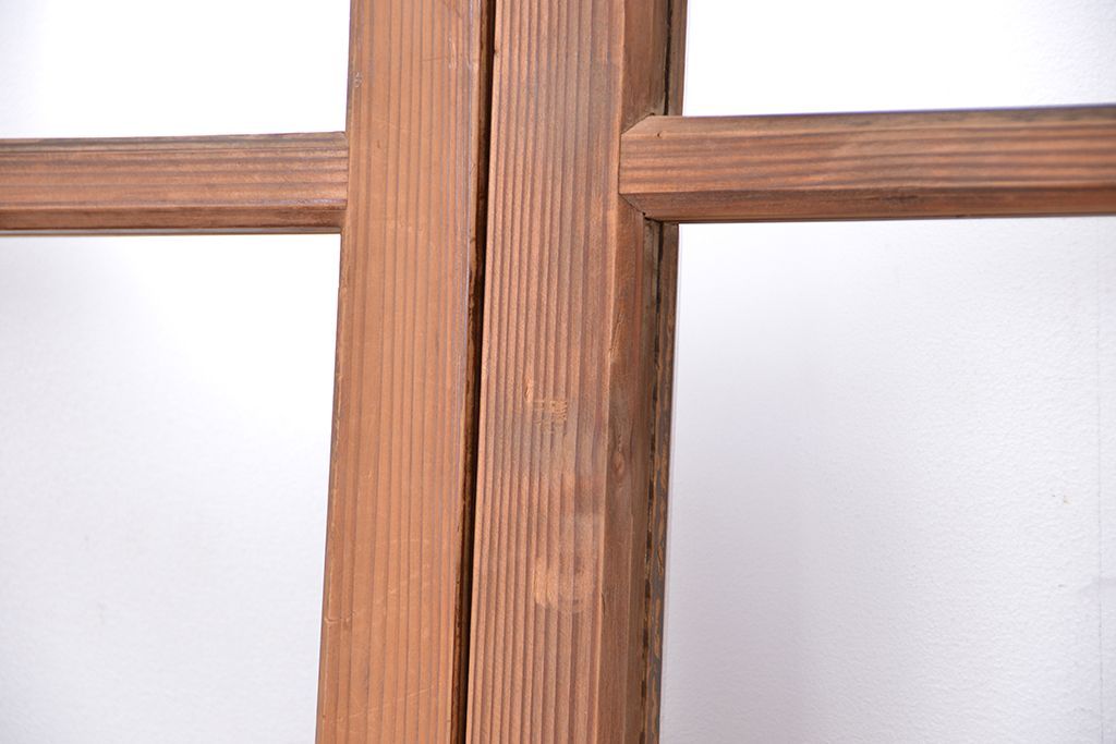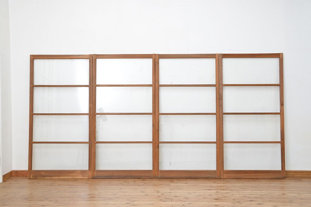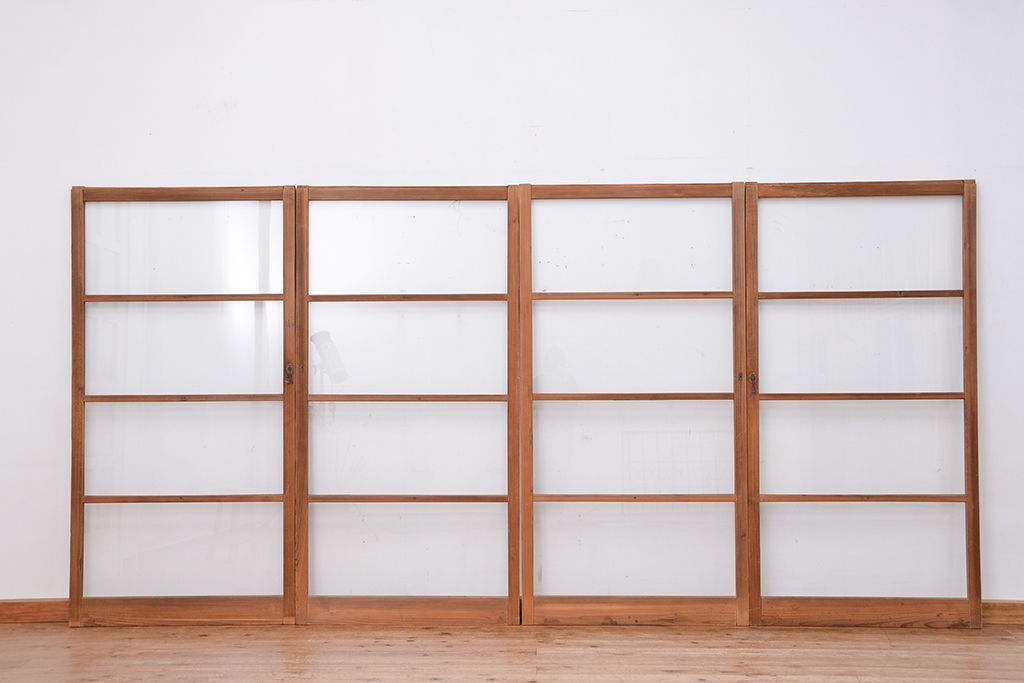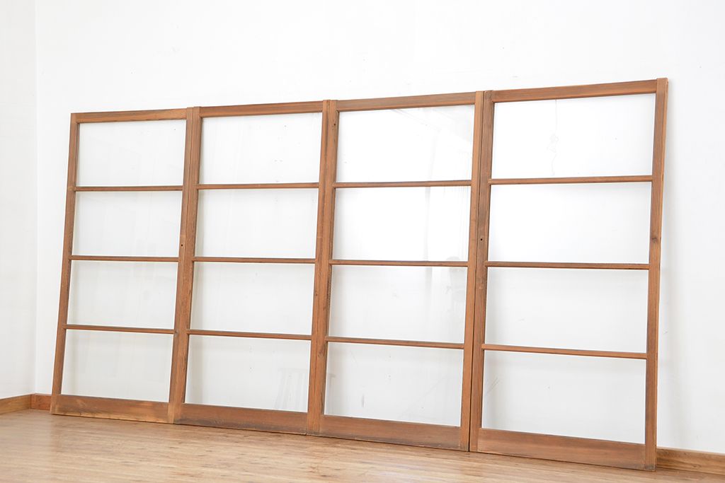 アンティーク 古い木味のレトロなシンプルガラス引き戸 4枚セット(ガラス戸、建具)